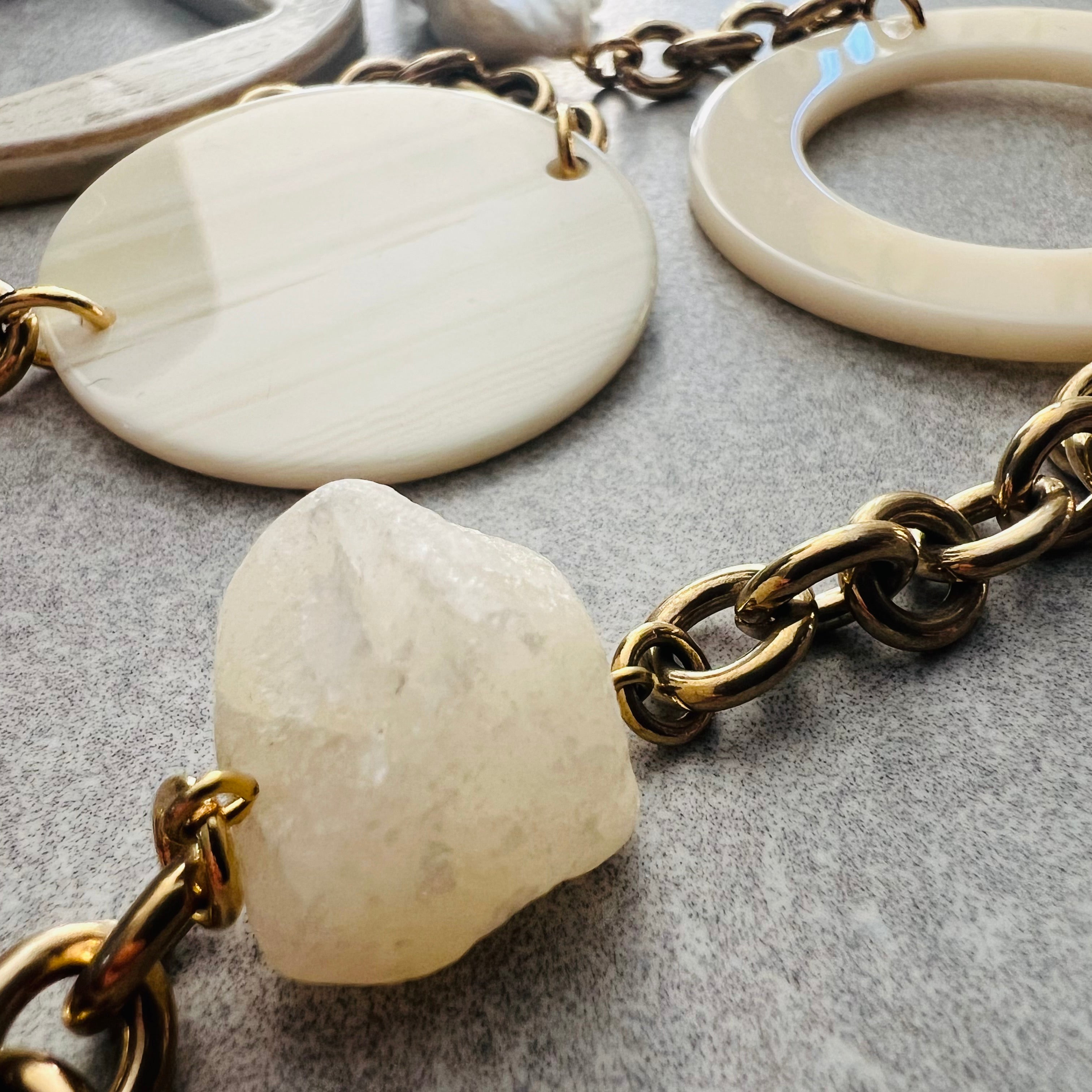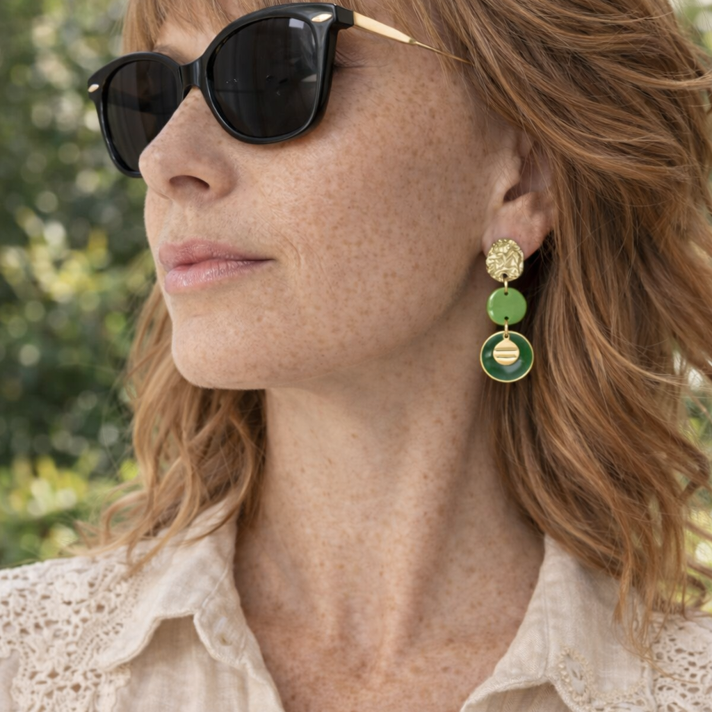 Nous vous proposons des boucles d'oreilles, des colliers, des bracelets ainsi que des broches. Des bijoux fantaisie légers, colorés, dorés ou argentés choisis avec soin pour sublimer vos tenues..