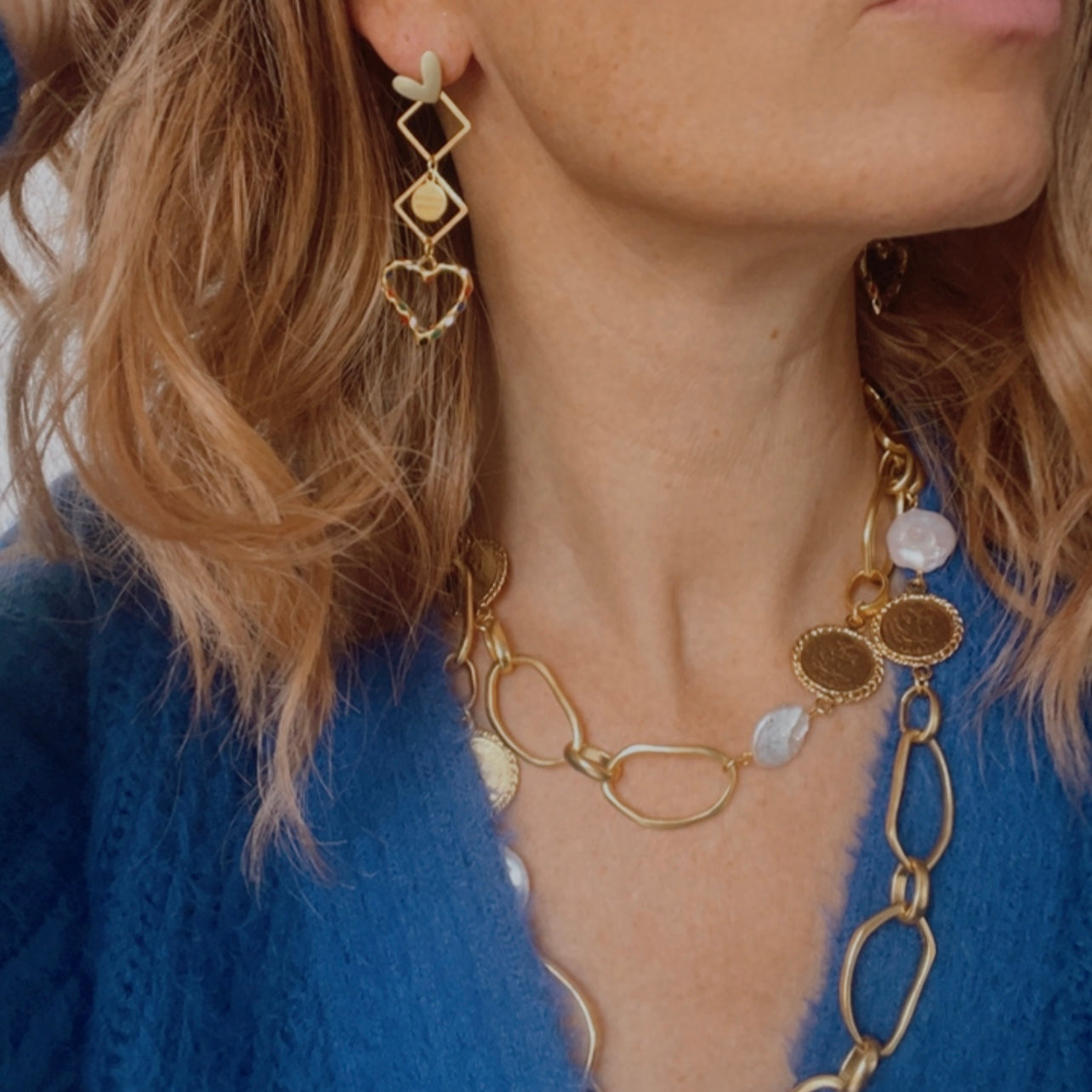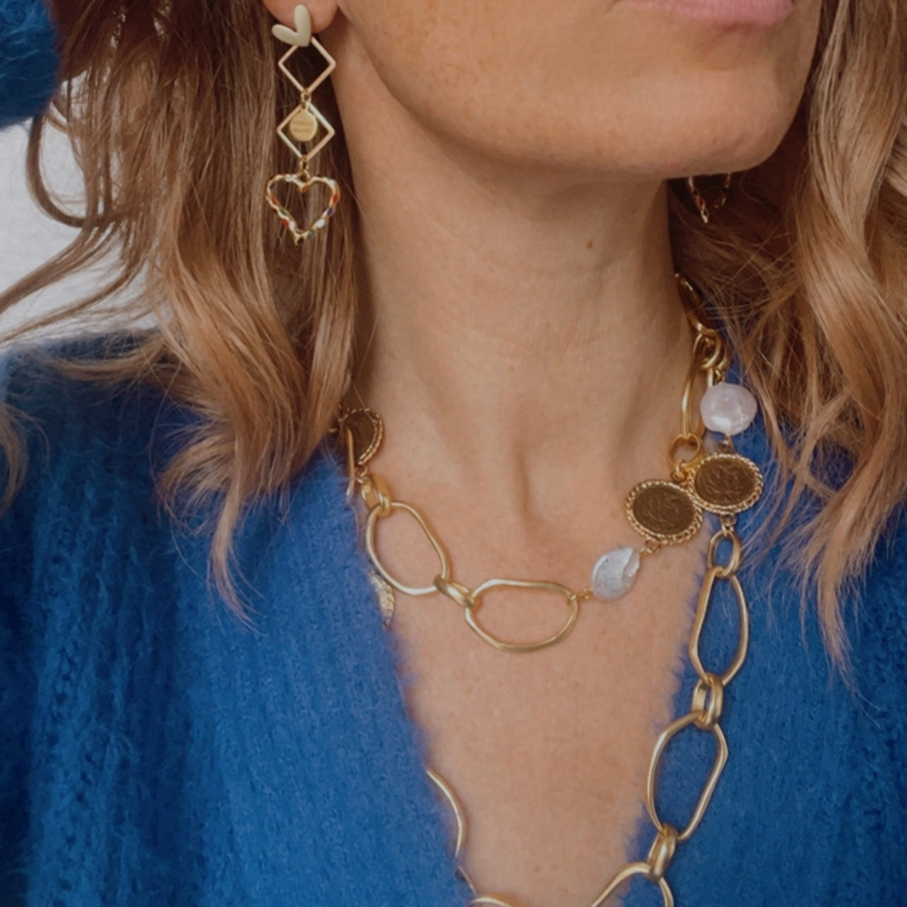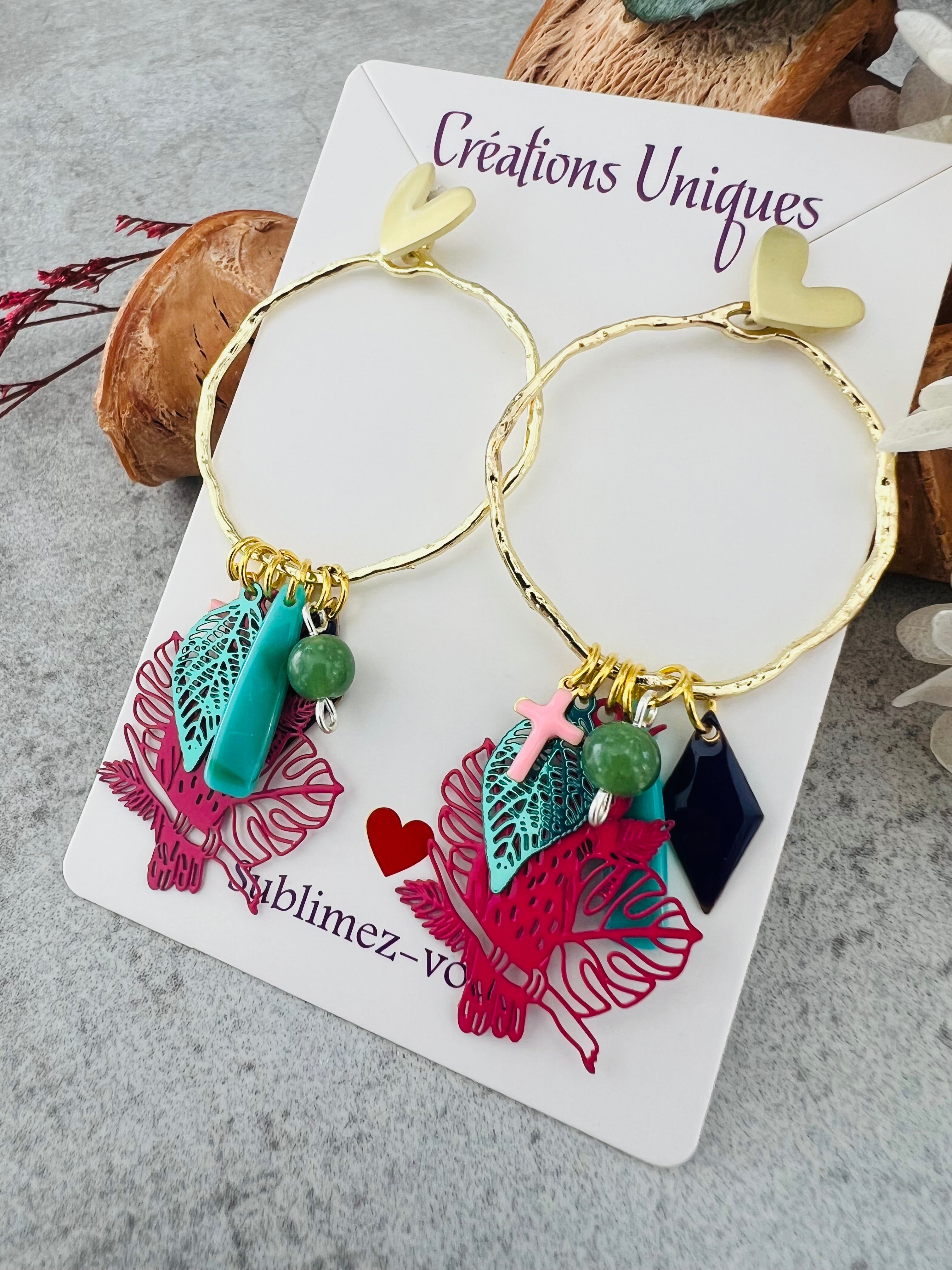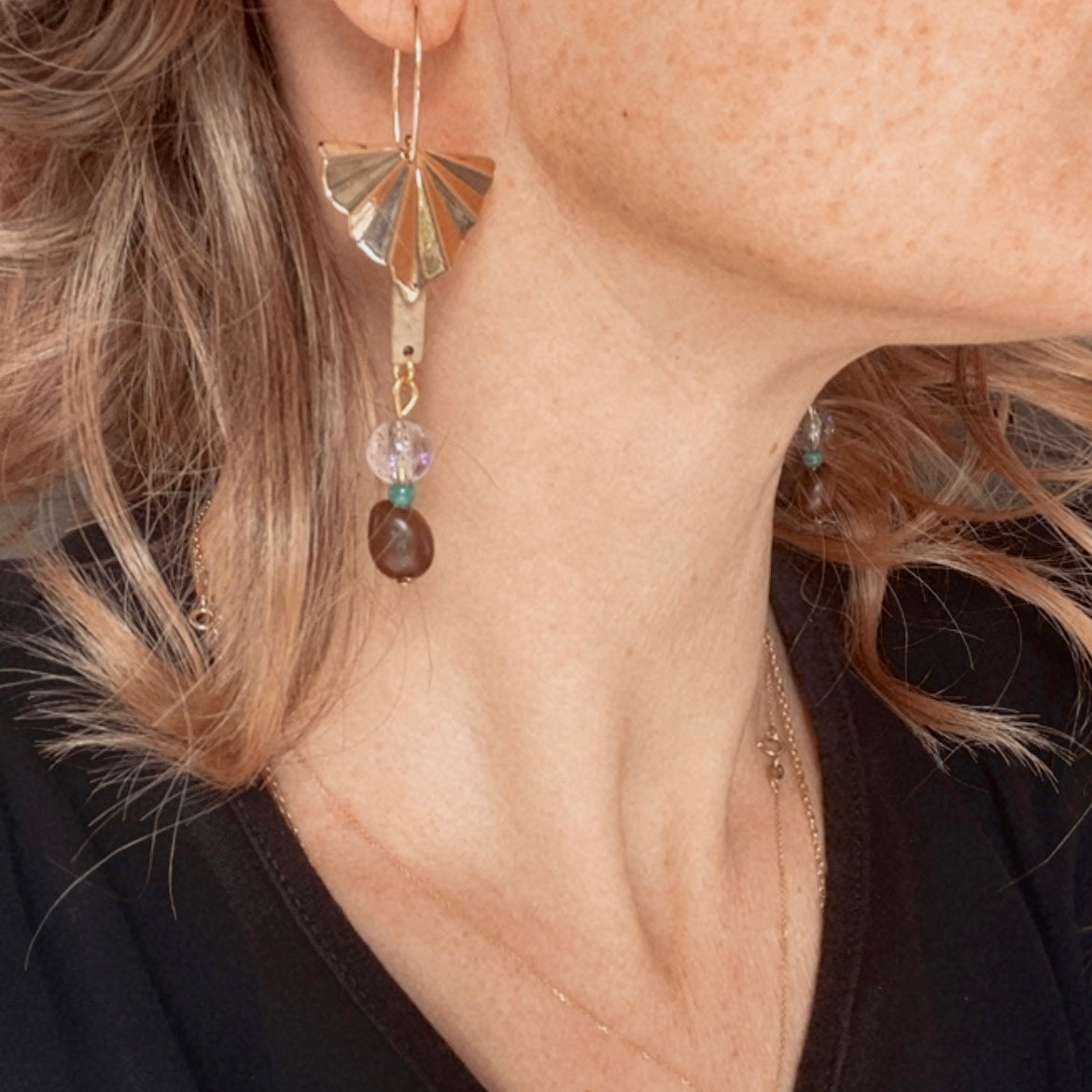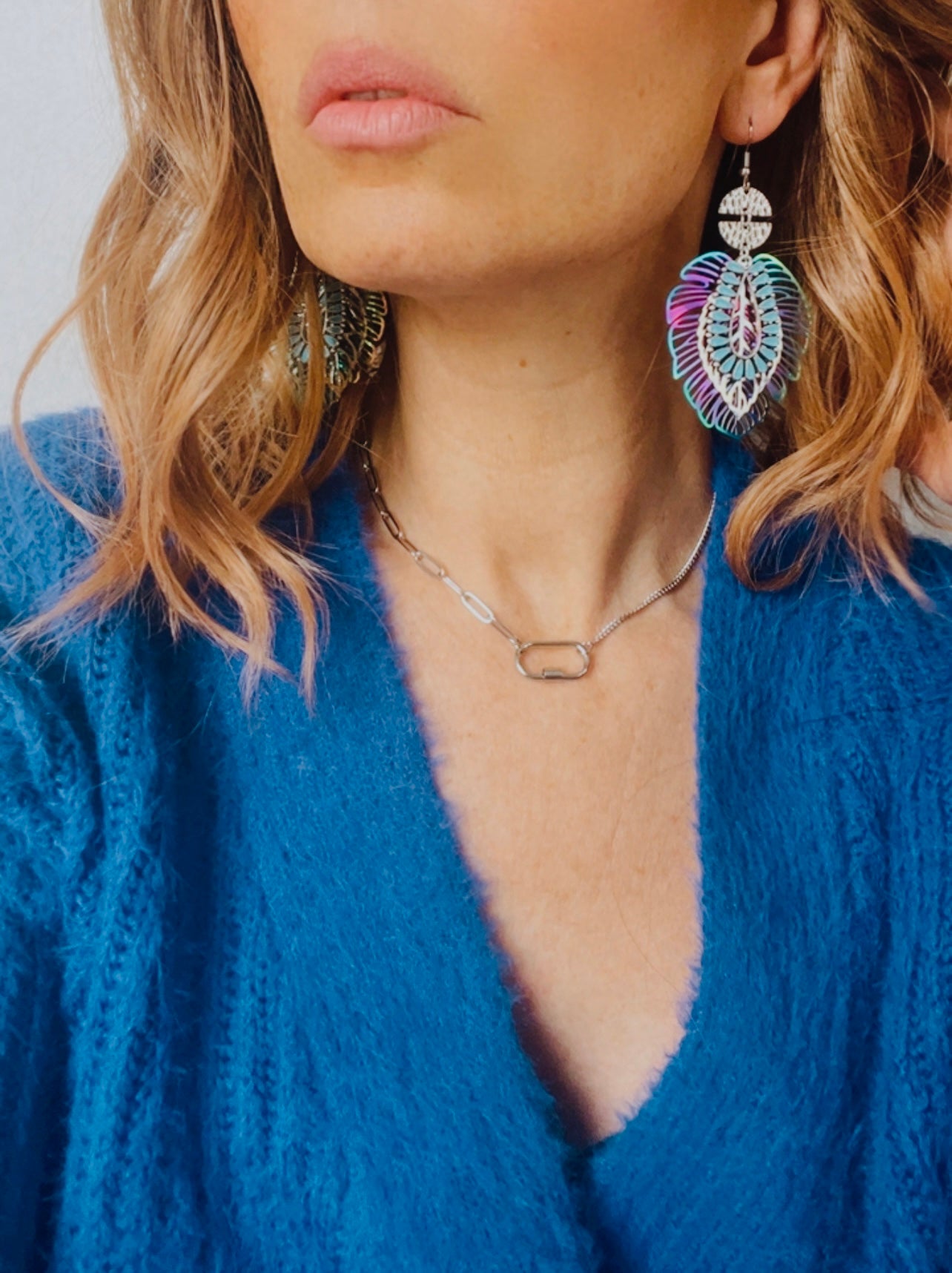 Nous vous proposons des boucles d'oreilles, des colliers, des bracelets ainsi que des broches. Des bijoux fantaisie légers, colorés, dorés ou argentés choisis avec soin pour sublimer vos tenues..