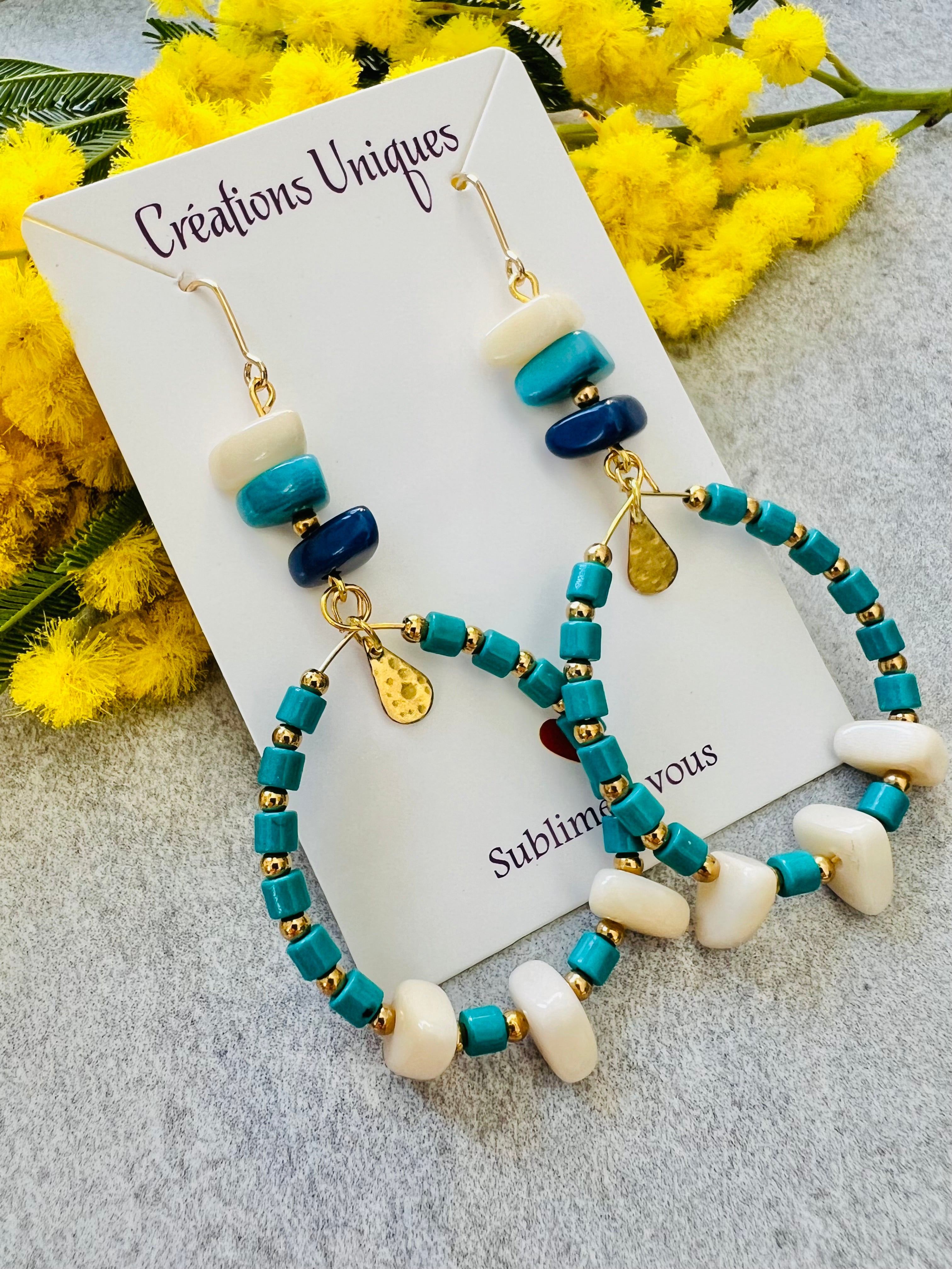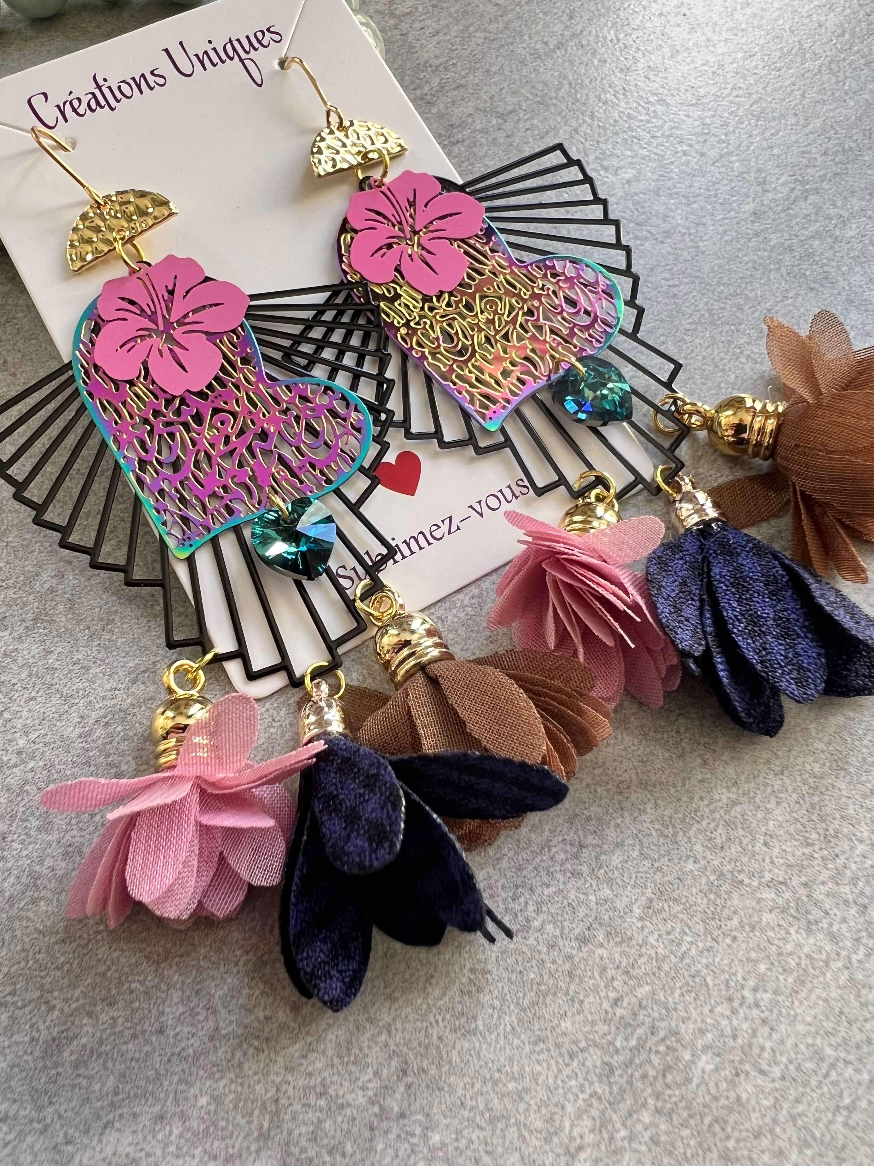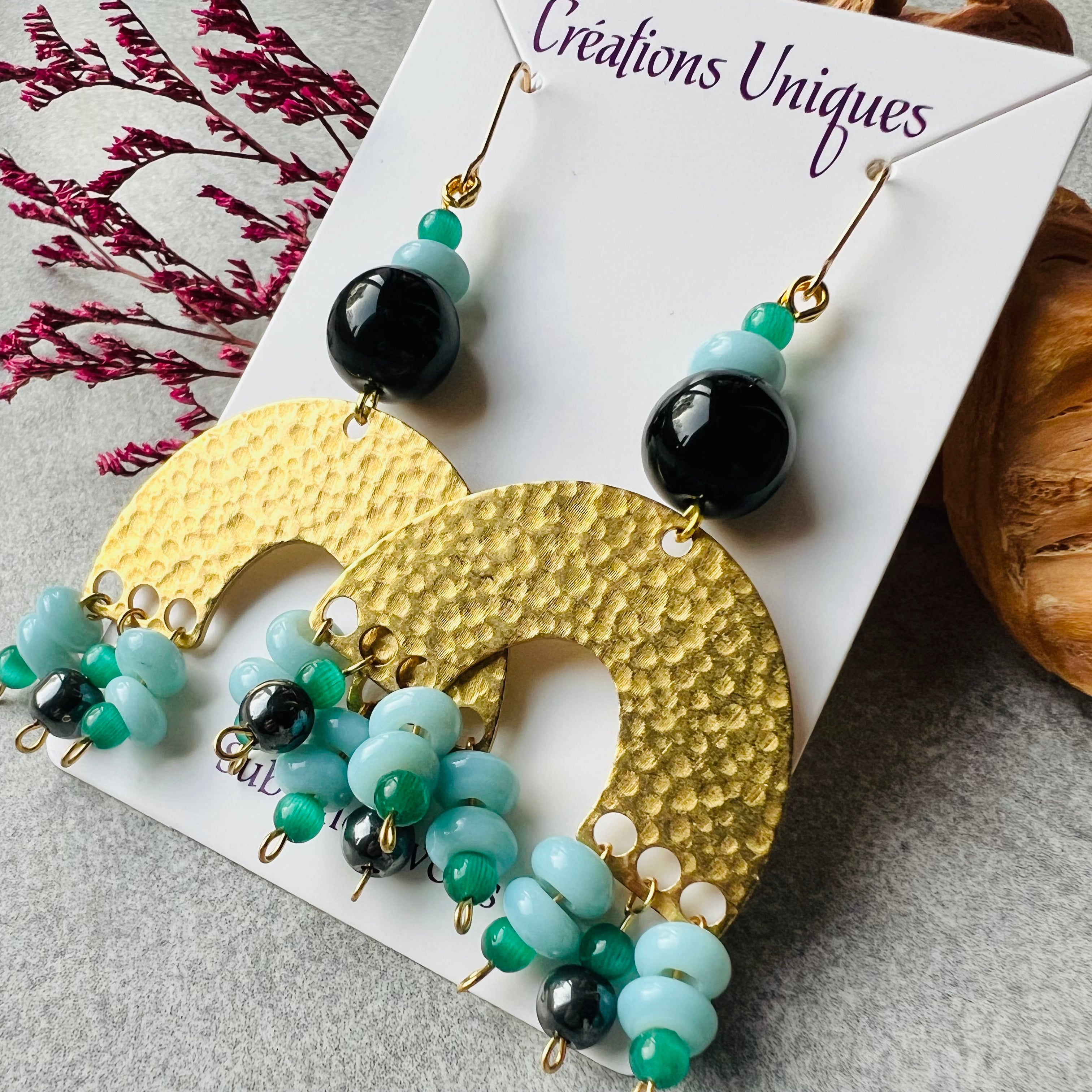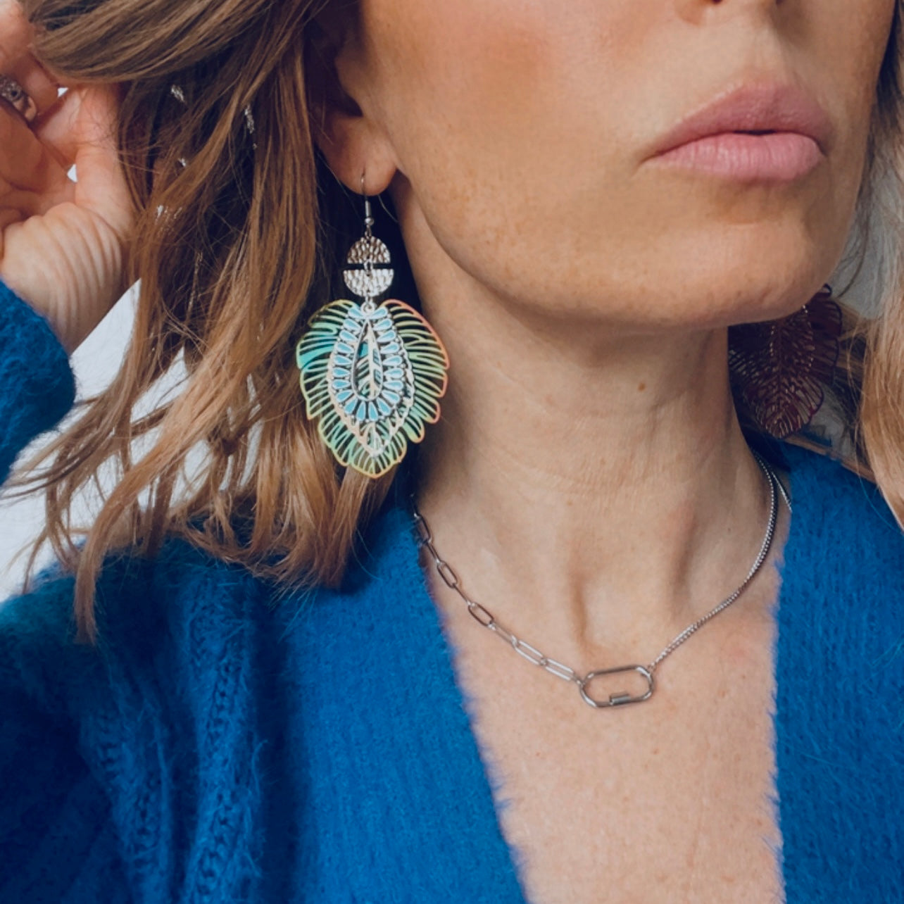 Nous vous proposons des boucles d'oreilles, des colliers, des bracelets ainsi que des broches. Des bijoux fantaisie légers, colorés, dorés ou argentés choisis avec soin pour sublimer vos tenues..