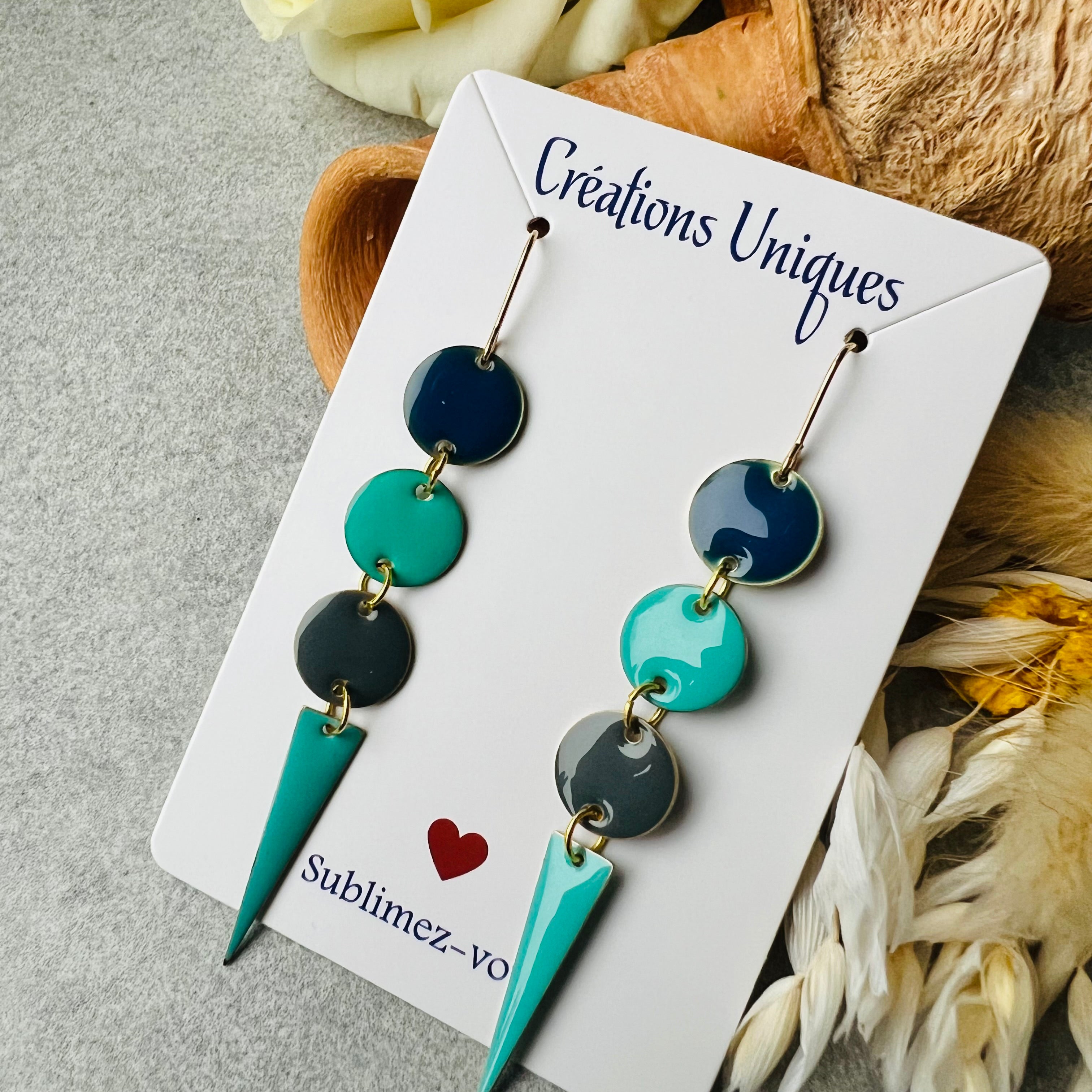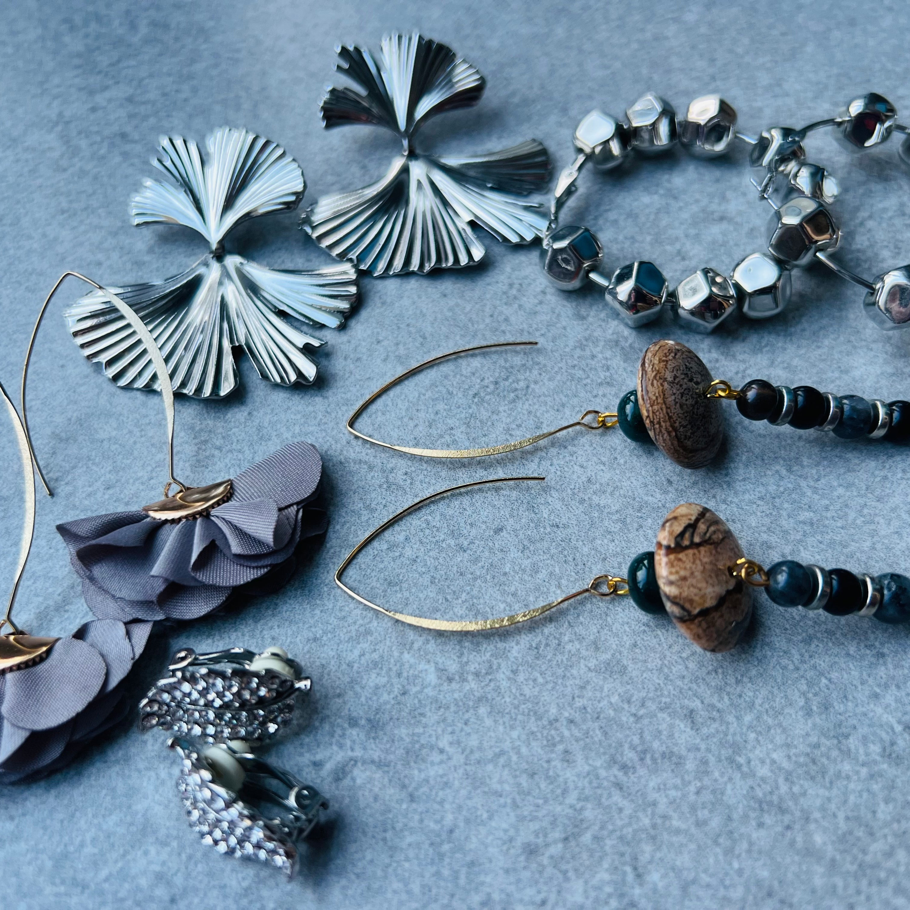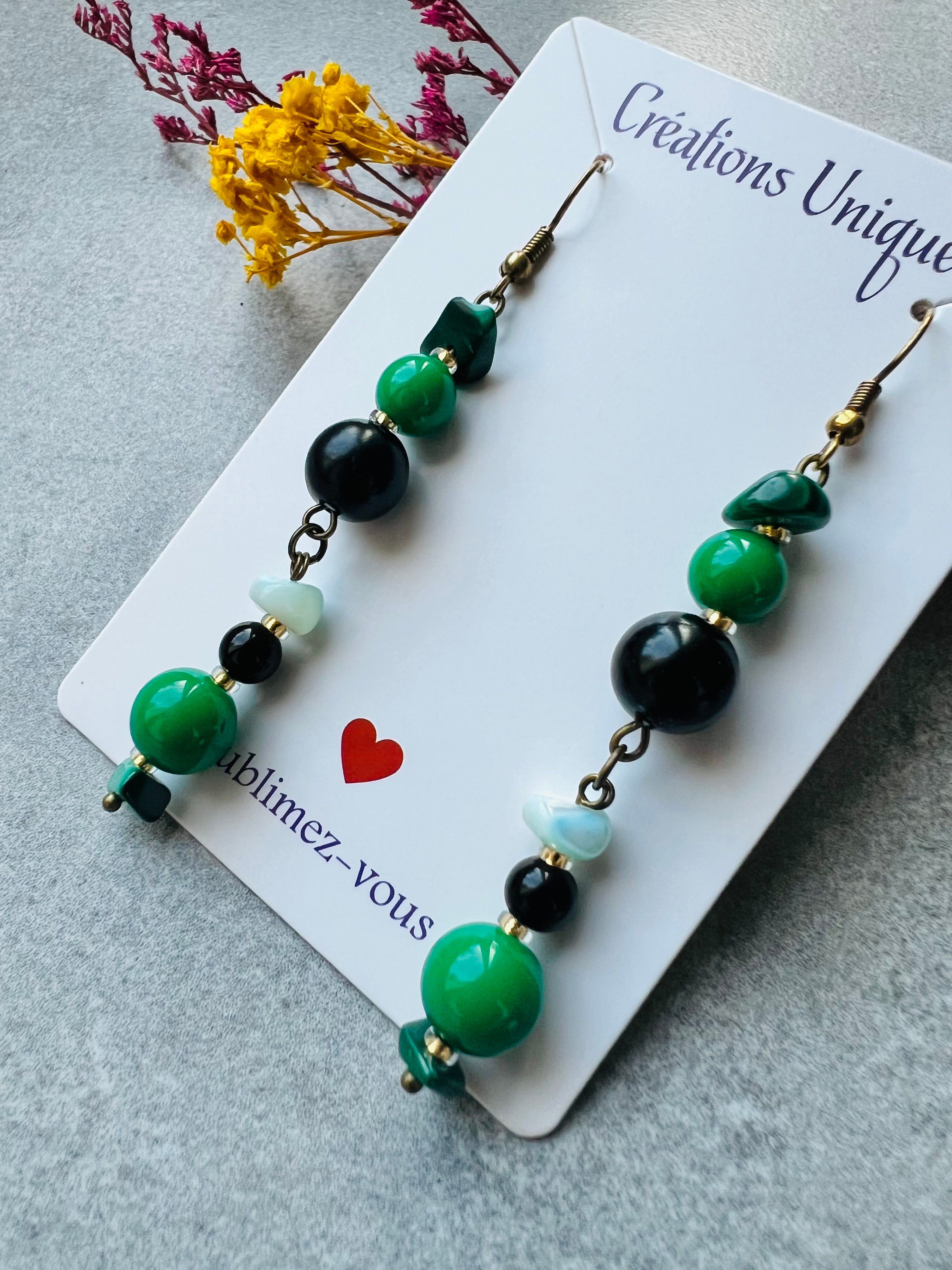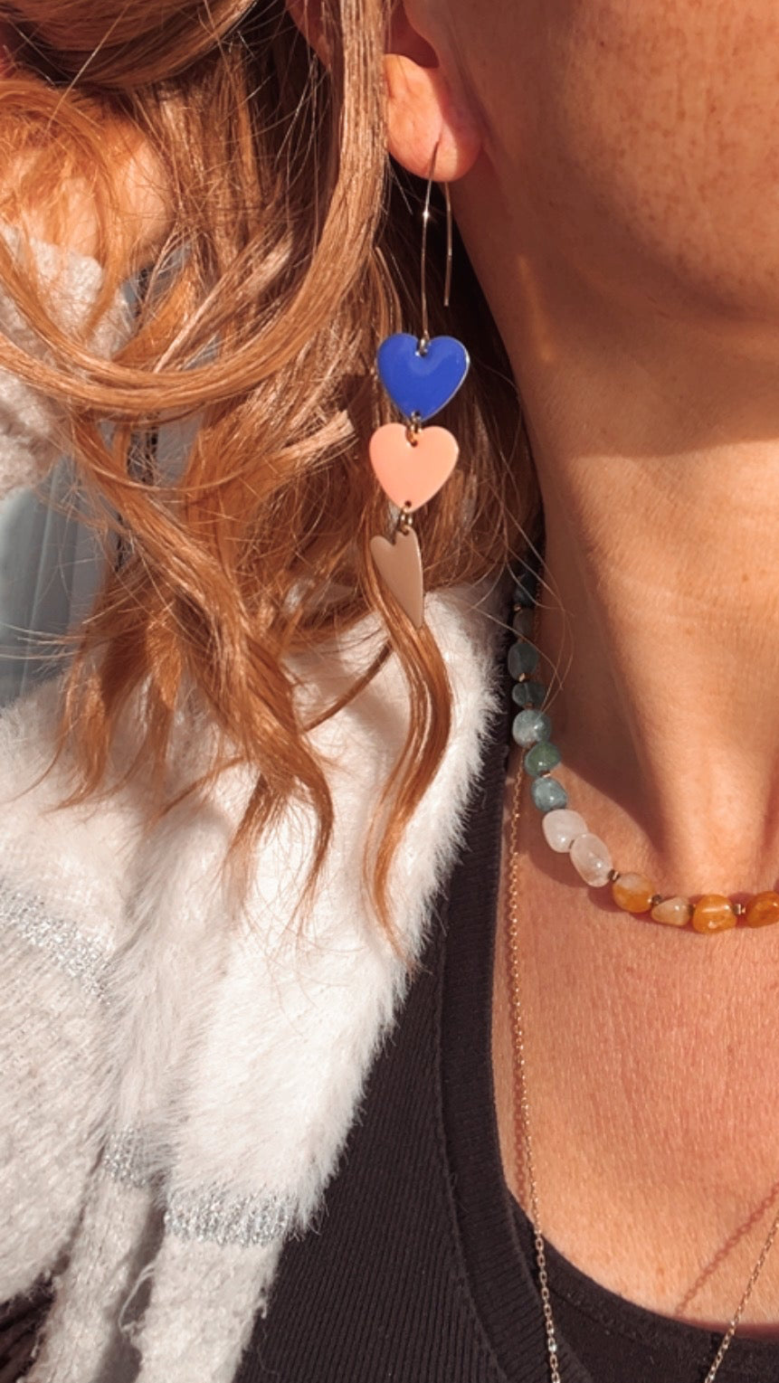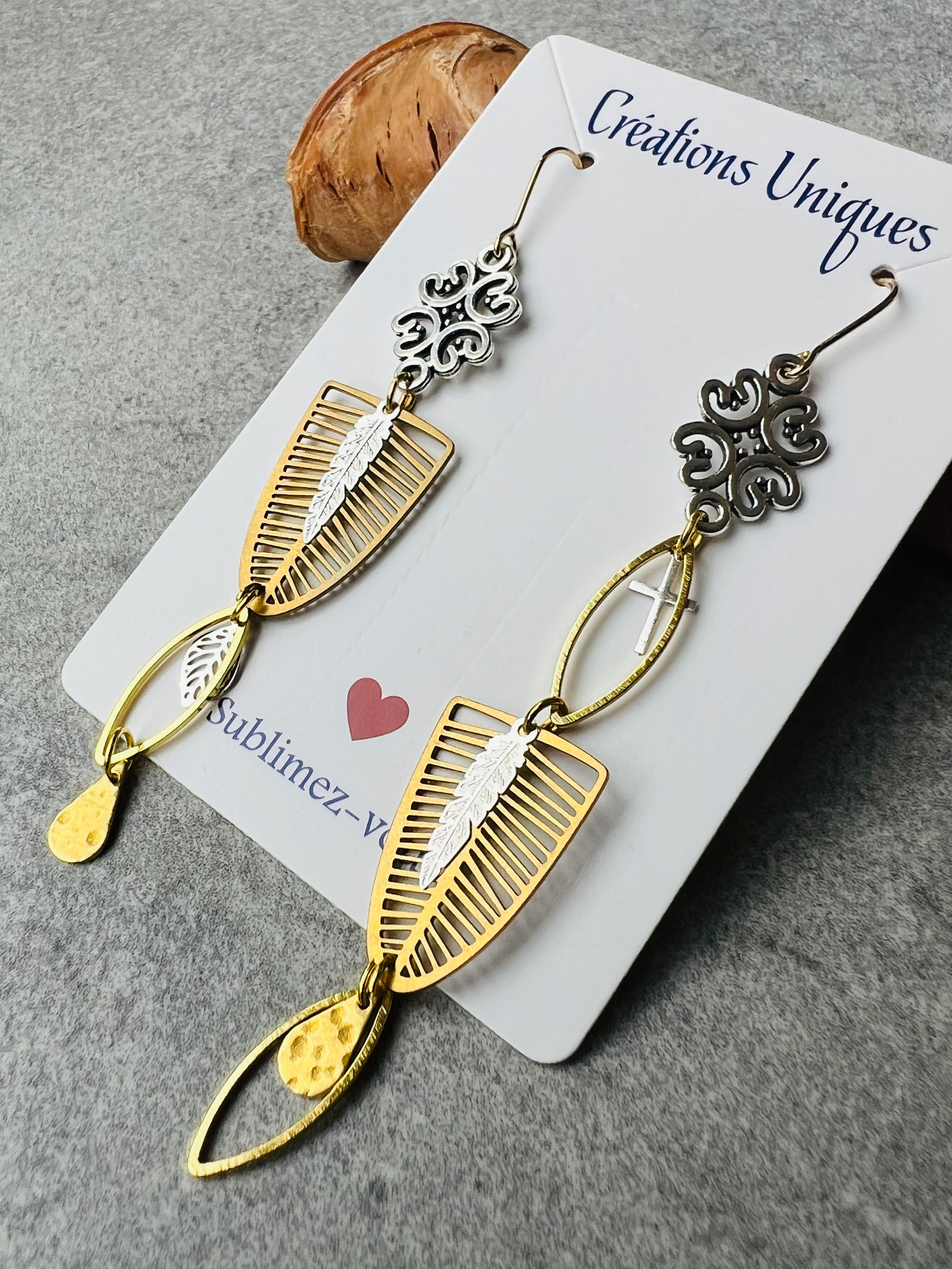 Nous vous proposons des boucles d'oreilles, des colliers, des bracelets ainsi que des broches. Des bijoux fantaisie légers, colorés, dorés ou argentés choisis avec soin pour sublimer vos tenues..