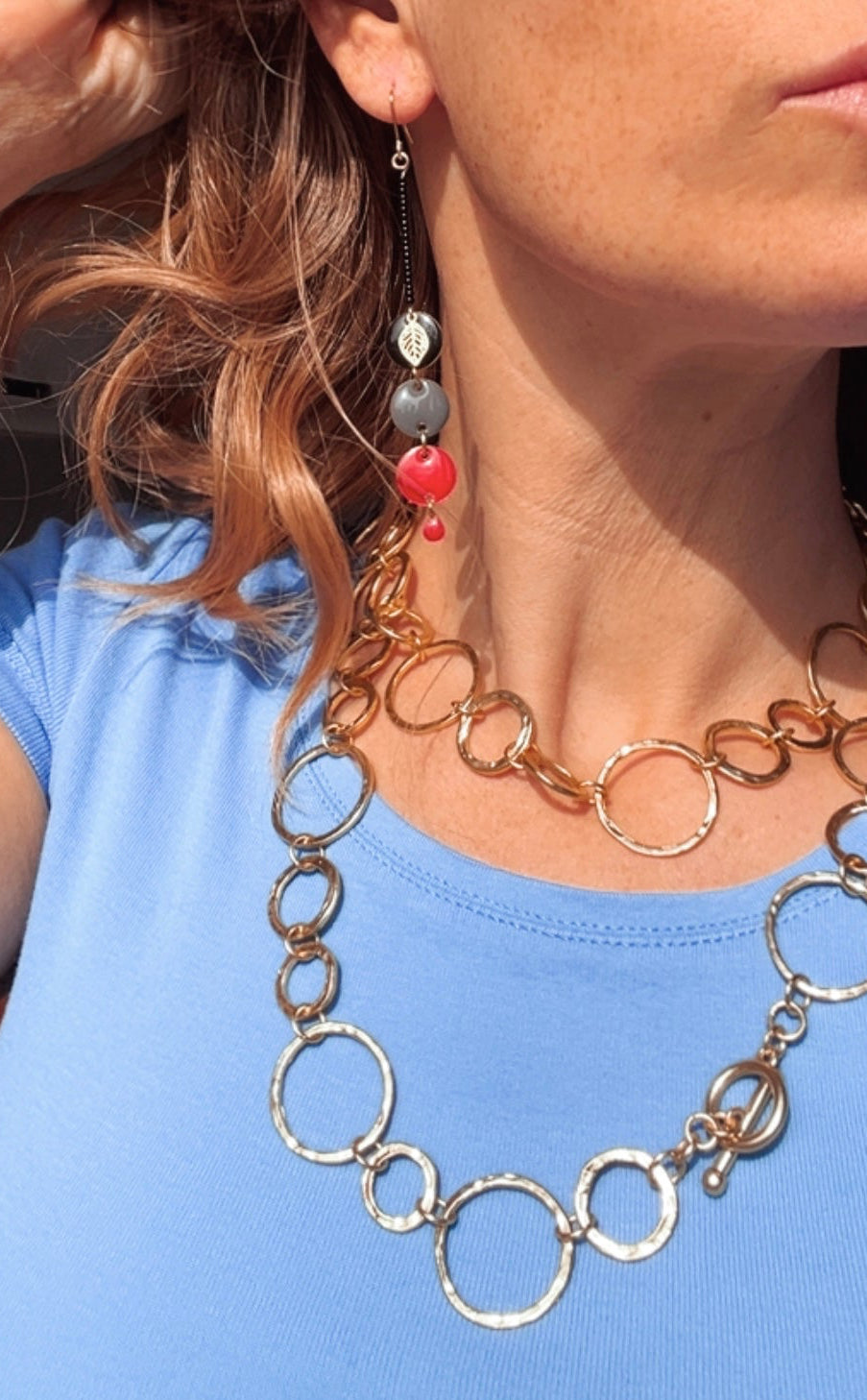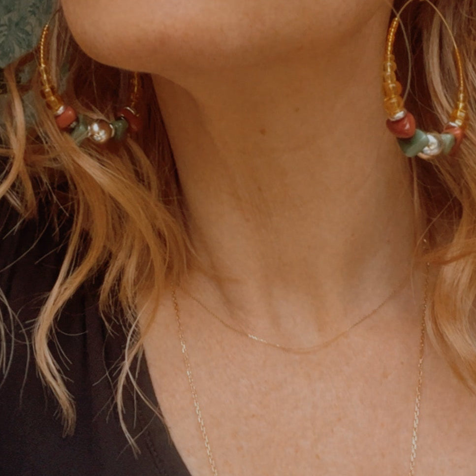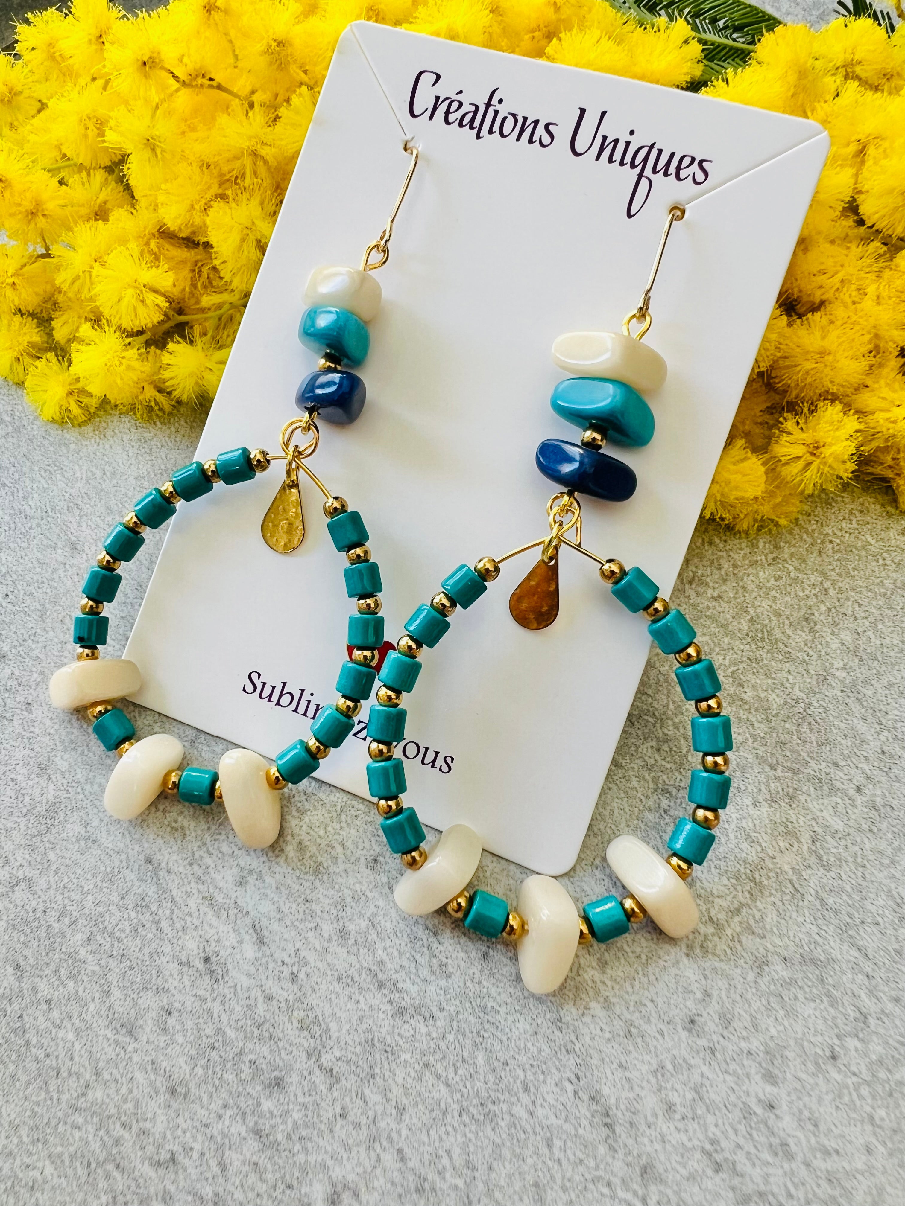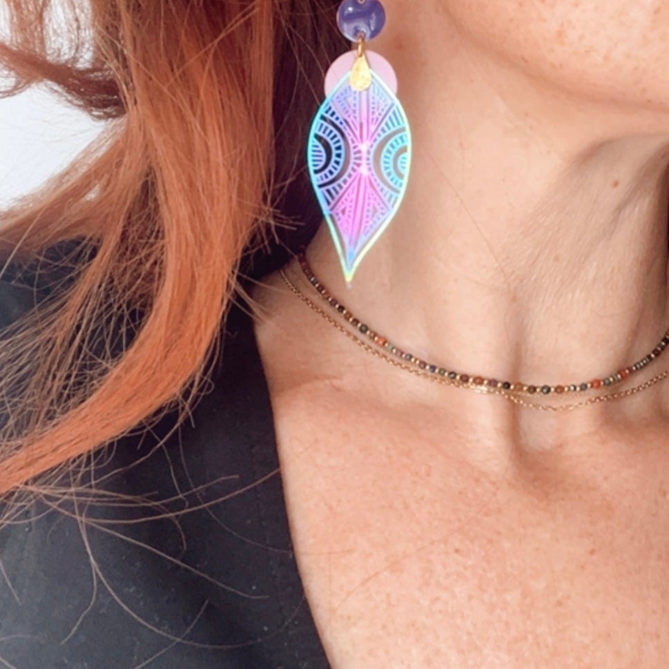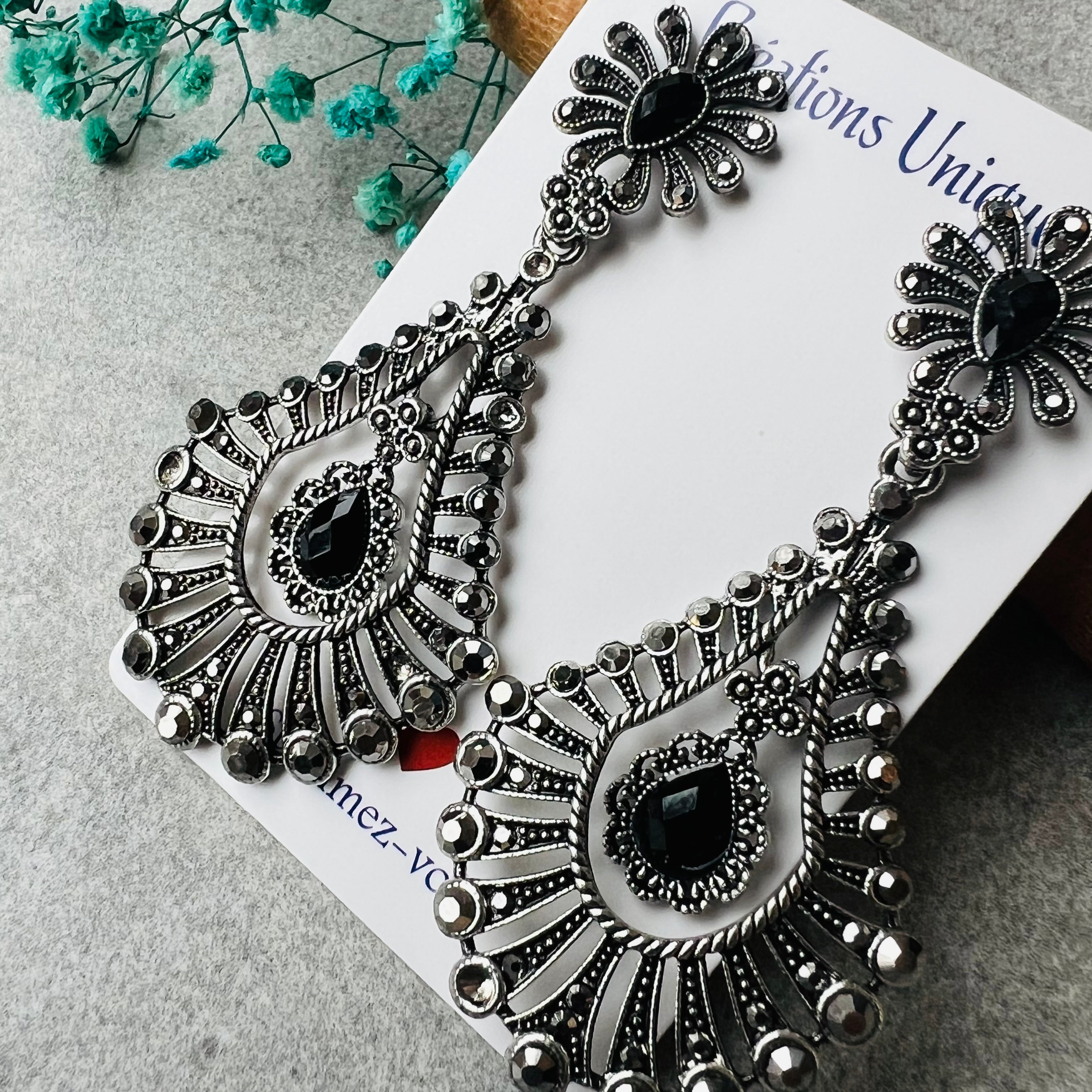 Nous vous proposons des boucles d'oreilles, des colliers, des bracelets ainsi que des broches. Des bijoux fantaisie légers, colorés, dorés ou argentés choisis avec soin pour sublimer vos tenues..