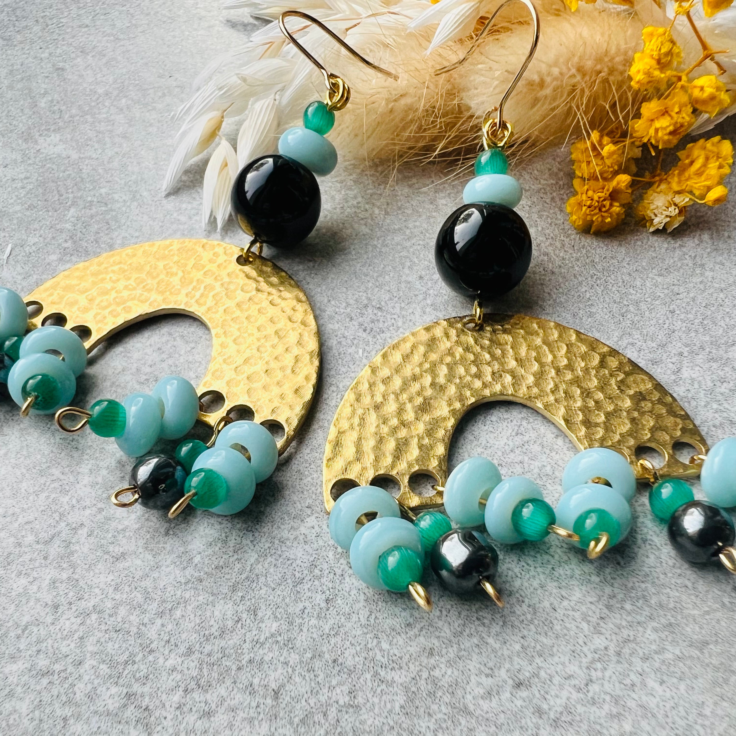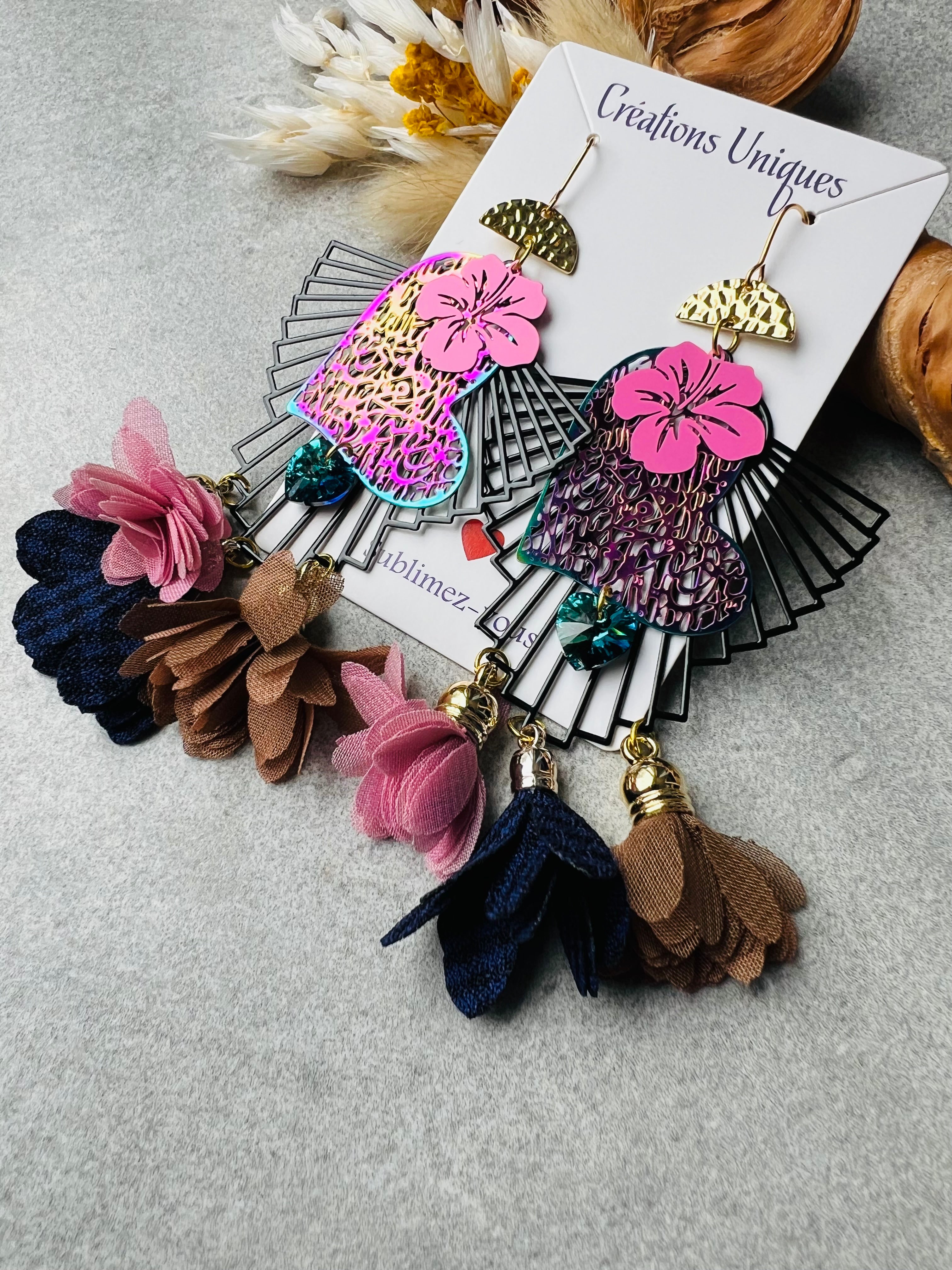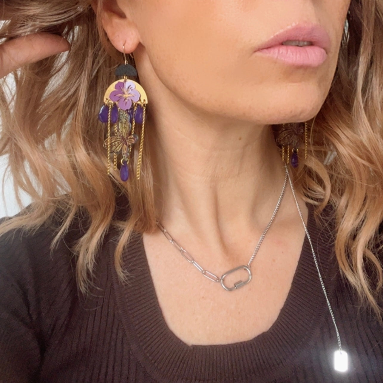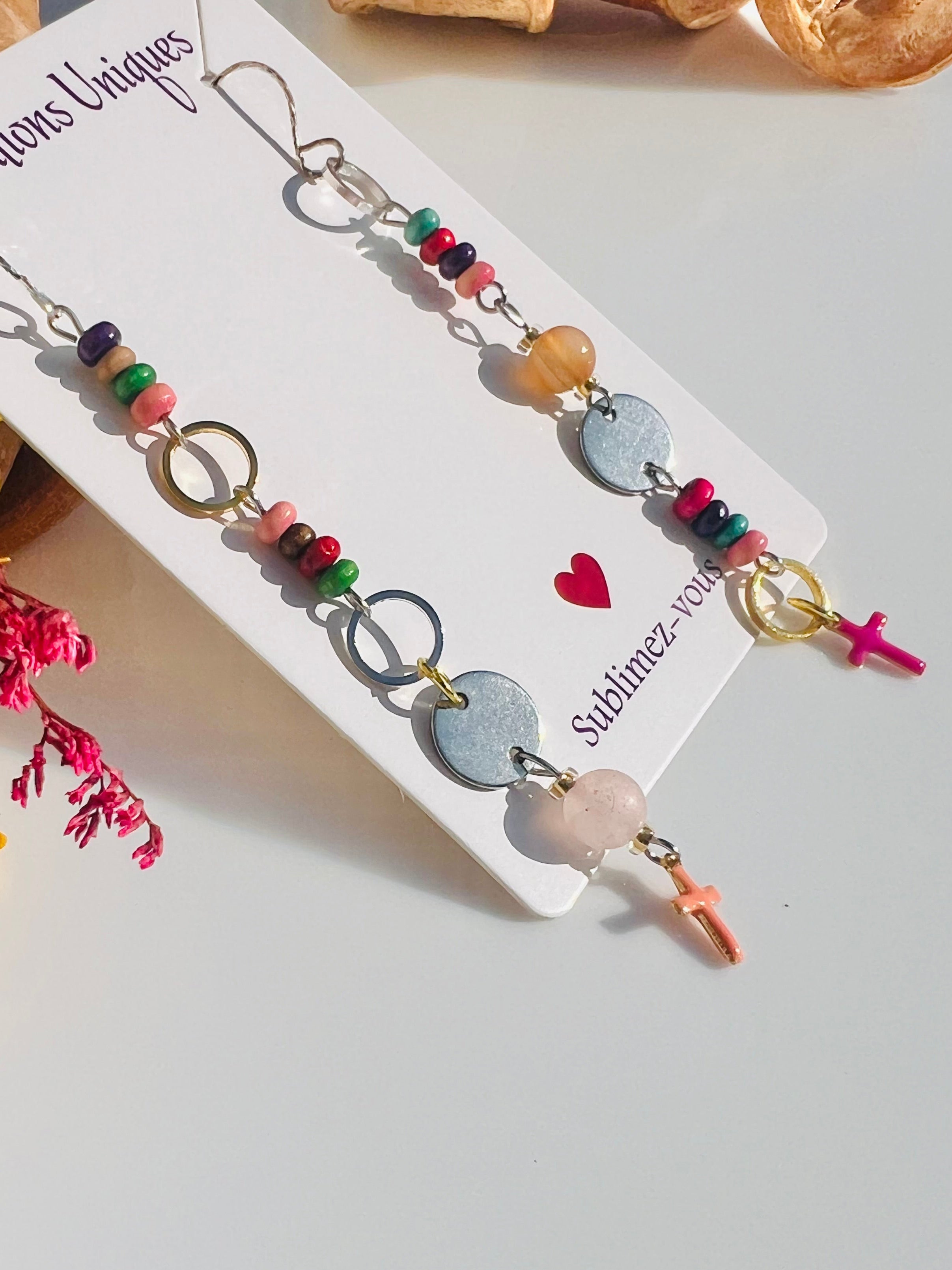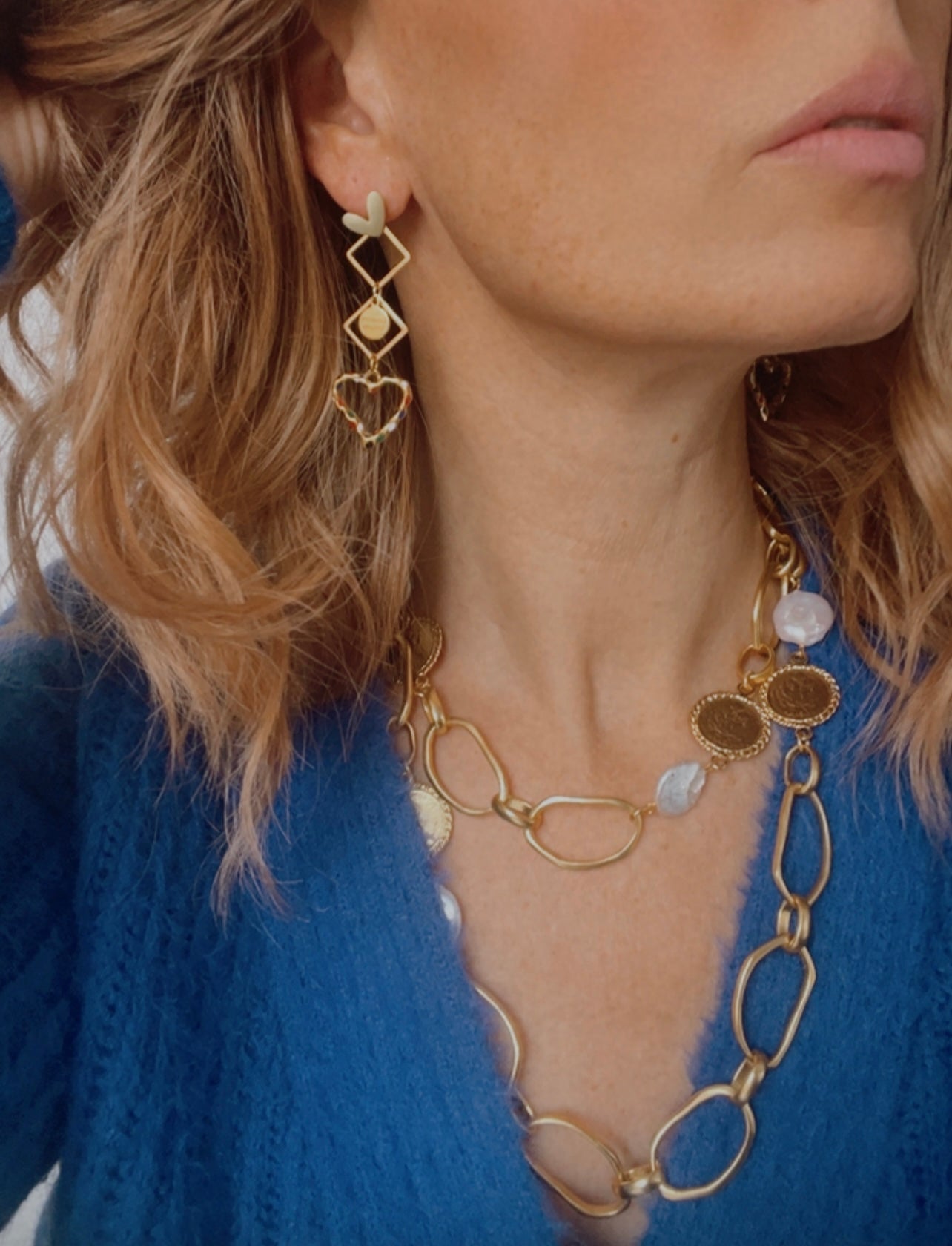 Nous vous proposons des boucles d'oreilles, des colliers, des bracelets ainsi que des broches. Des bijoux fantaisie légers, colorés, dorés ou argentés choisis avec soin pour sublimer vos tenues..