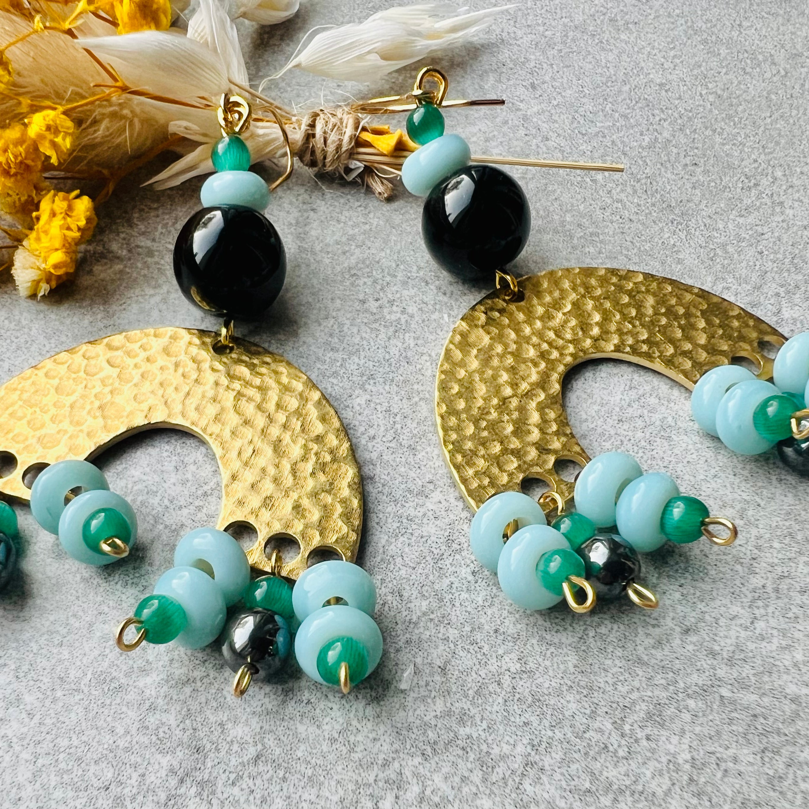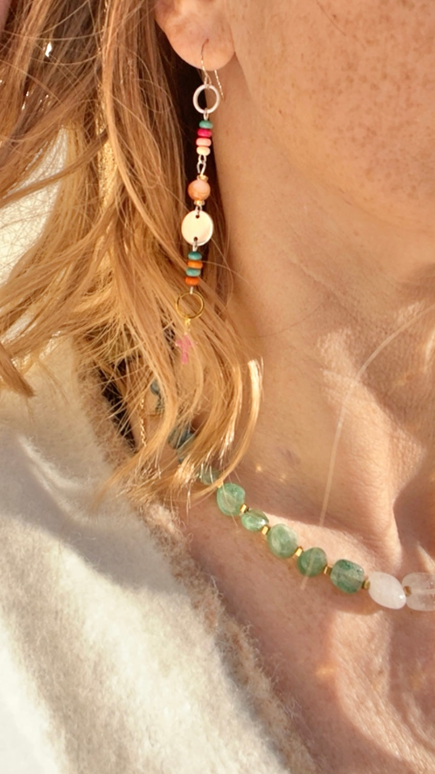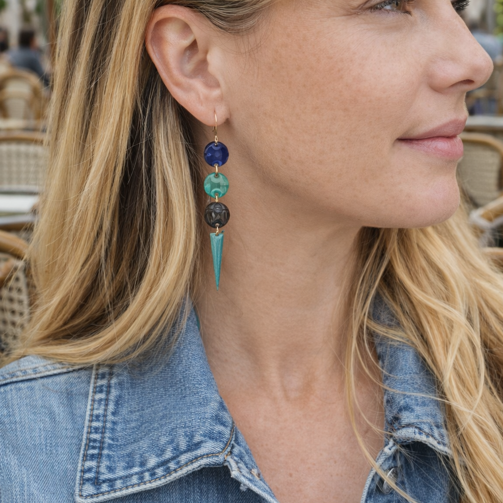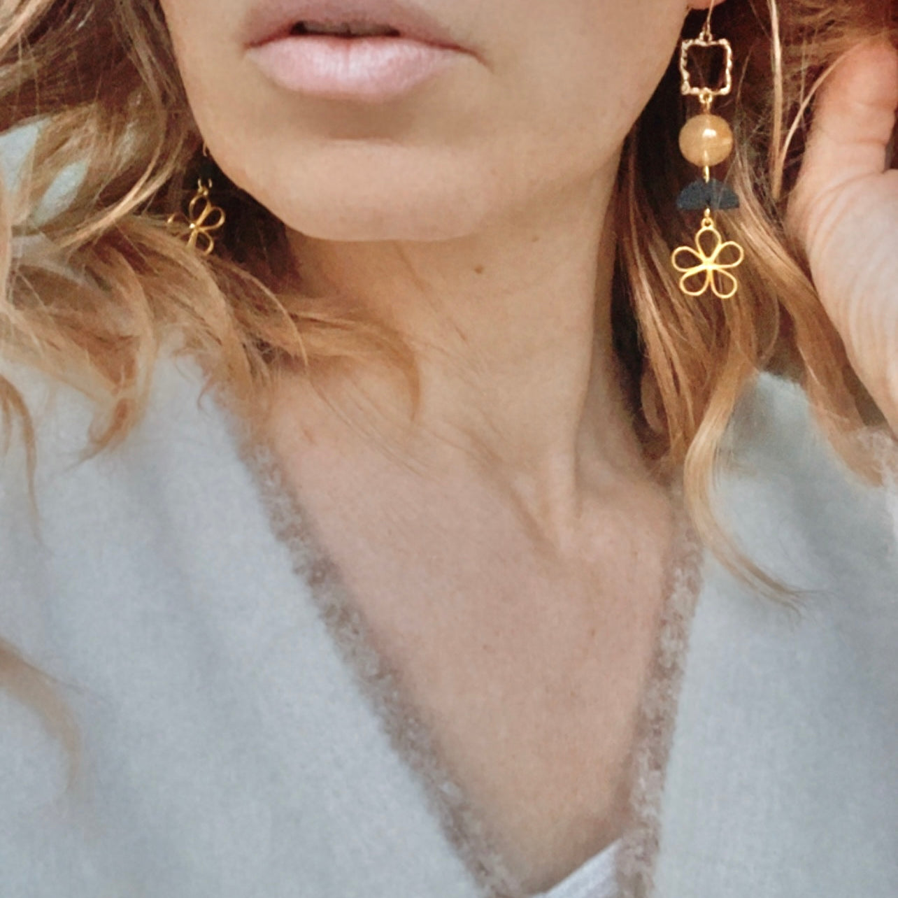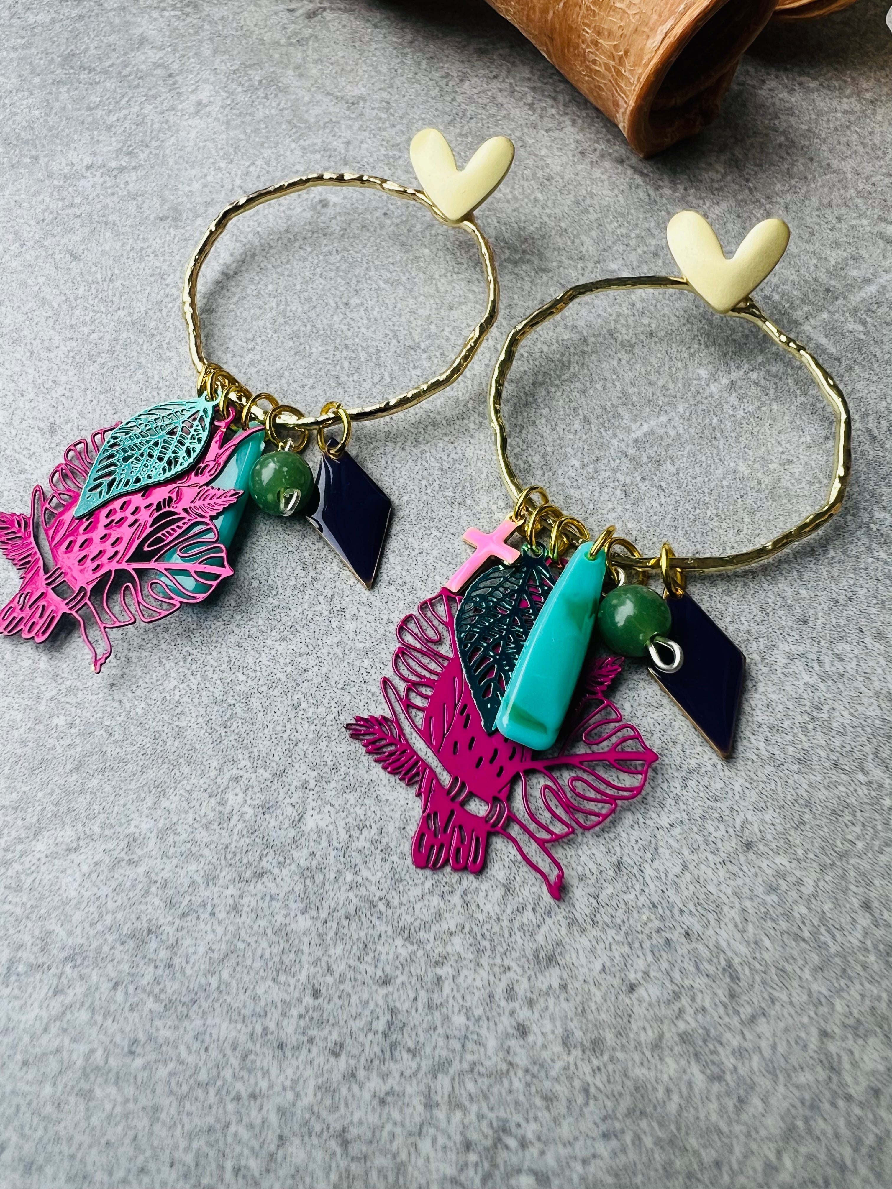 Nous vous proposons des boucles d'oreilles, des colliers, des bracelets ainsi que des broches. Des bijoux fantaisie légers, colorés, dorés ou argentés choisis avec soin pour sublimer vos tenues..