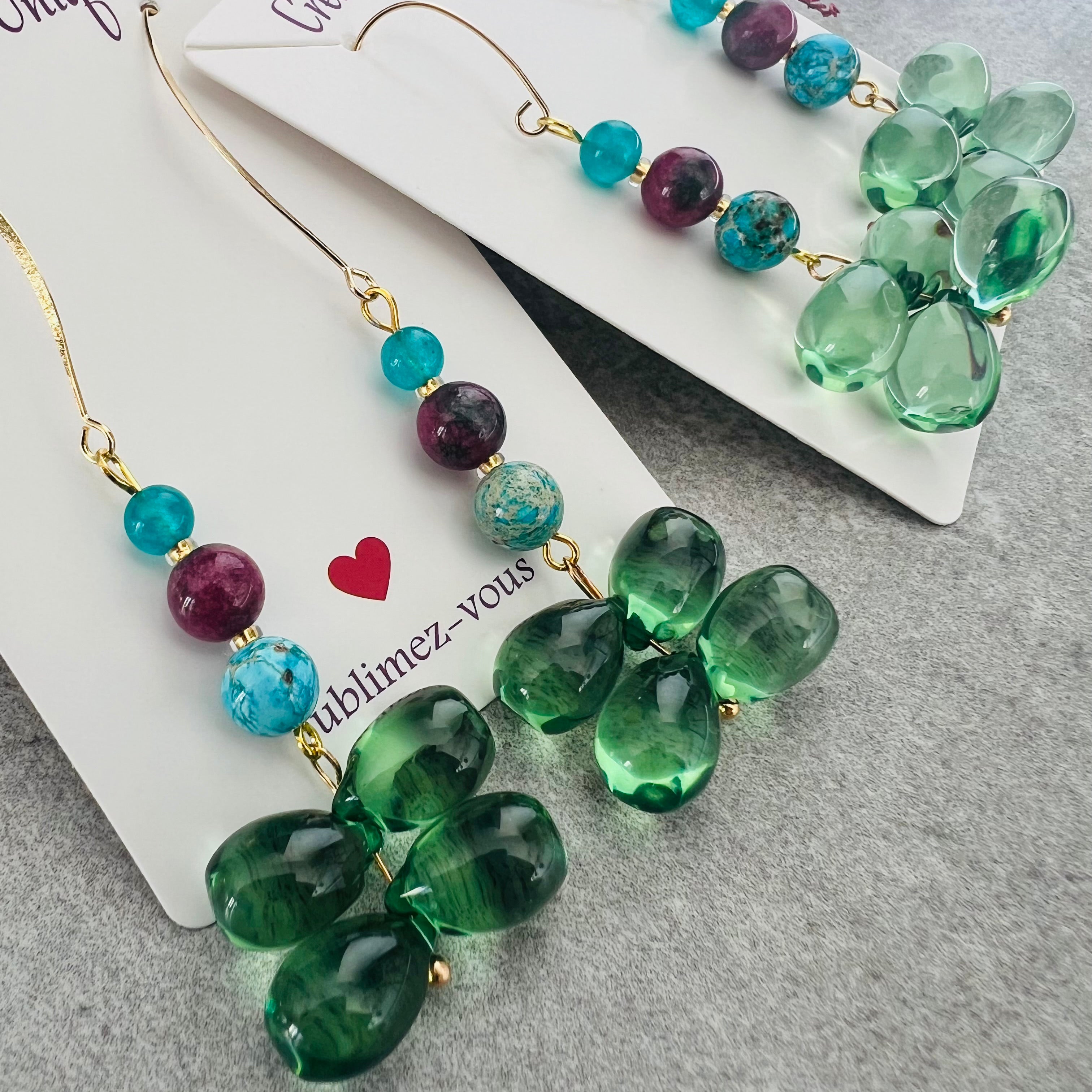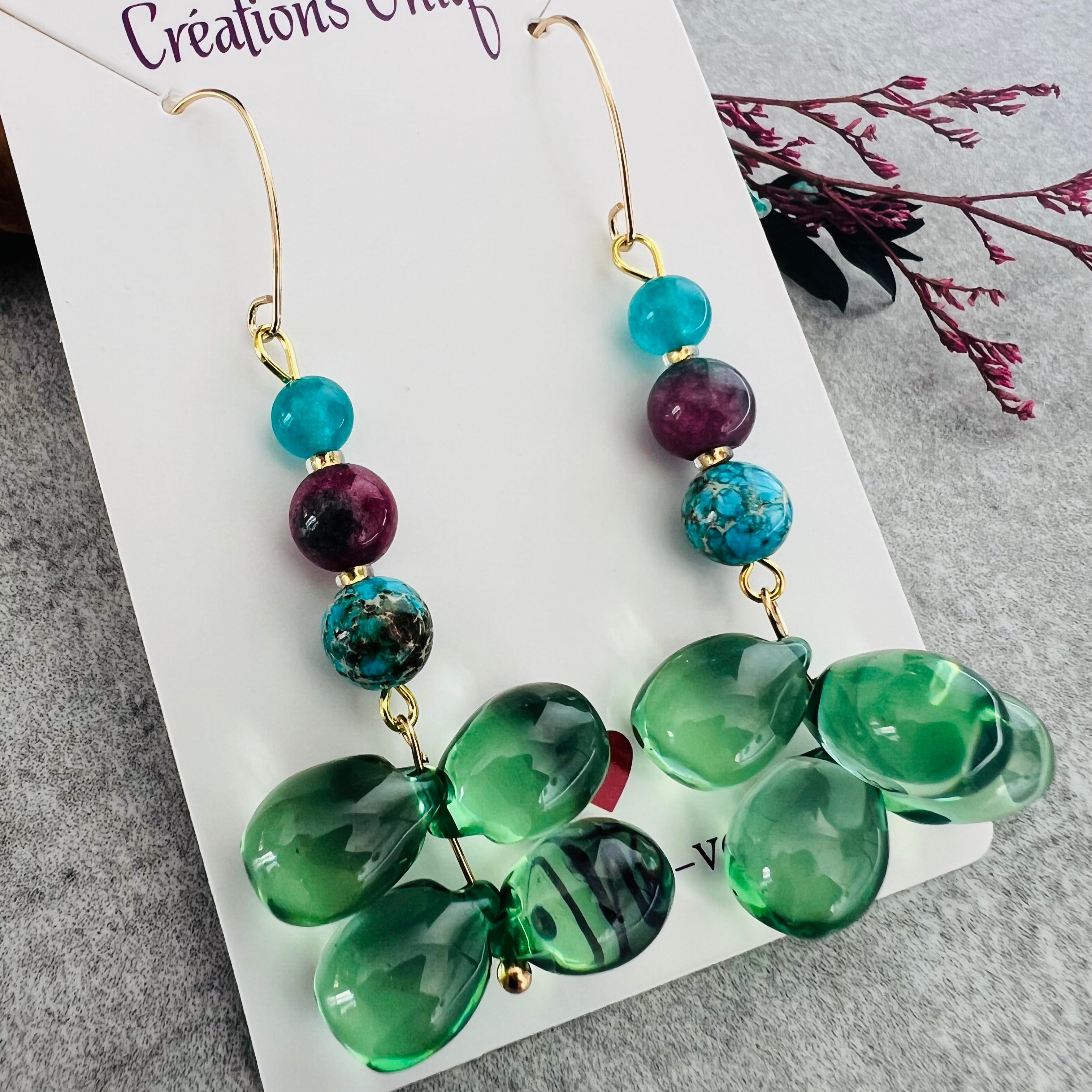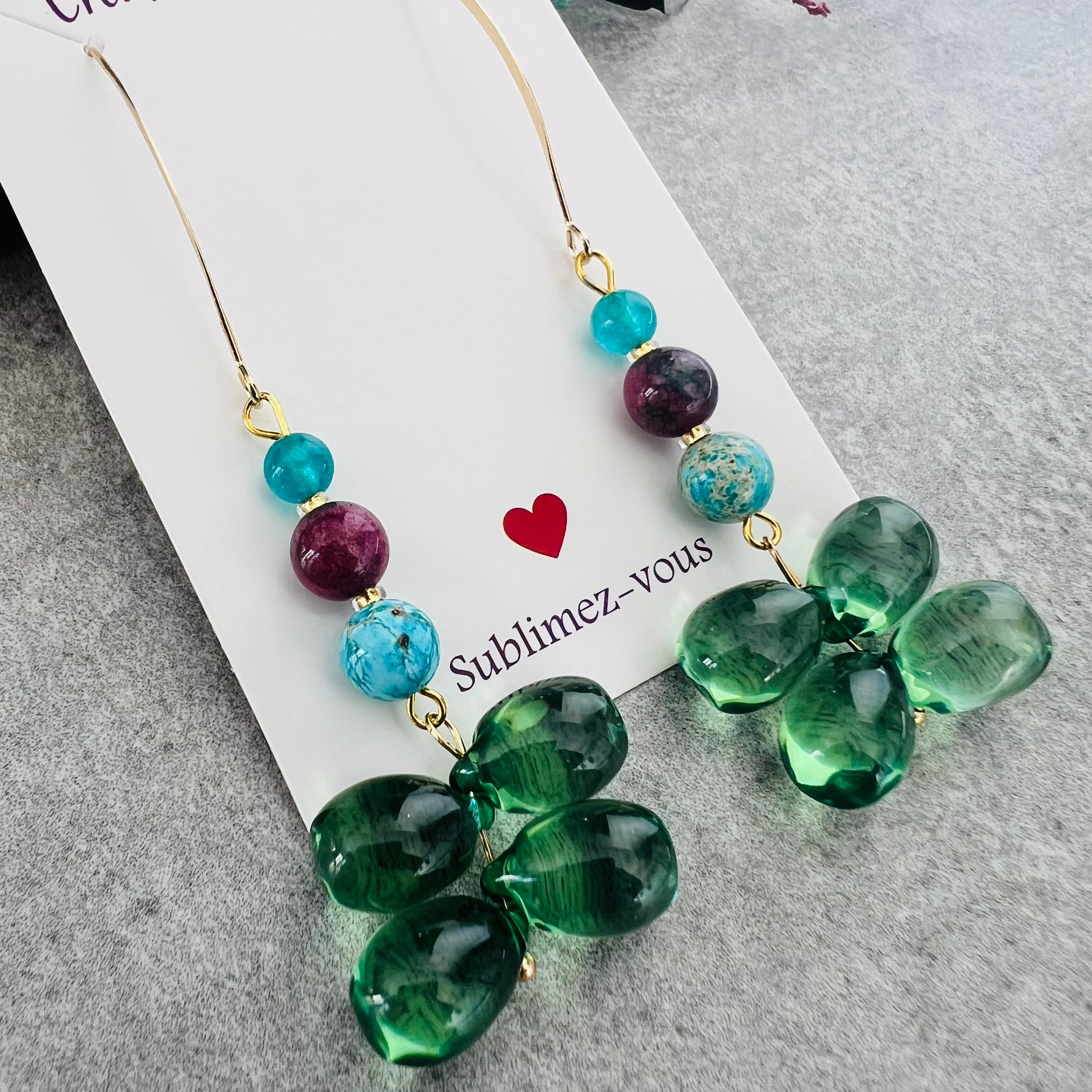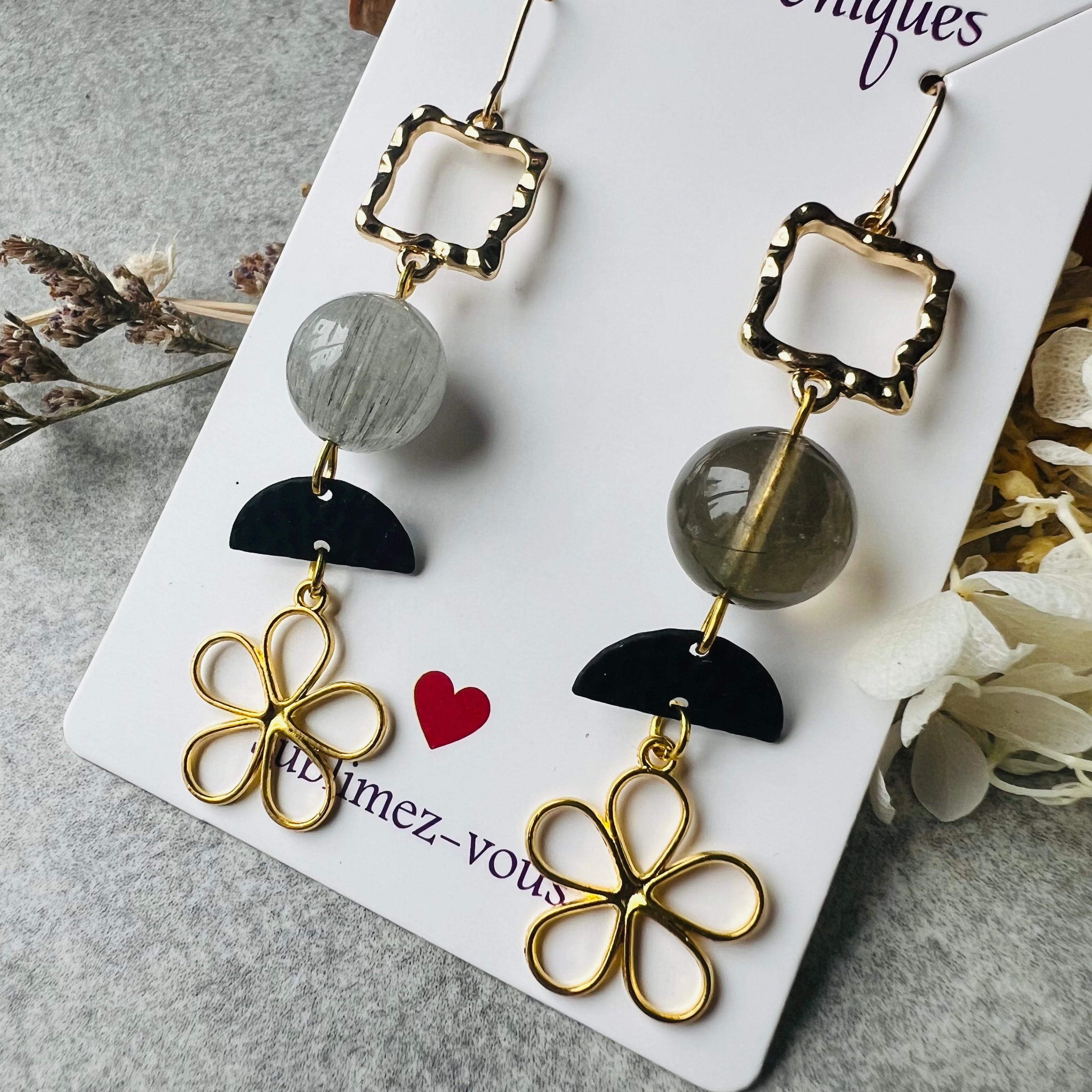 Nous vous proposons des boucles d'oreilles, des colliers, des bracelets ainsi que des broches. Des bijoux fantaisie légers, colorés, dorés ou argentés choisis avec soin pour sublimer vos tenues..
