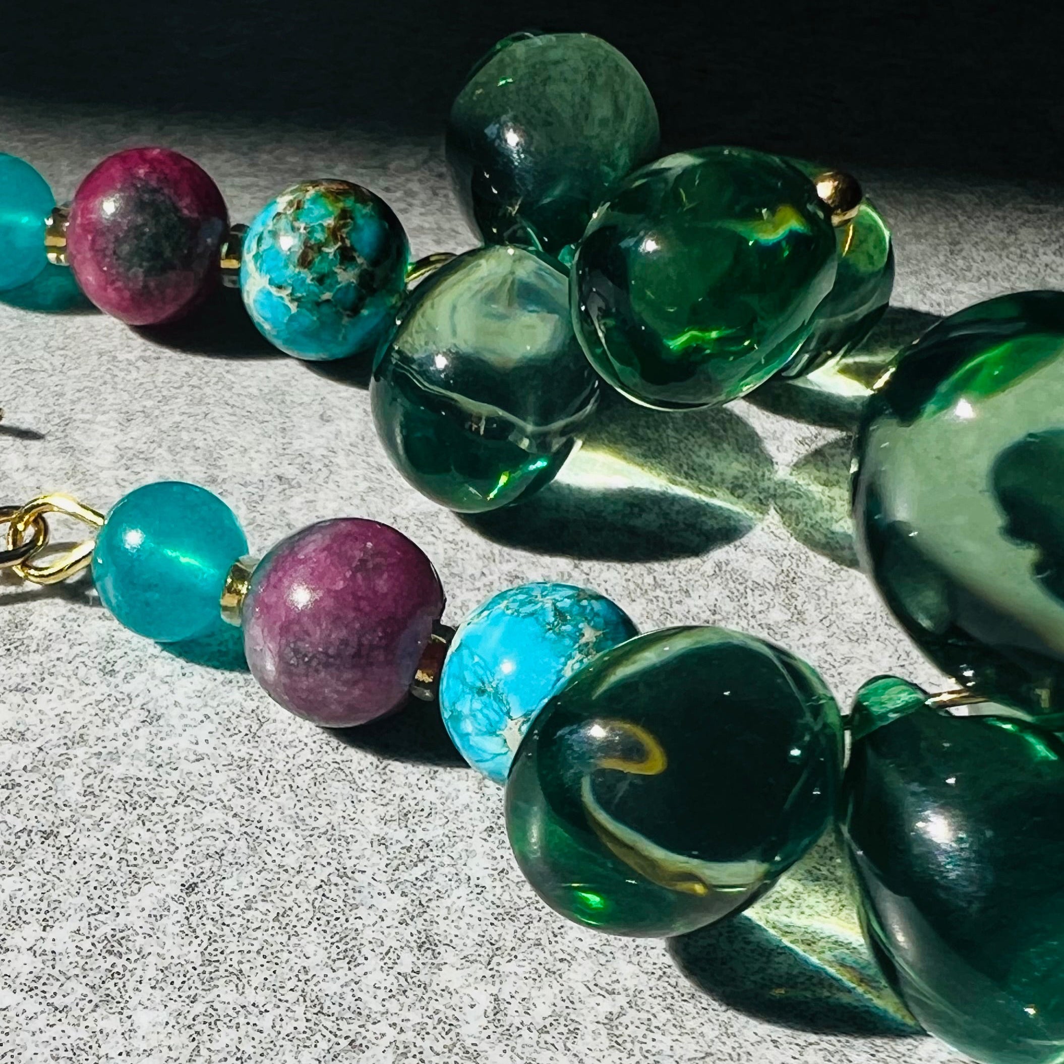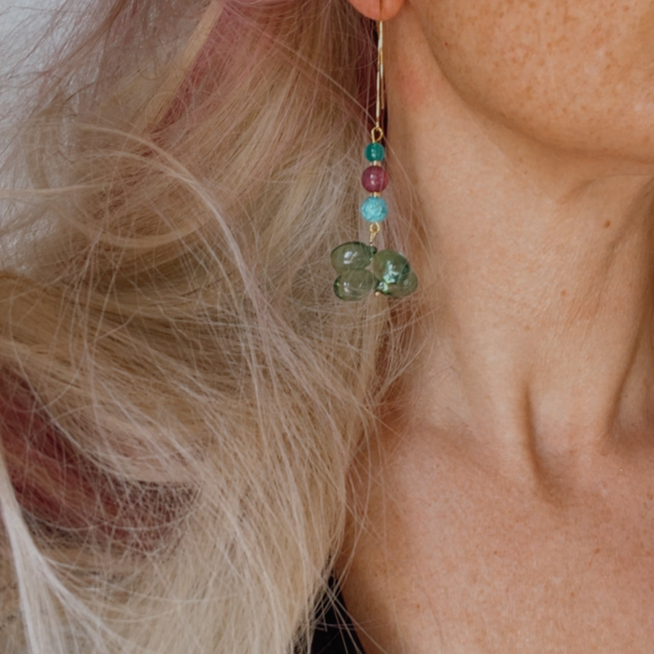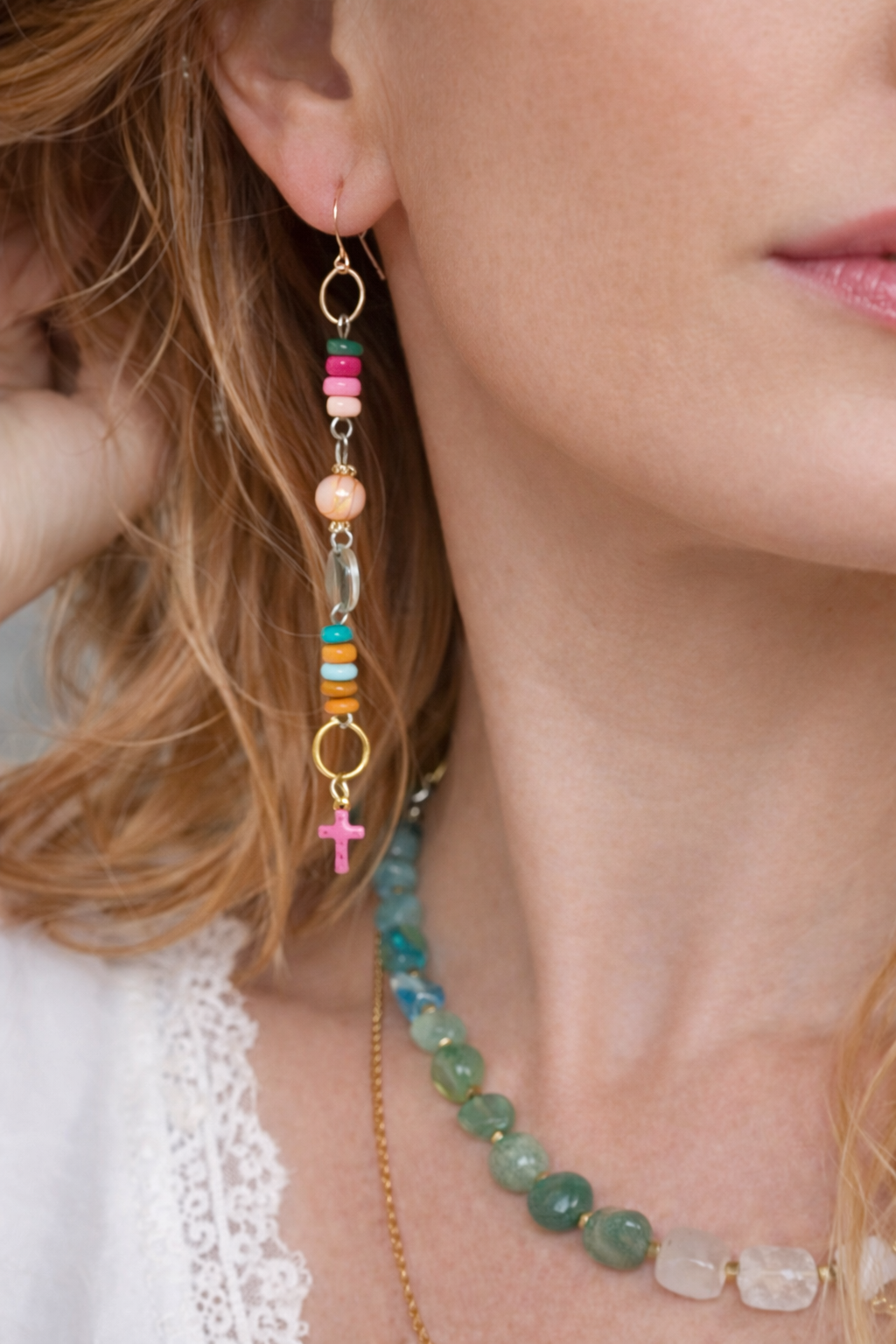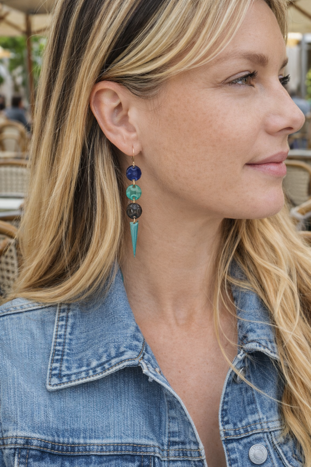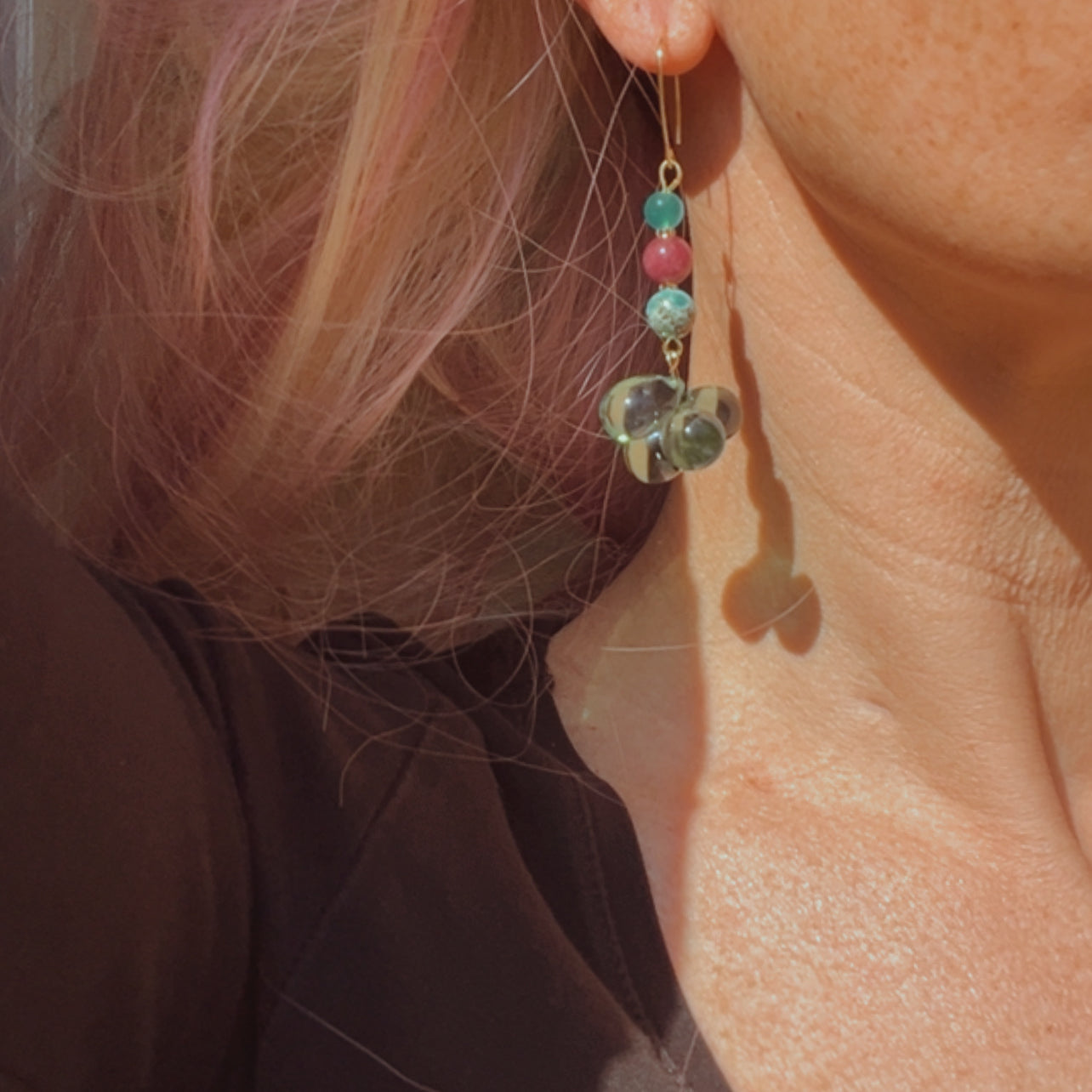 Nous vous proposons des boucles d'oreilles, des colliers, des bracelets ainsi que des broches. Des bijoux fantaisie légers, colorés, dorés ou argentés choisis avec soin pour sublimer vos tenues..