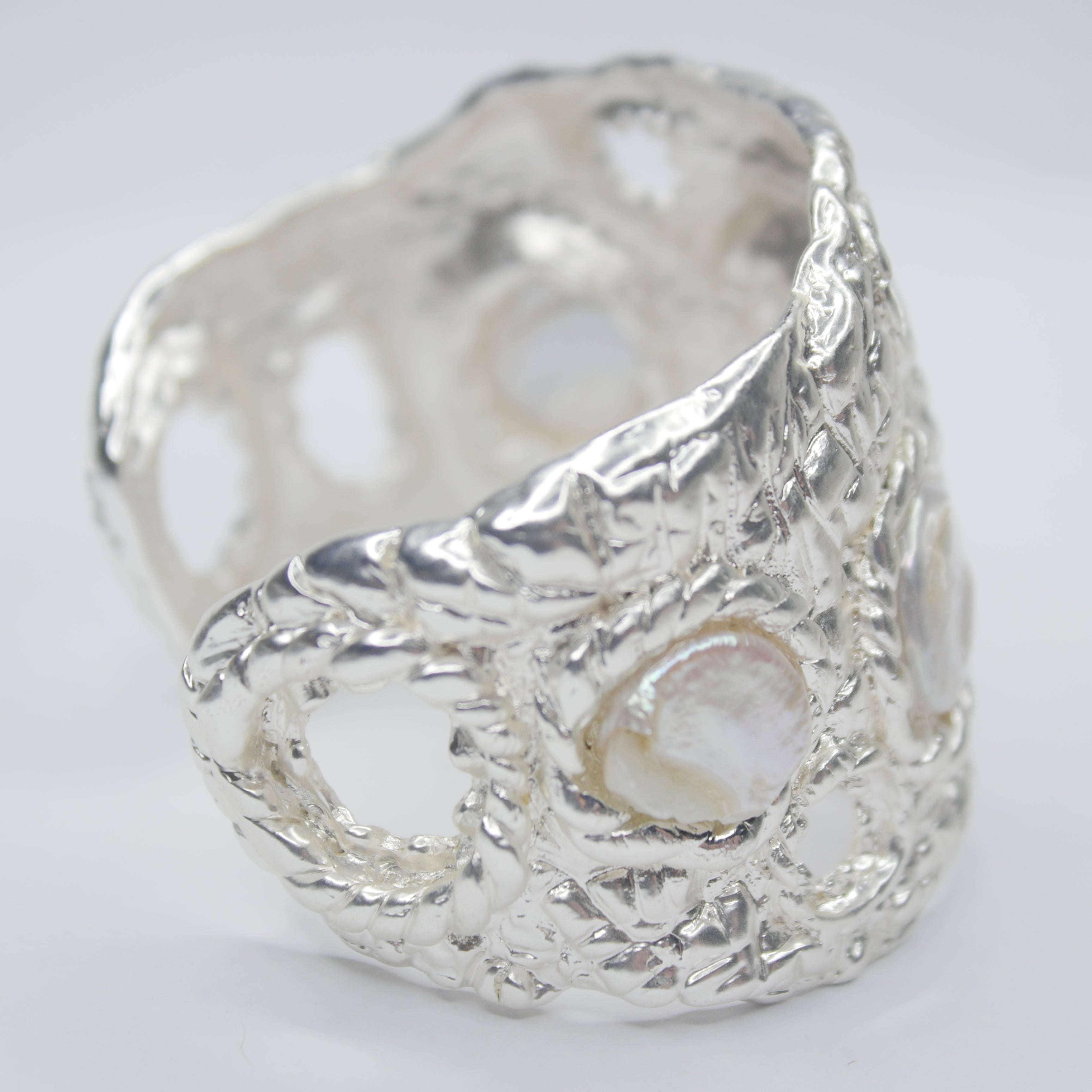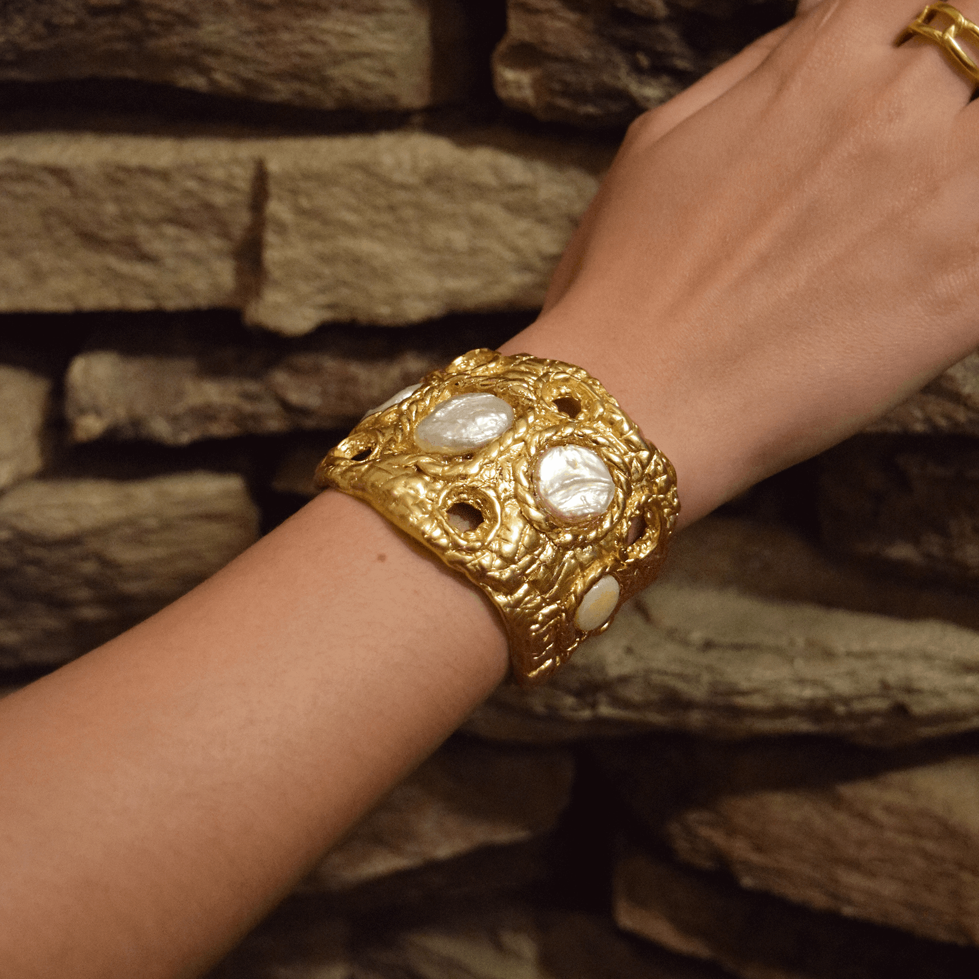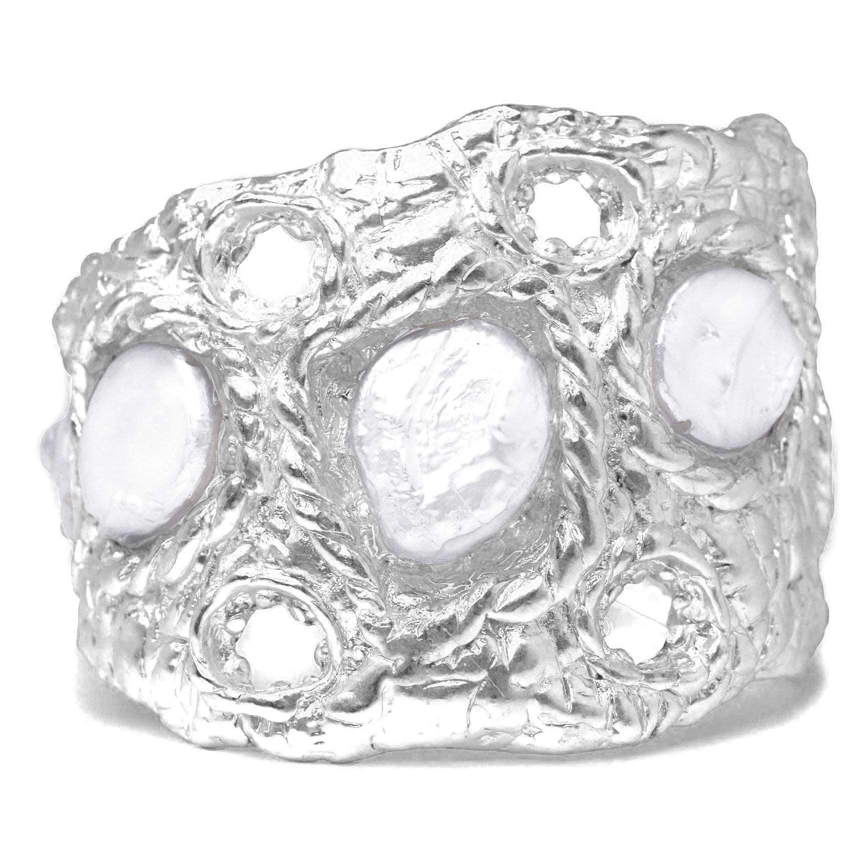 B74620 Bracelet manchette texturée perle - Karine Sultan