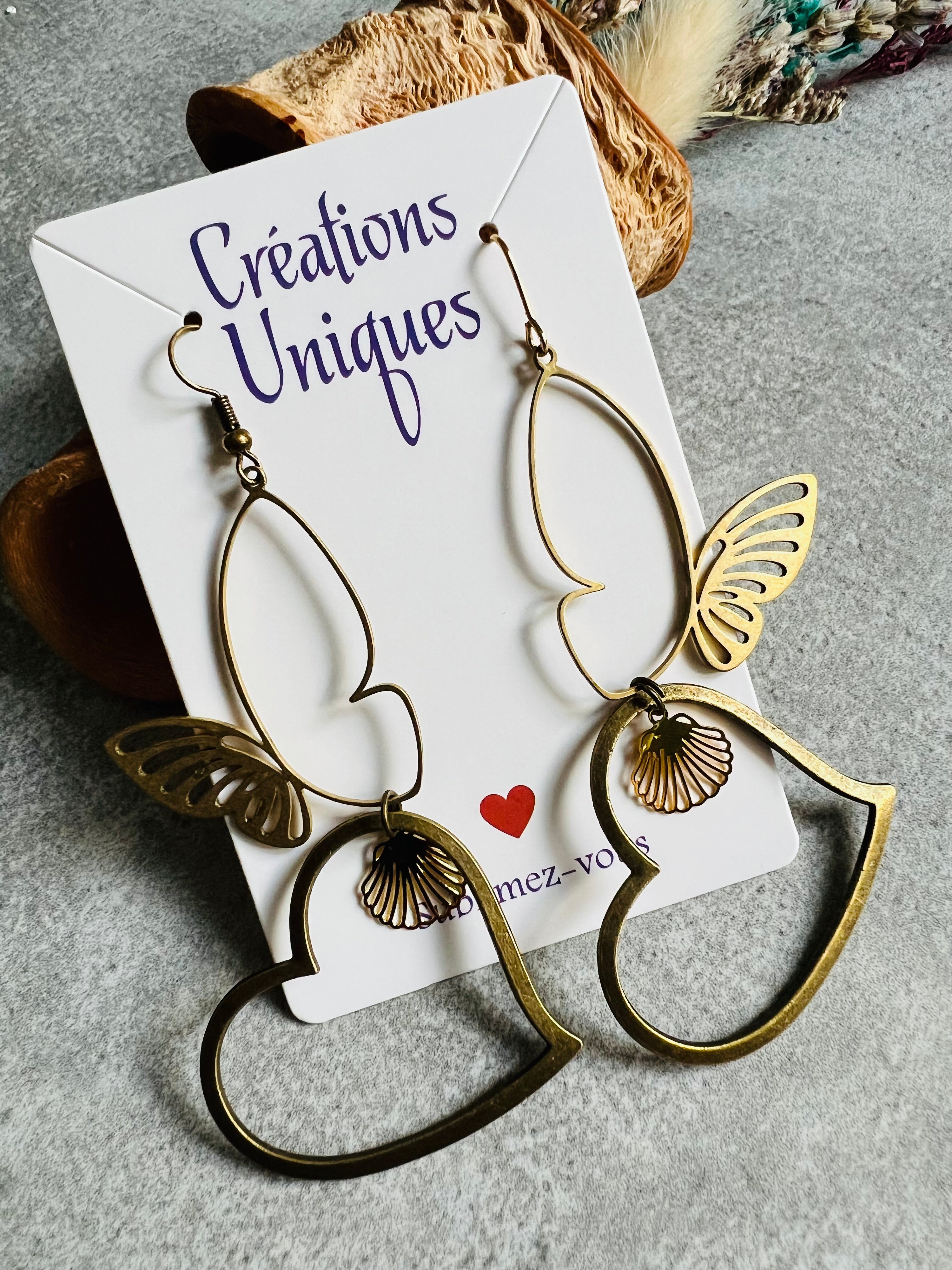 Boucles d’oreilles KAT coeurs, papillons et mini coquillages brillants - Créations Uniques