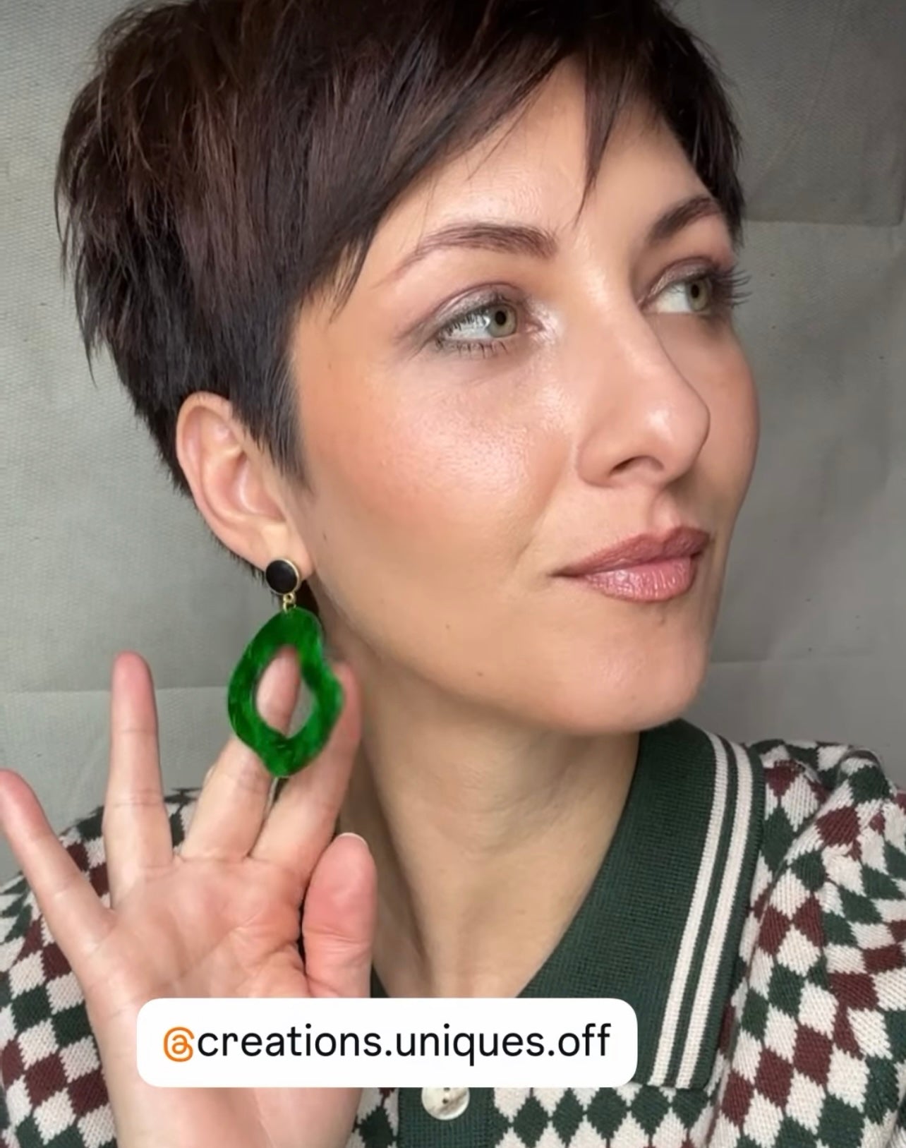Boucles d’oreilles MAGDA résine vert lumineux - Créations Uniques