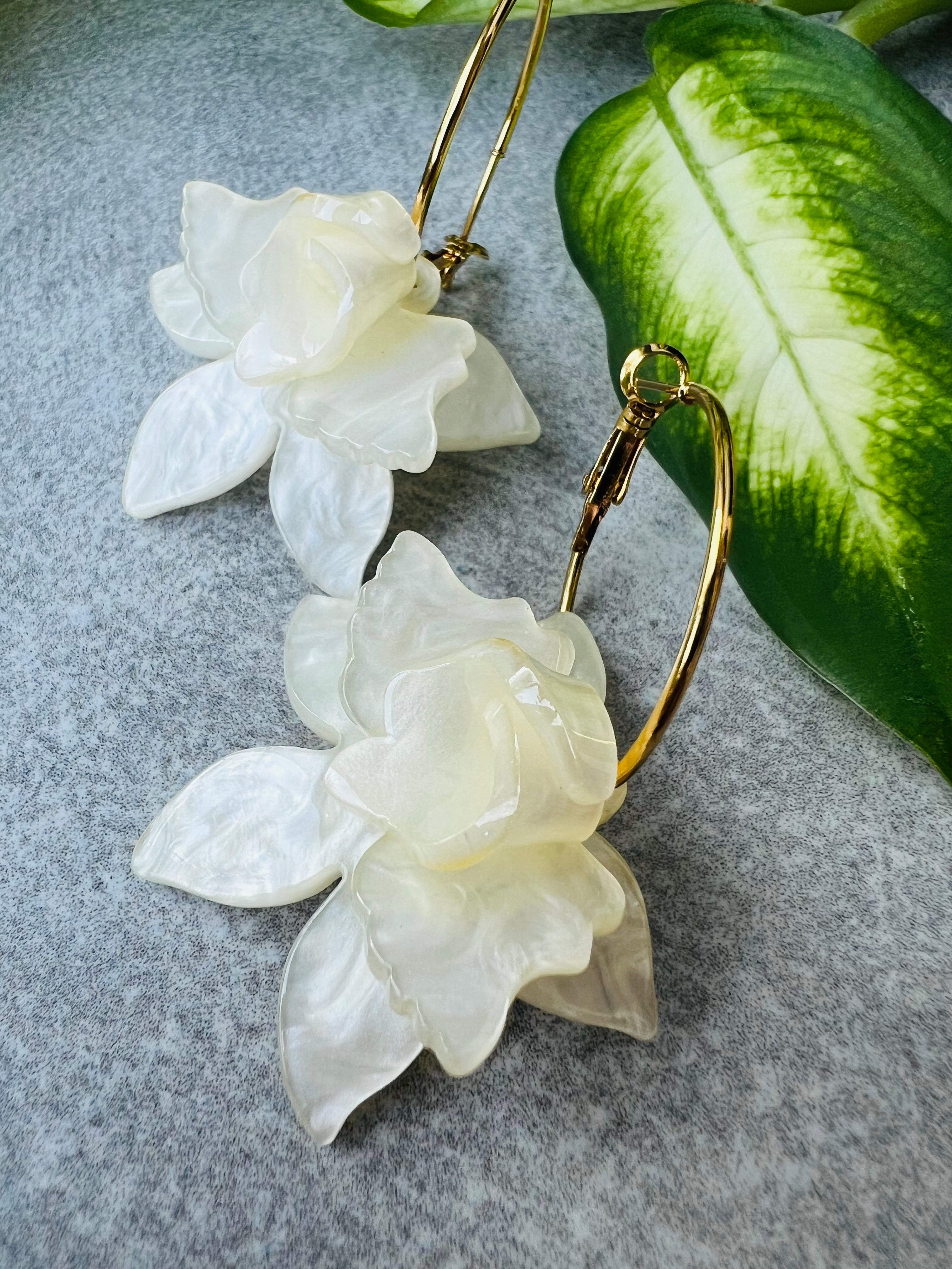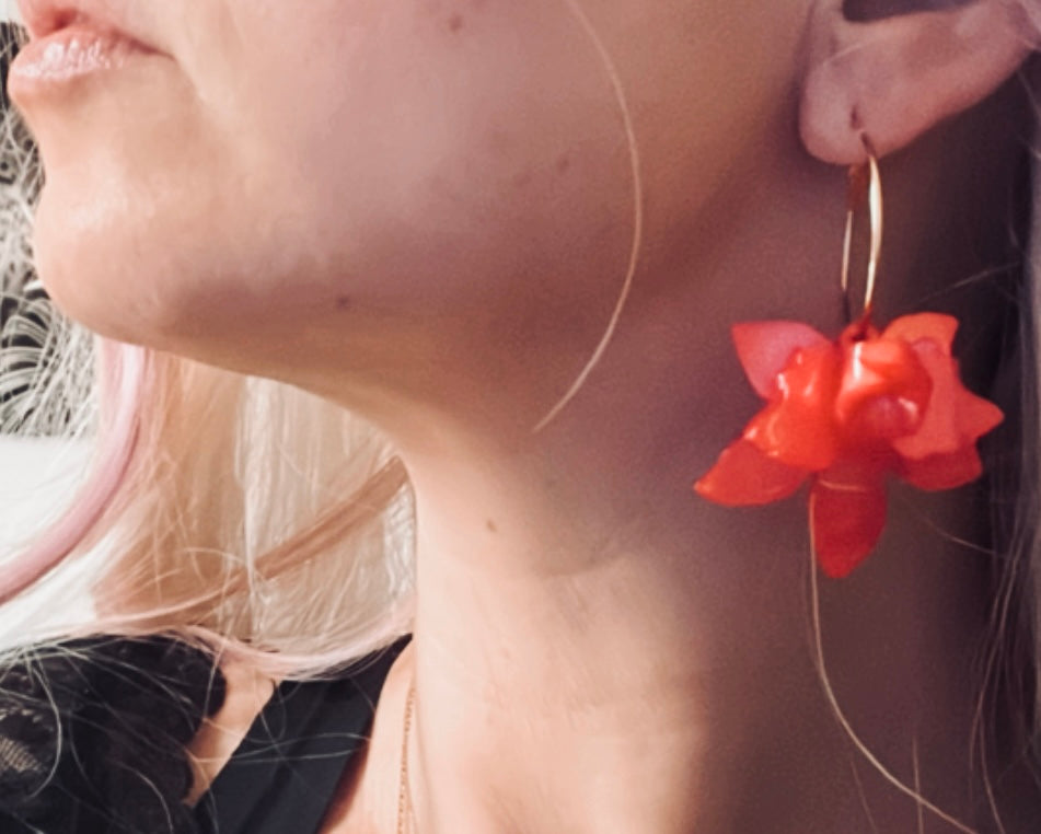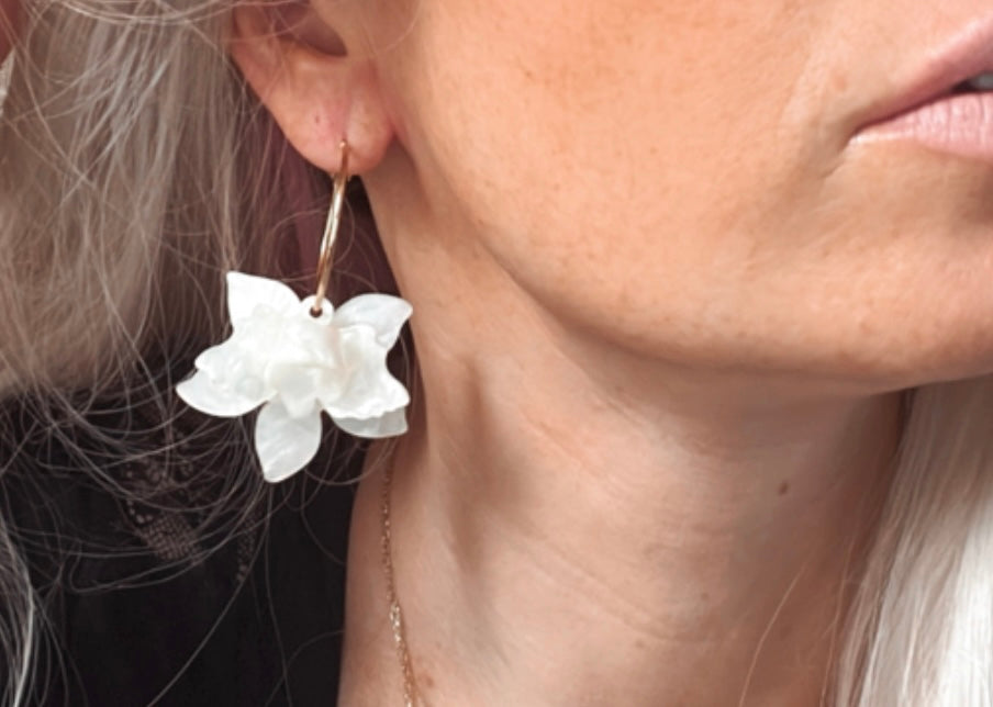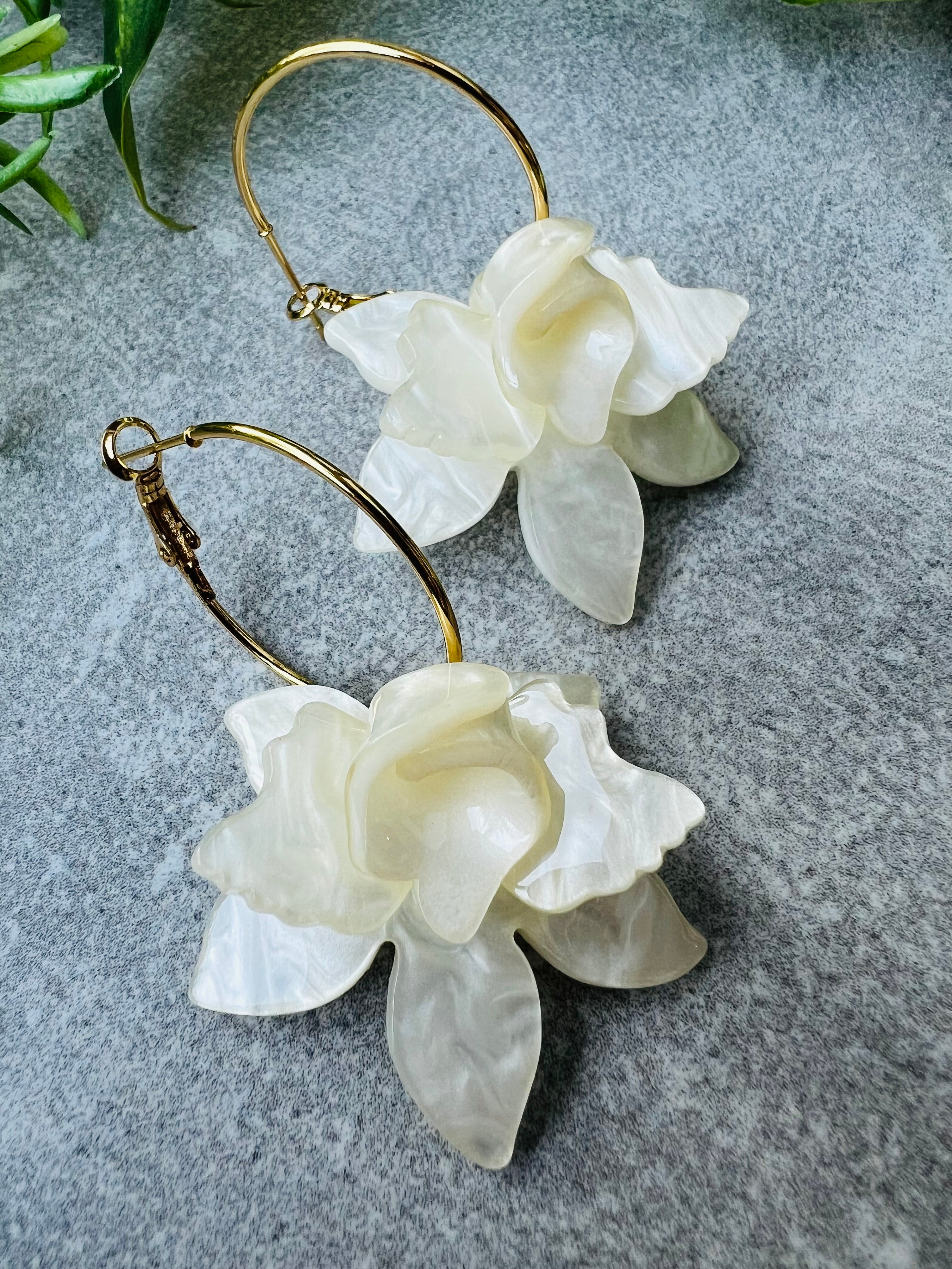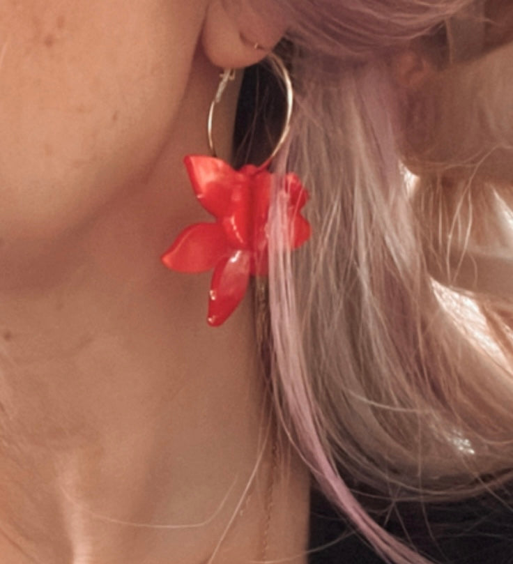 Boucles d’oreilles ADALINE creoles dorées et fleurs résine