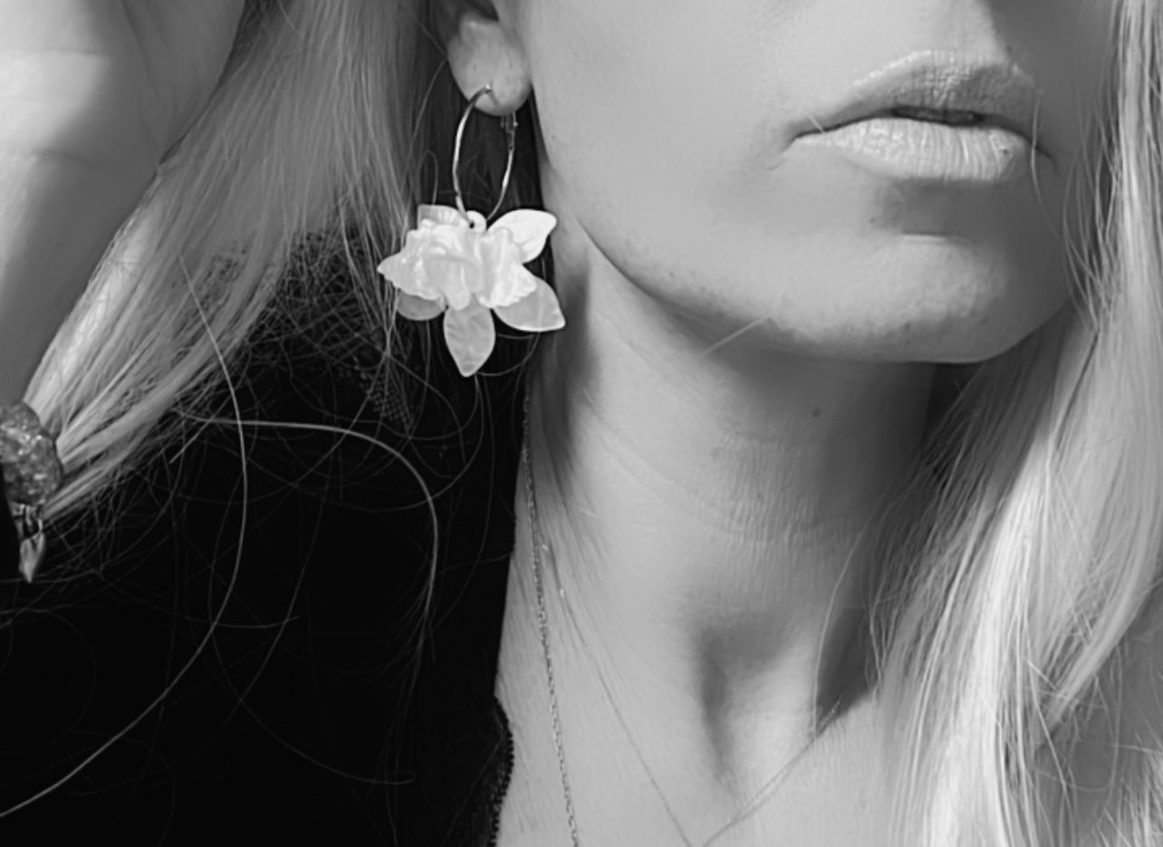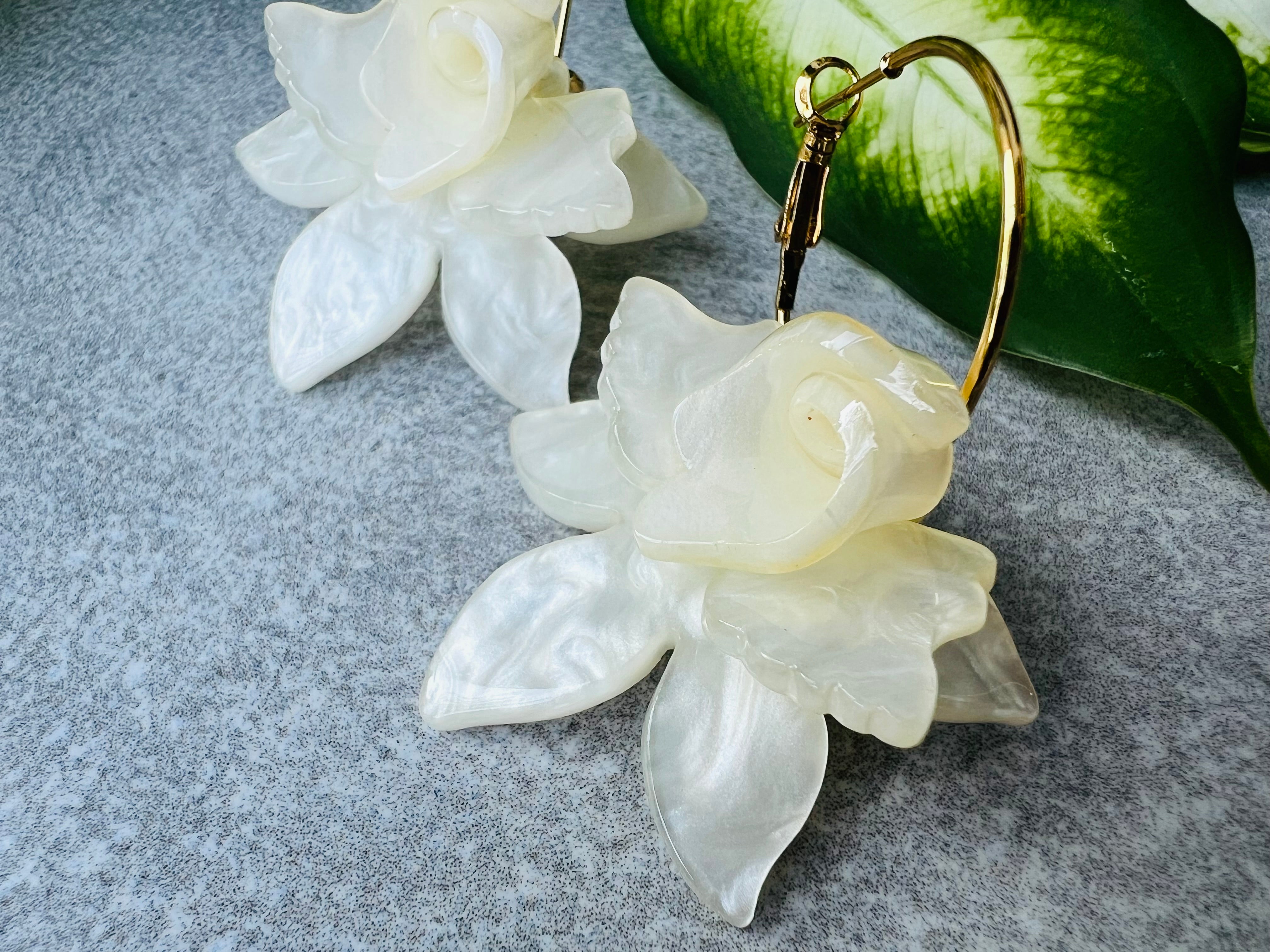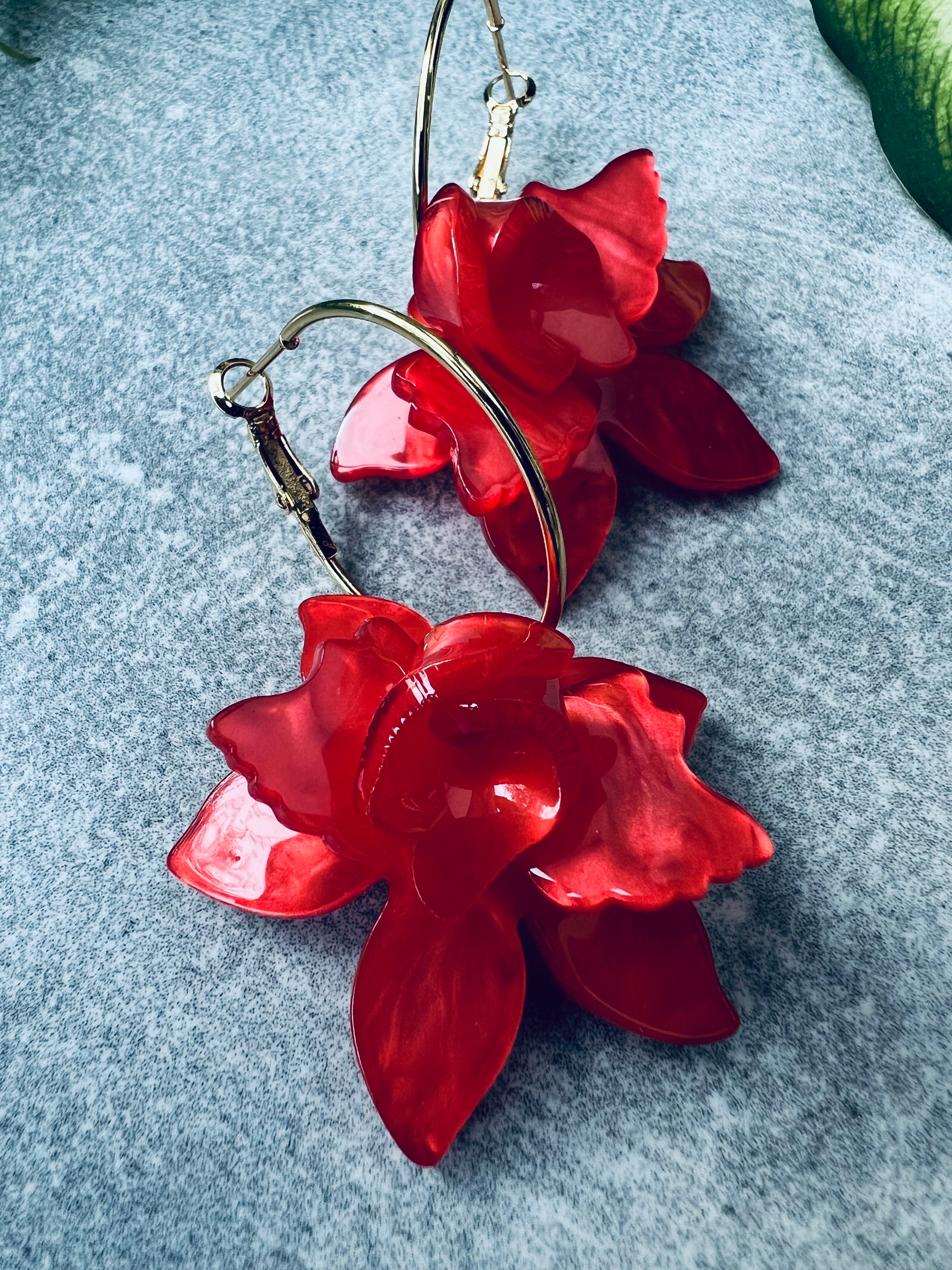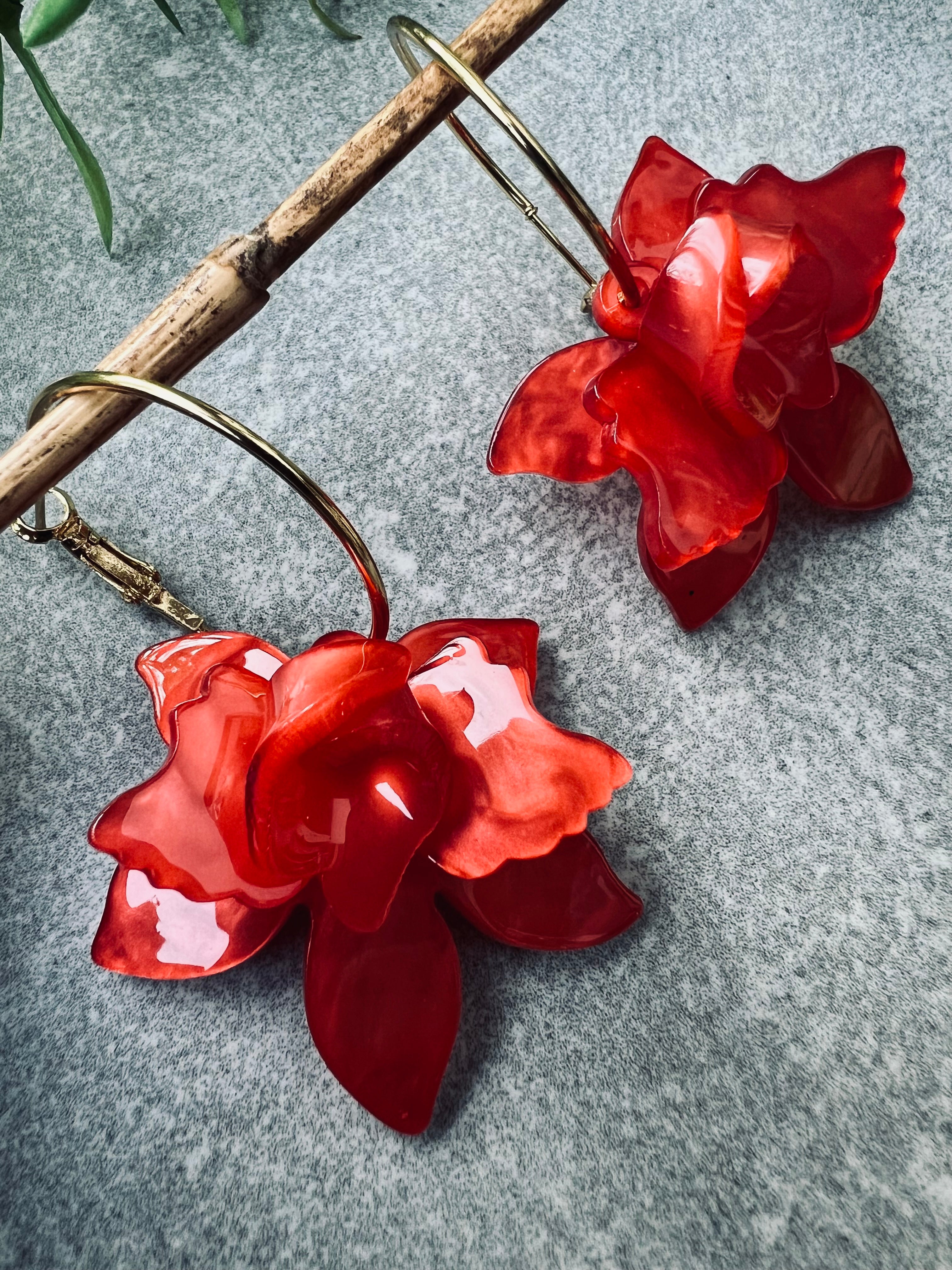 Boucles d’oreilles ADALINE creoles dorées et fleurs résine