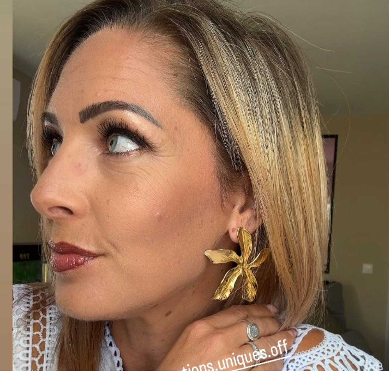 Boucles d’oreilles asymétriques dorées DOROTHY fleurs de nacre - Créations Uniques