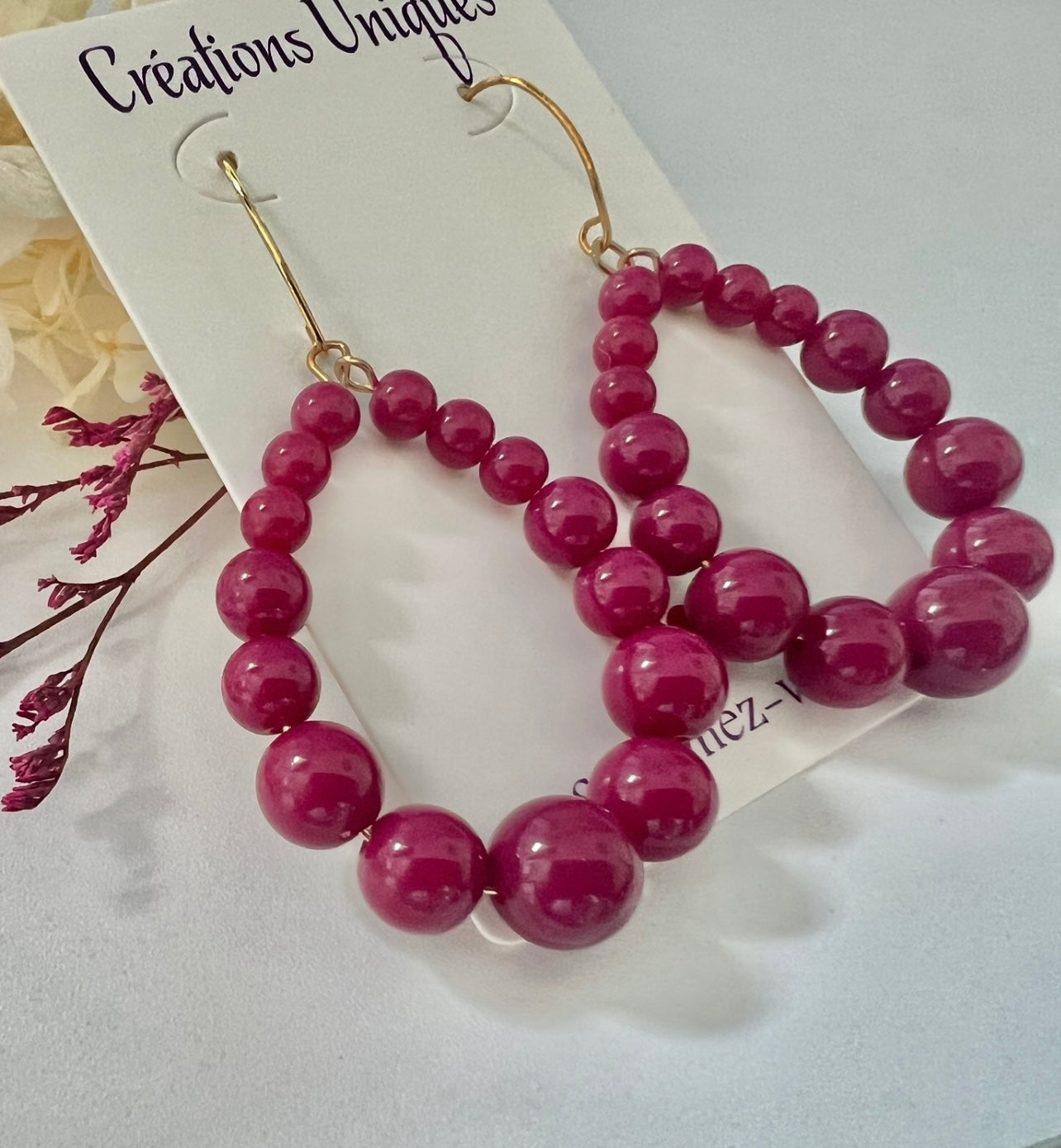 Boucles d’oreilles JANE perles aubergine - Créations Uniques
