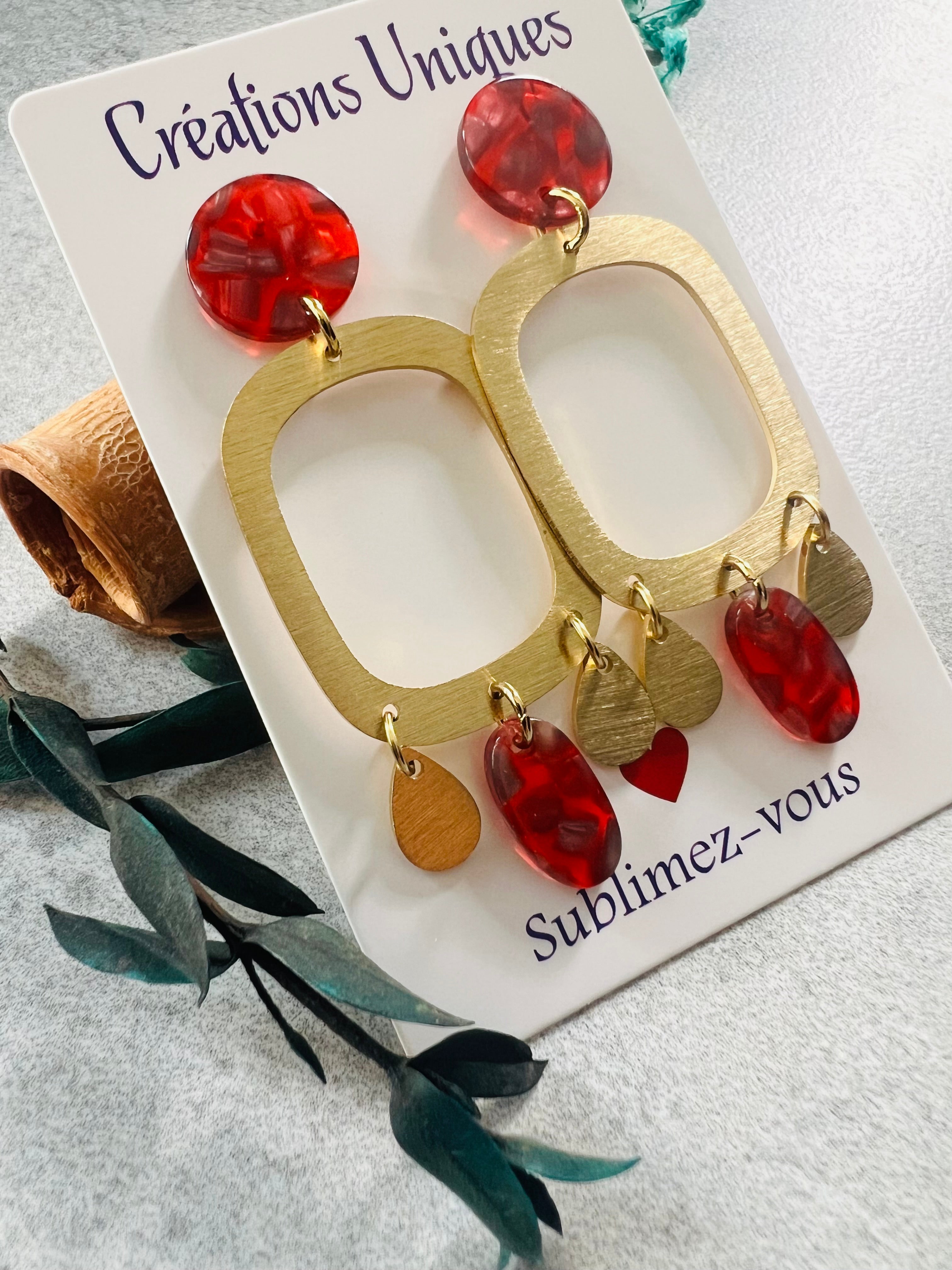 Boucles d’oreilles pendantes LORA rectangles et pampilles