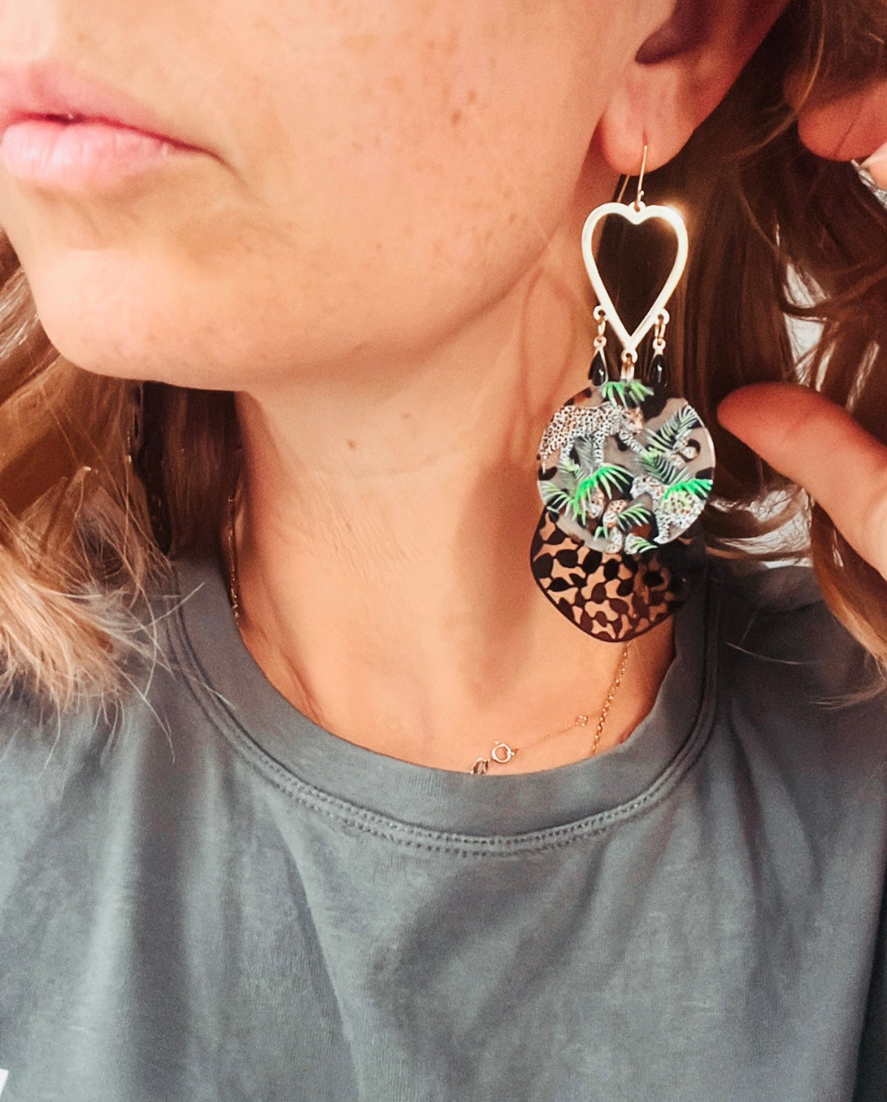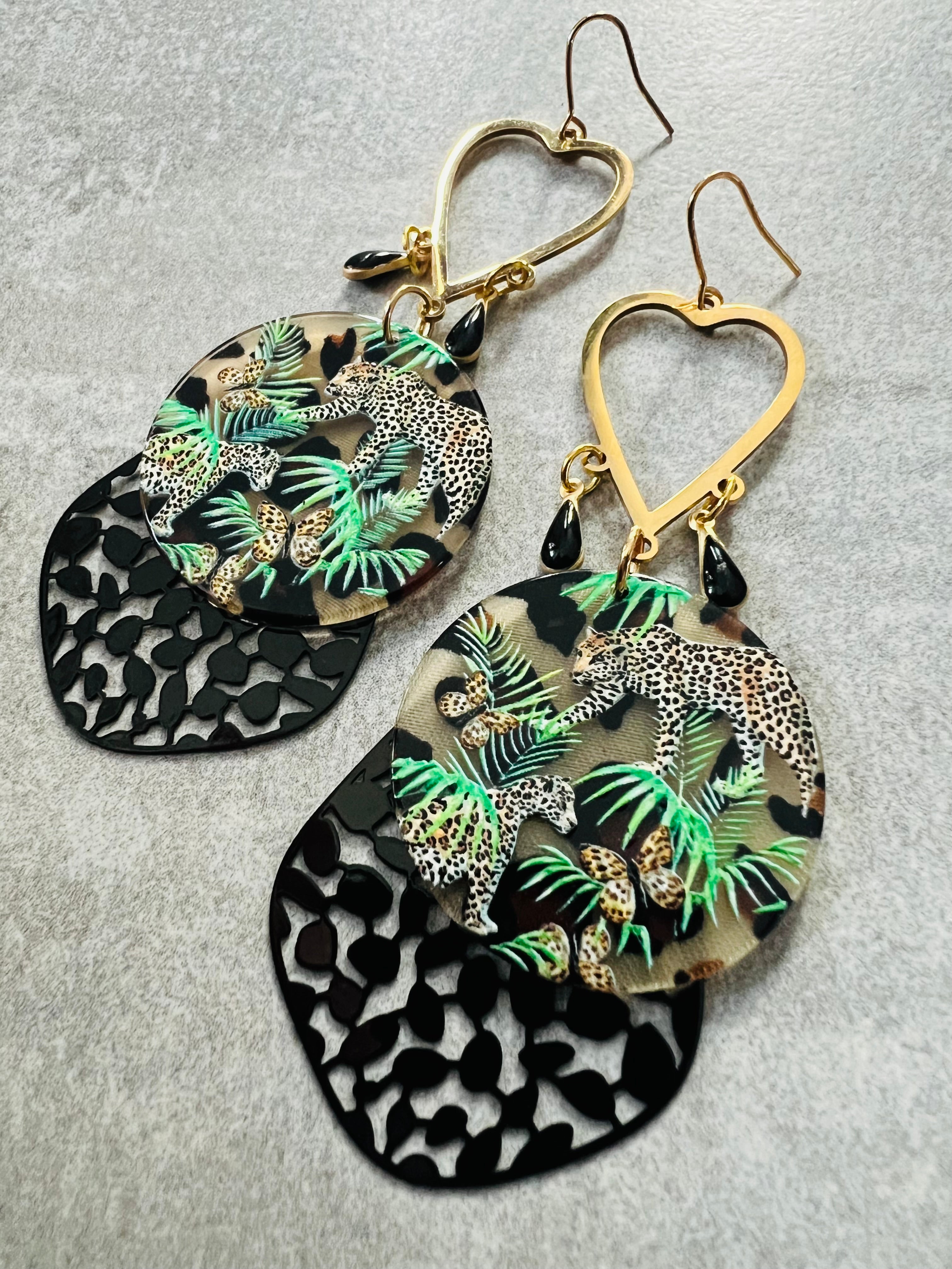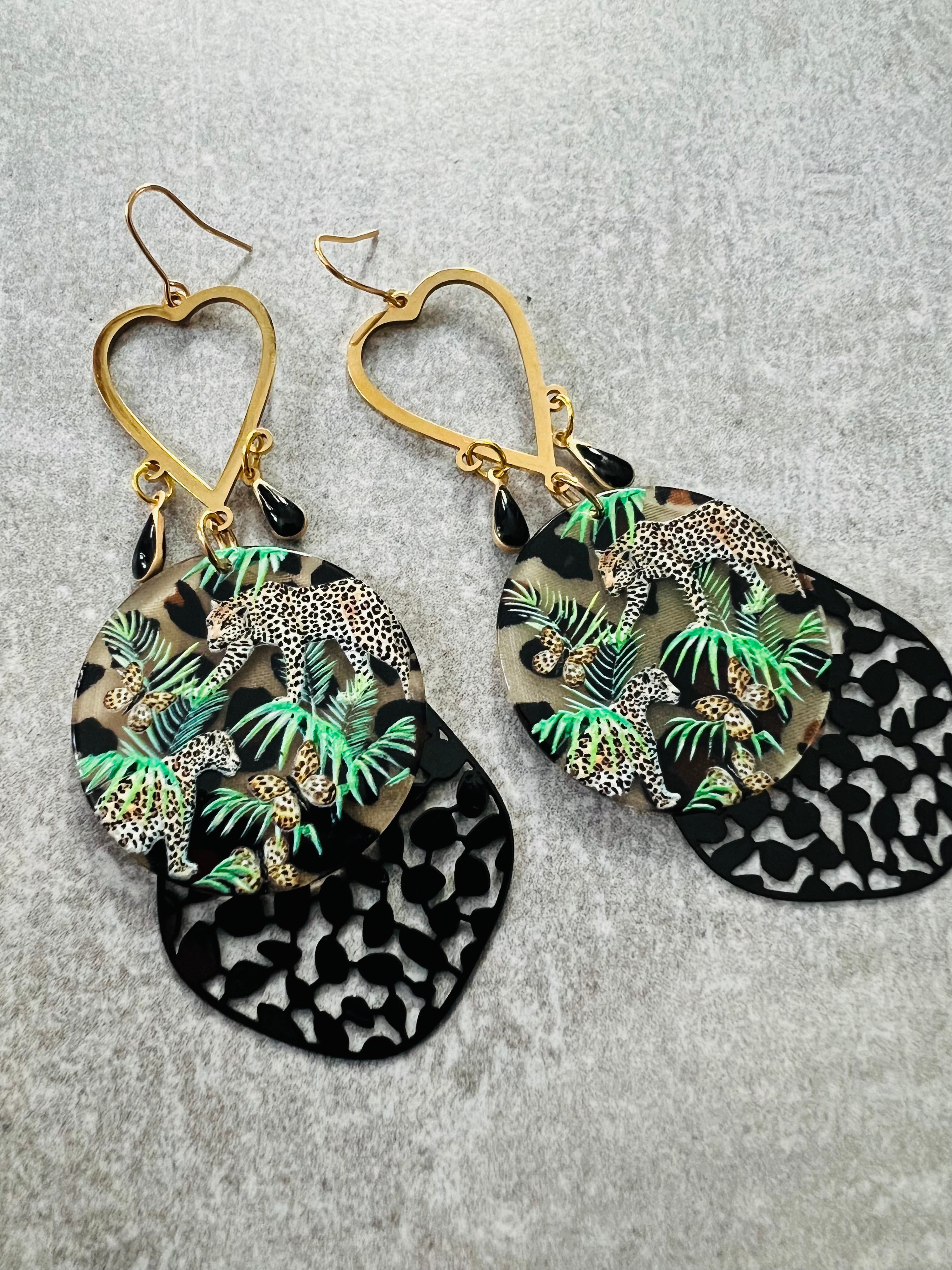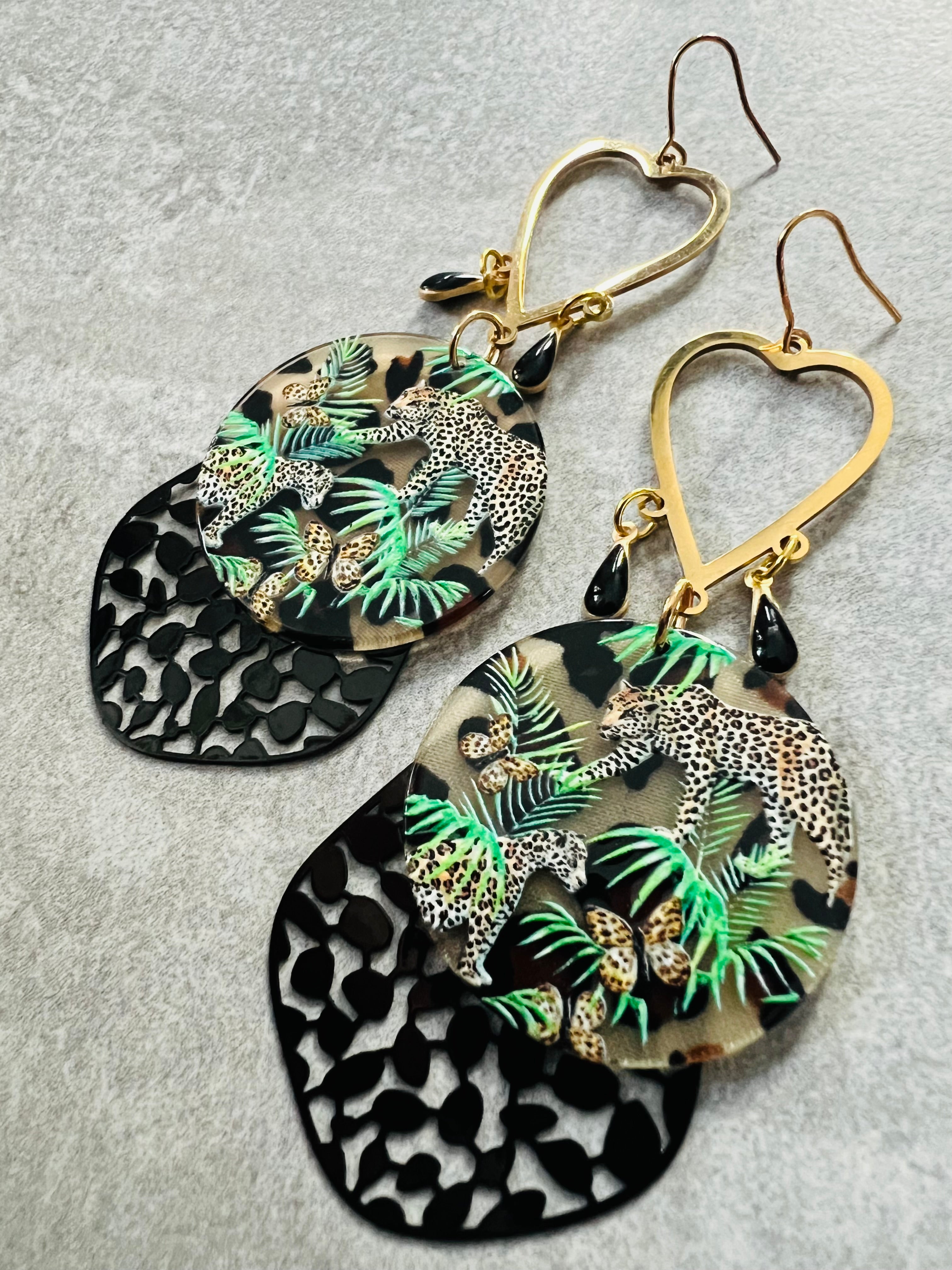 Boucles d’oreilles ALLIE résine motif panthère - Créations Uniques