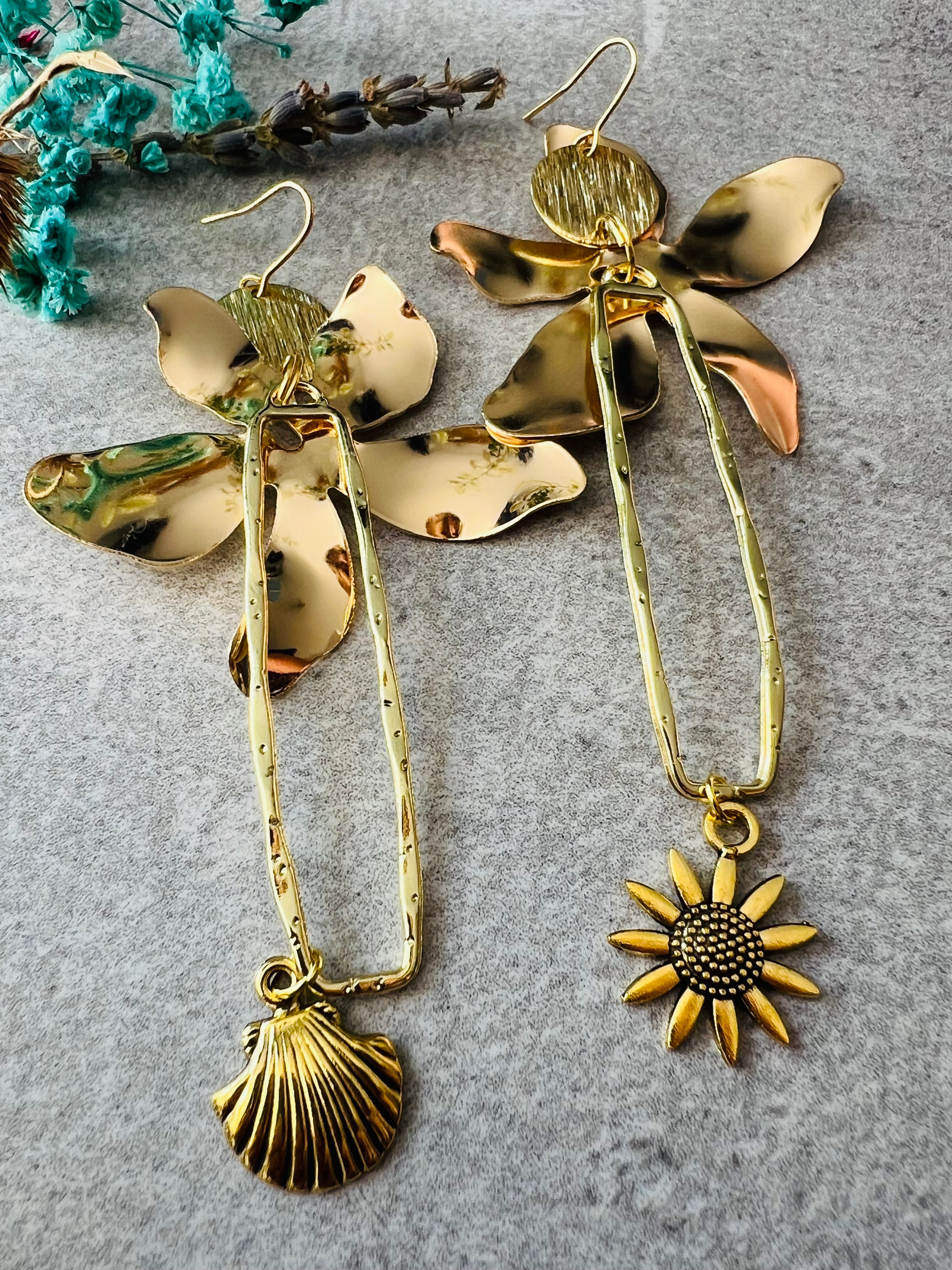 Boucles d’oreilles CECILIANNE asymétriques et dorées - Créations Uniques