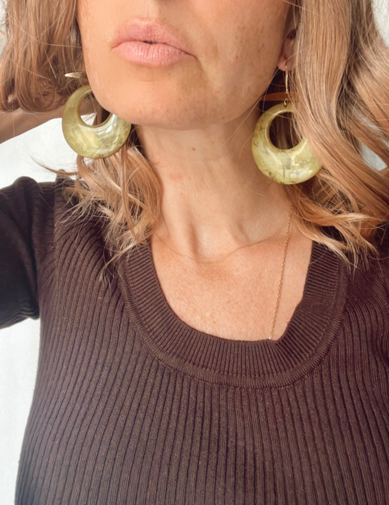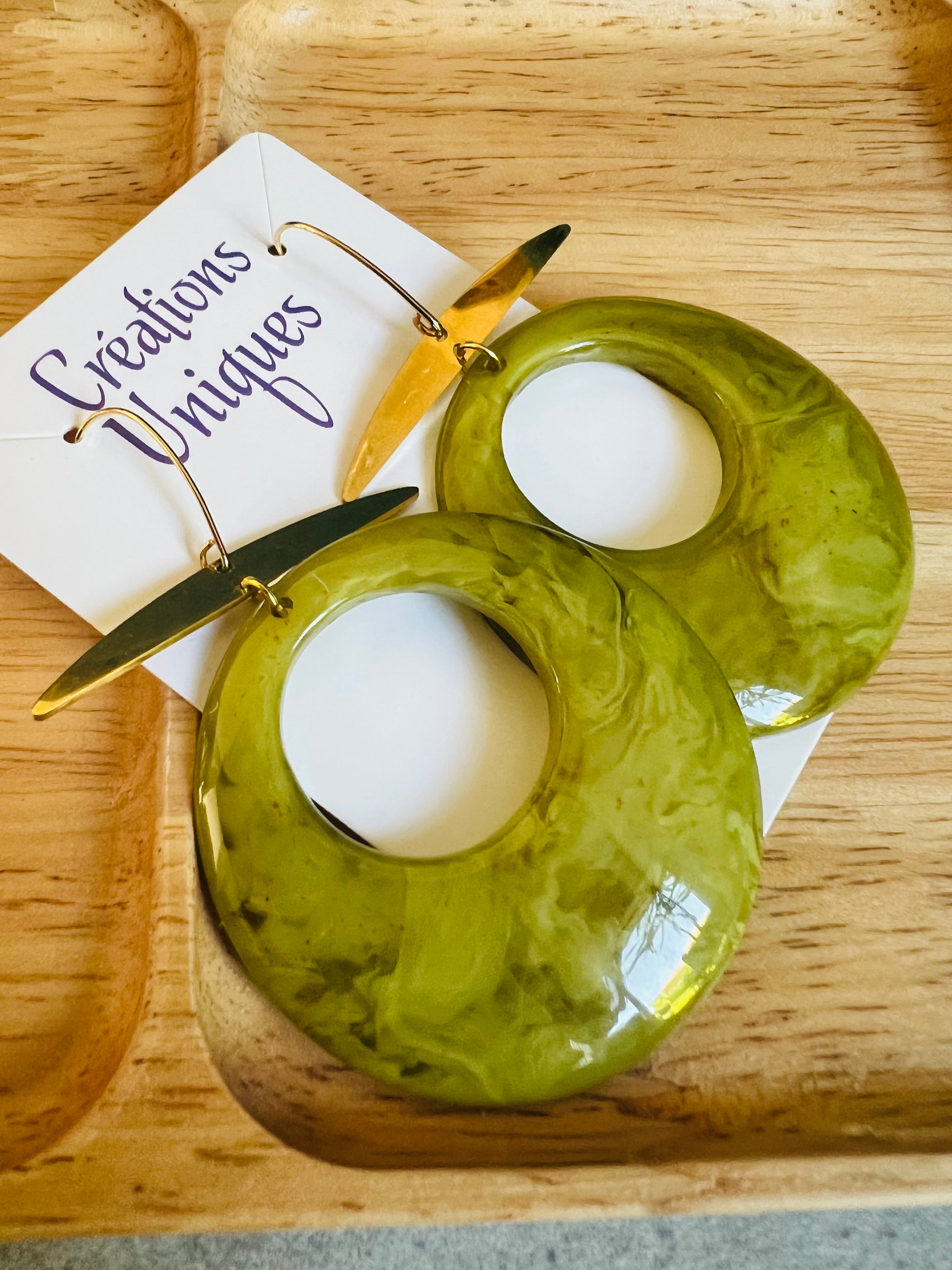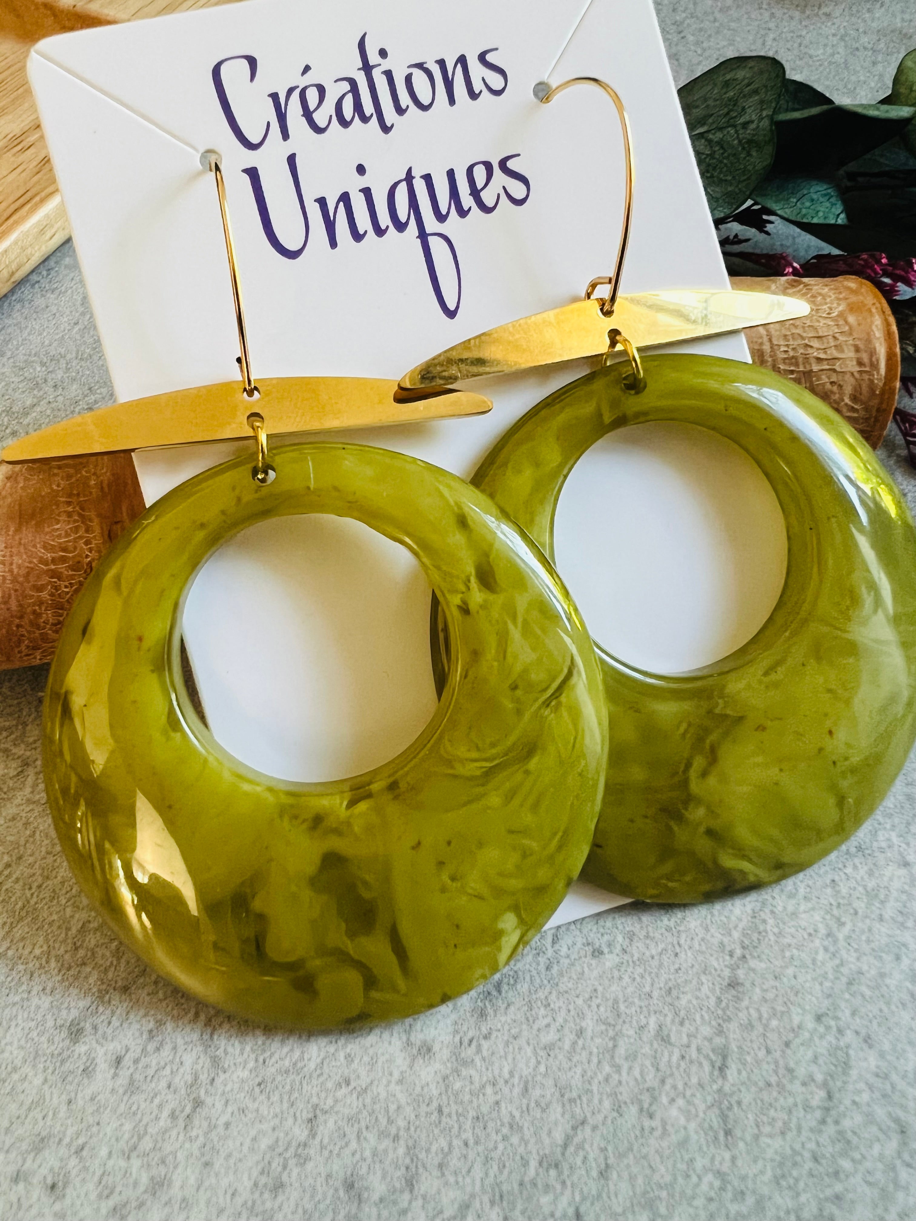 Boucles d’oreilles IMANI résine vert olive - Créations Uniques