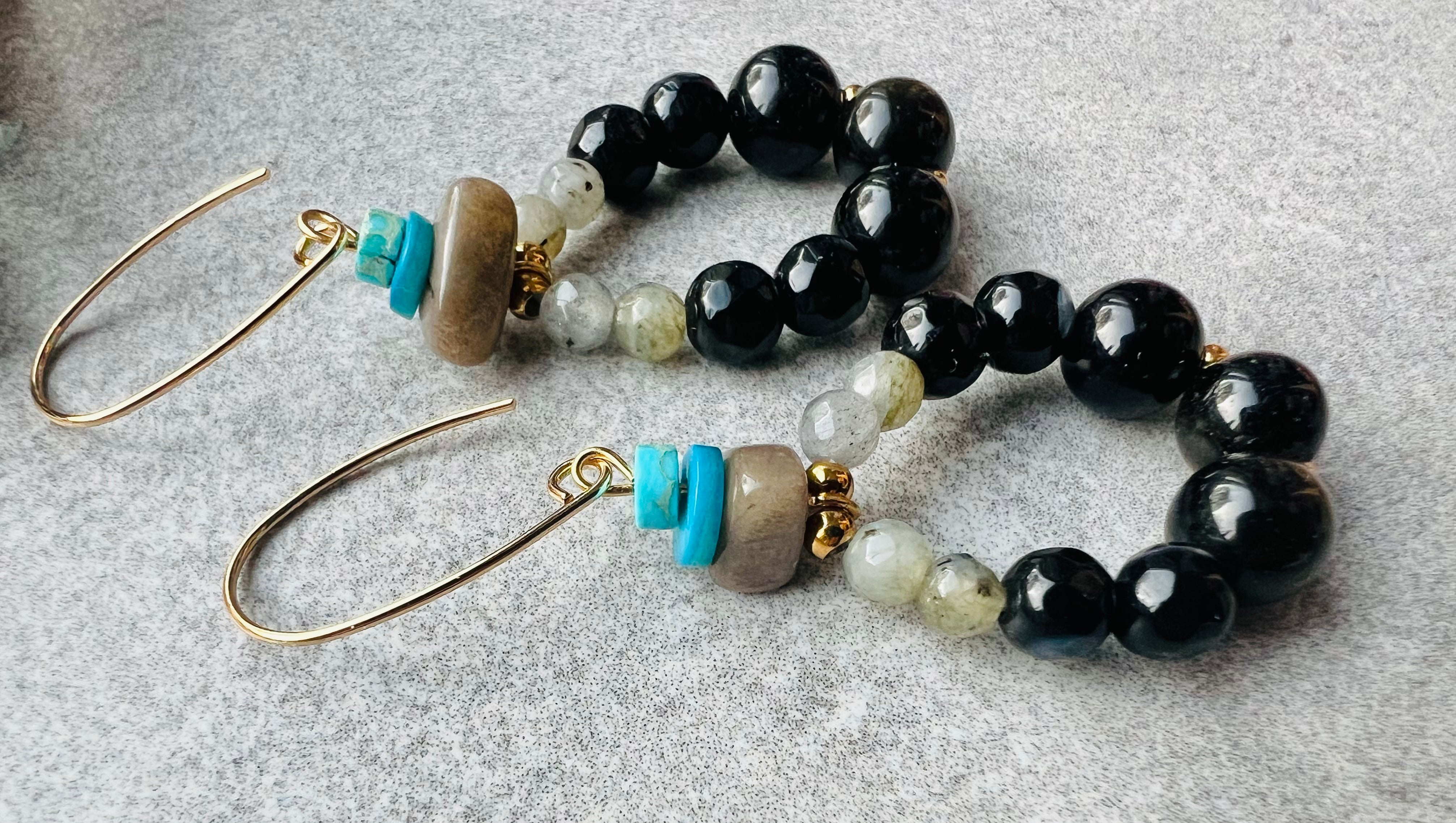 - Perles noires et touche de turquoise.