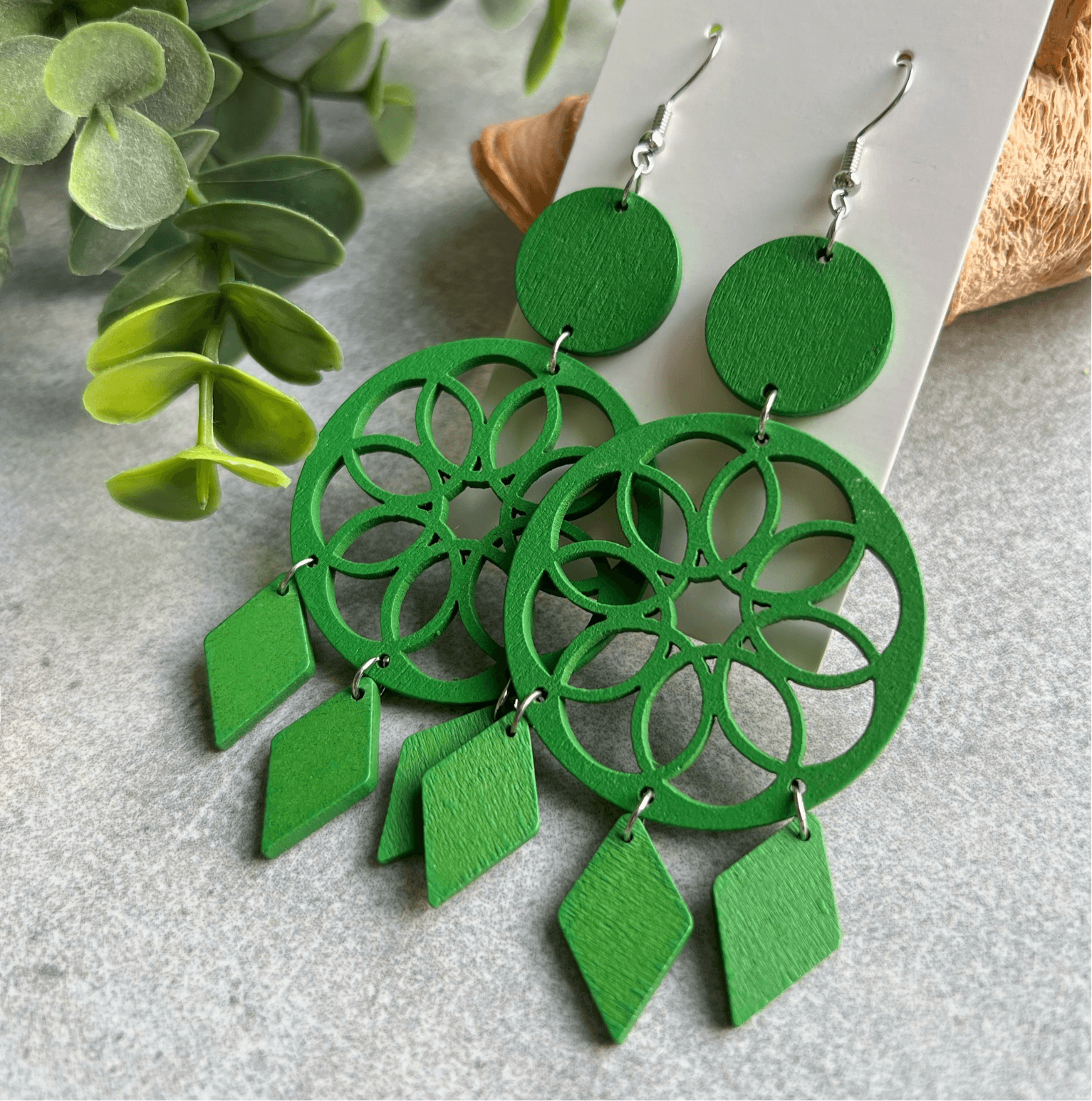 Boucles d’oreilles LILOU attrape-rêves bois vert