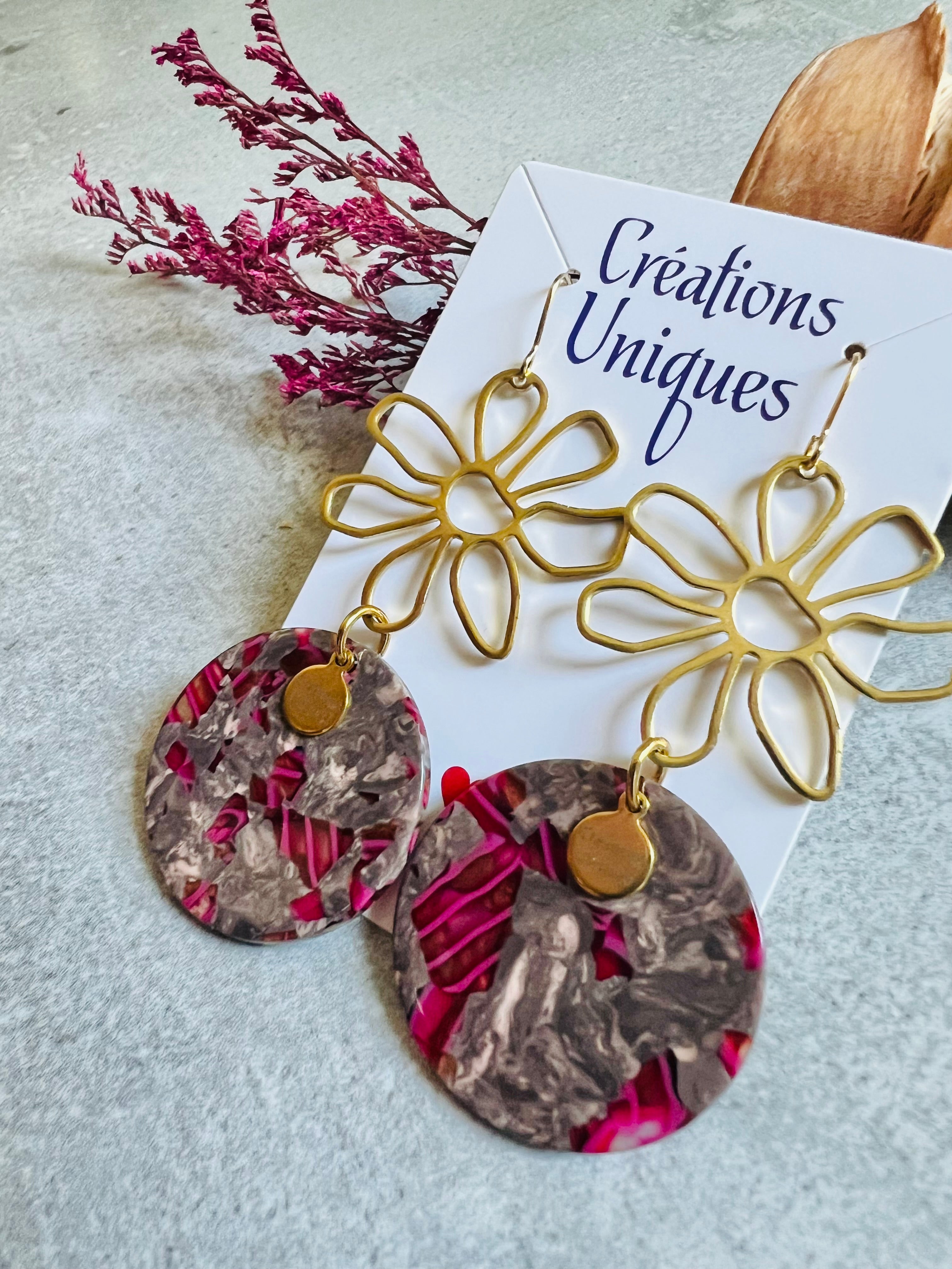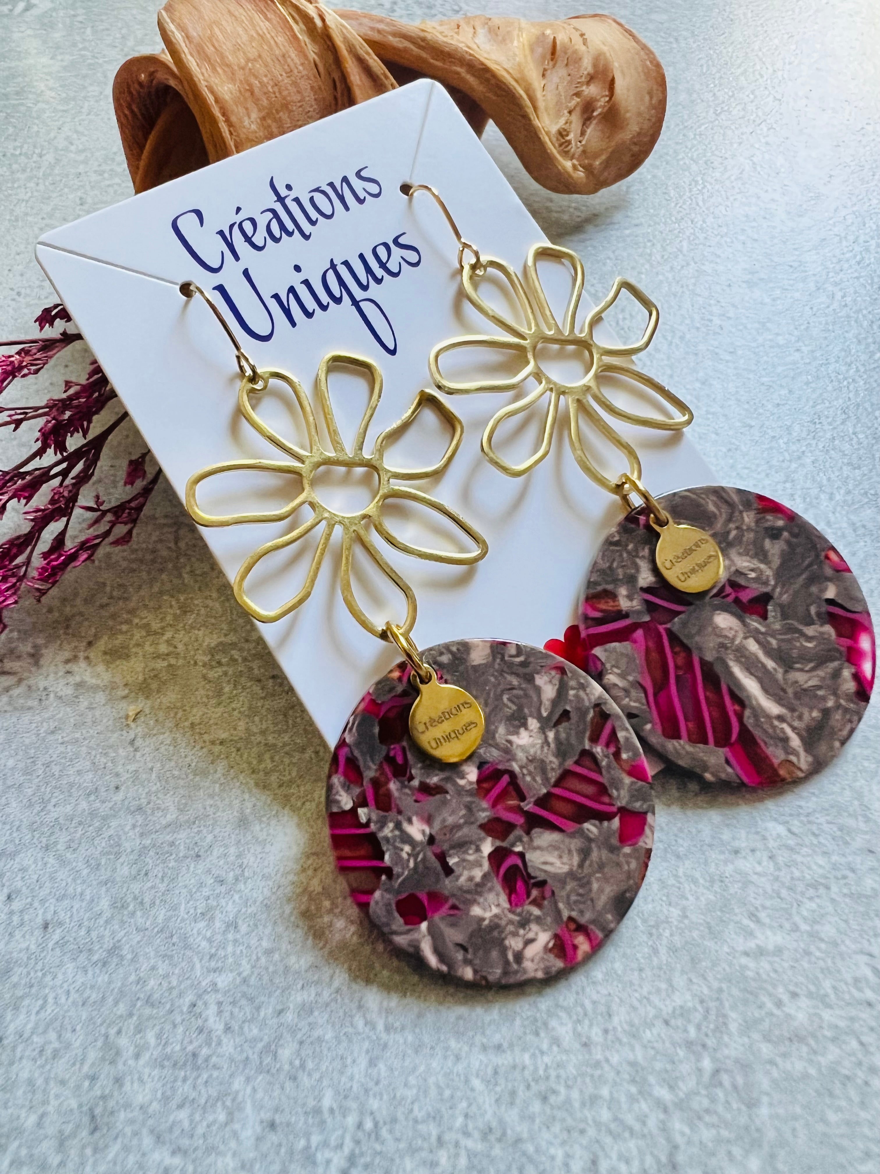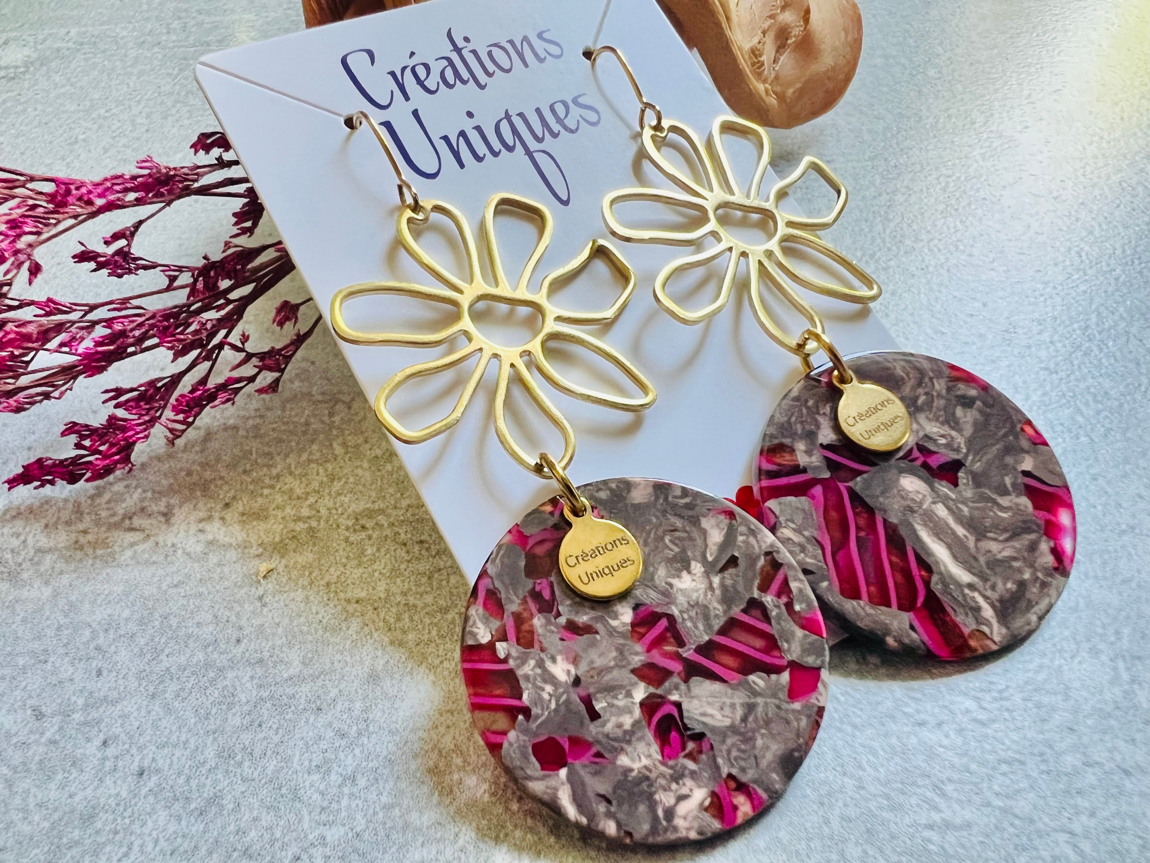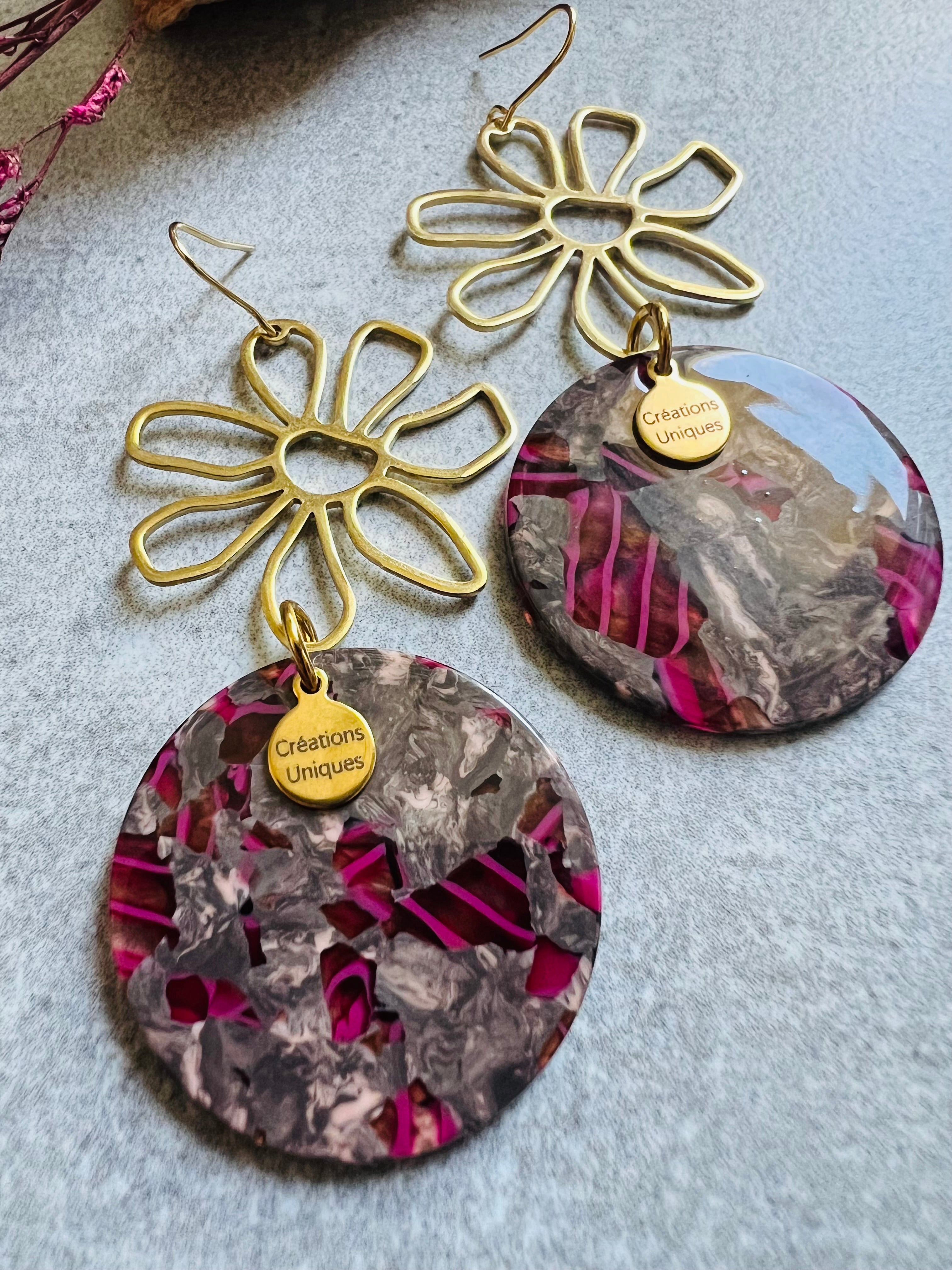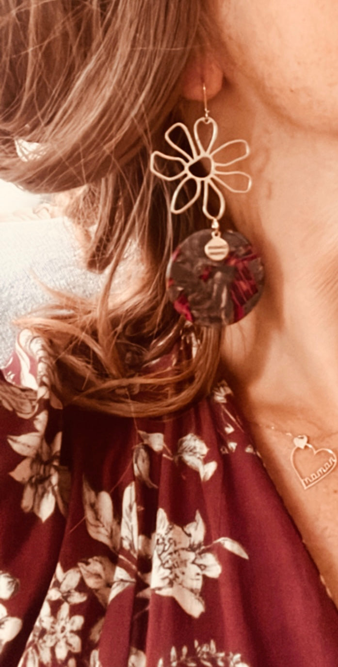 Boucles d’oreilles NADIA résine bordeaux - Créations Uniques