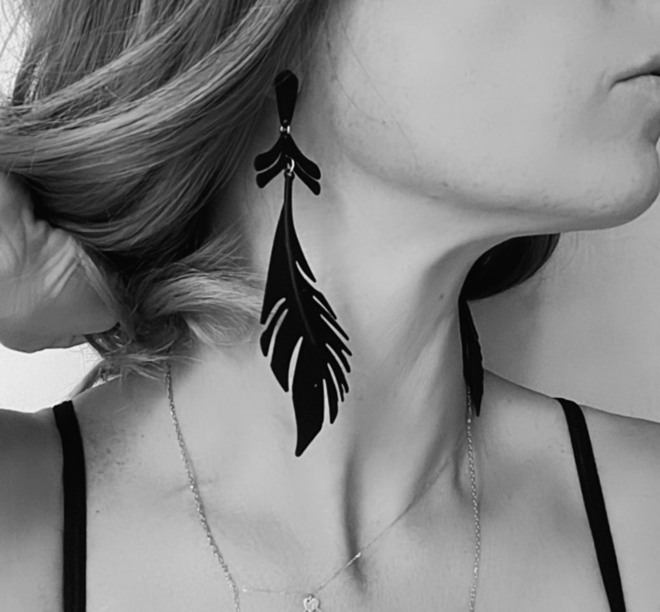 Boucles d’oreilles ONELAINE longues feuilles noires - Créations Uniques