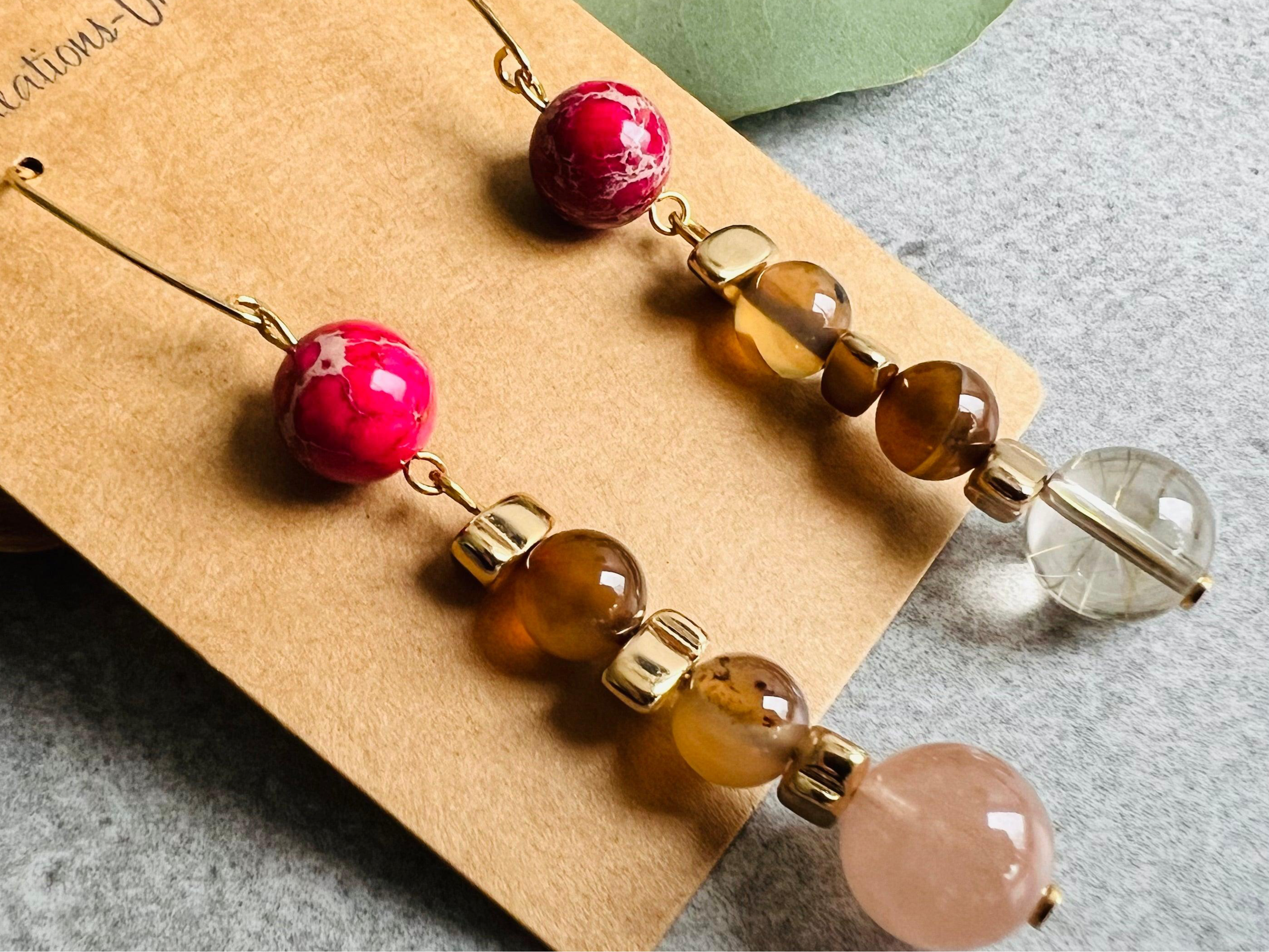 Boucles d’oreilles TERRY perles touche framboise - Créations Uniques