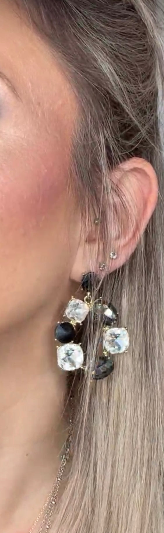 Boucles d’oreilles VALERIANNE style brillant noir et blanc