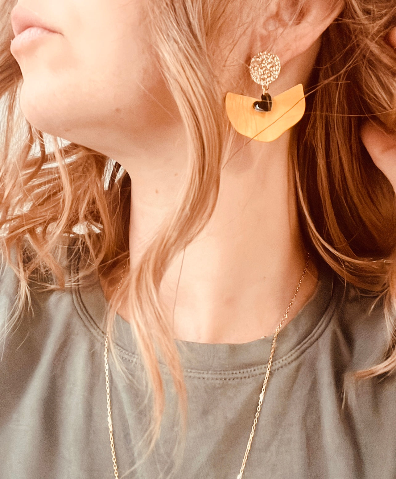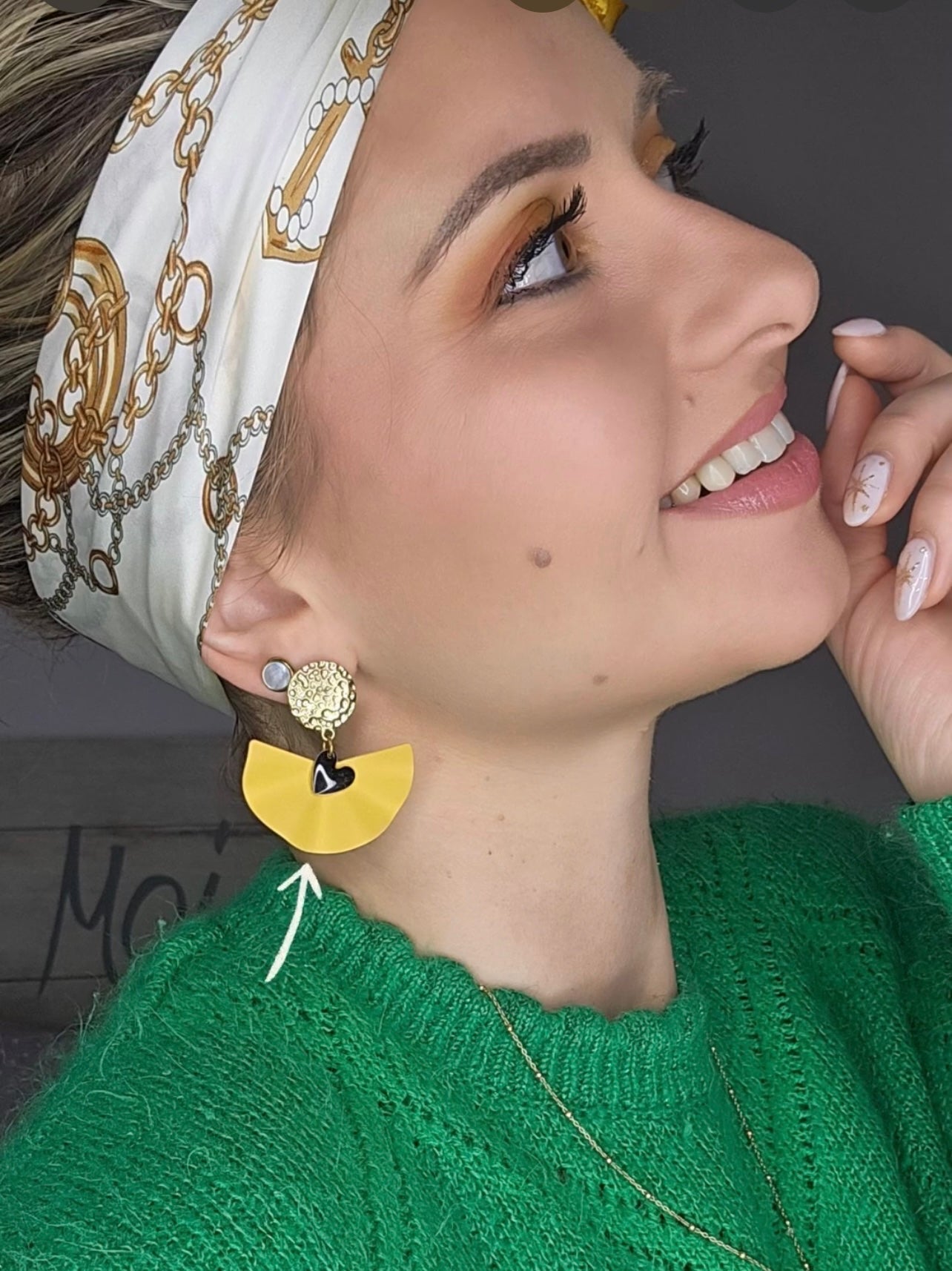 Boucles d’oreilles WENDY éventail moutarde - Créations Uniques