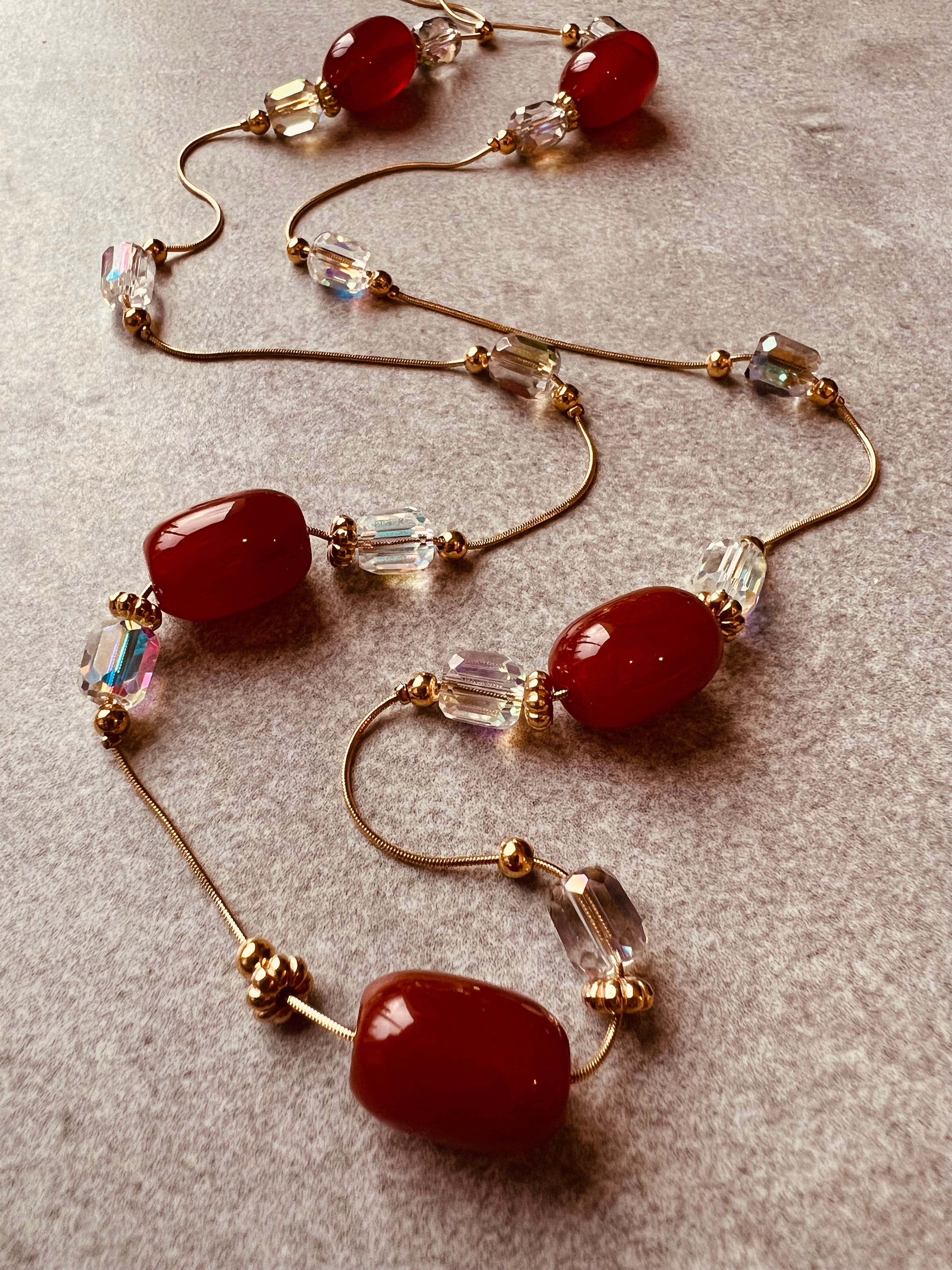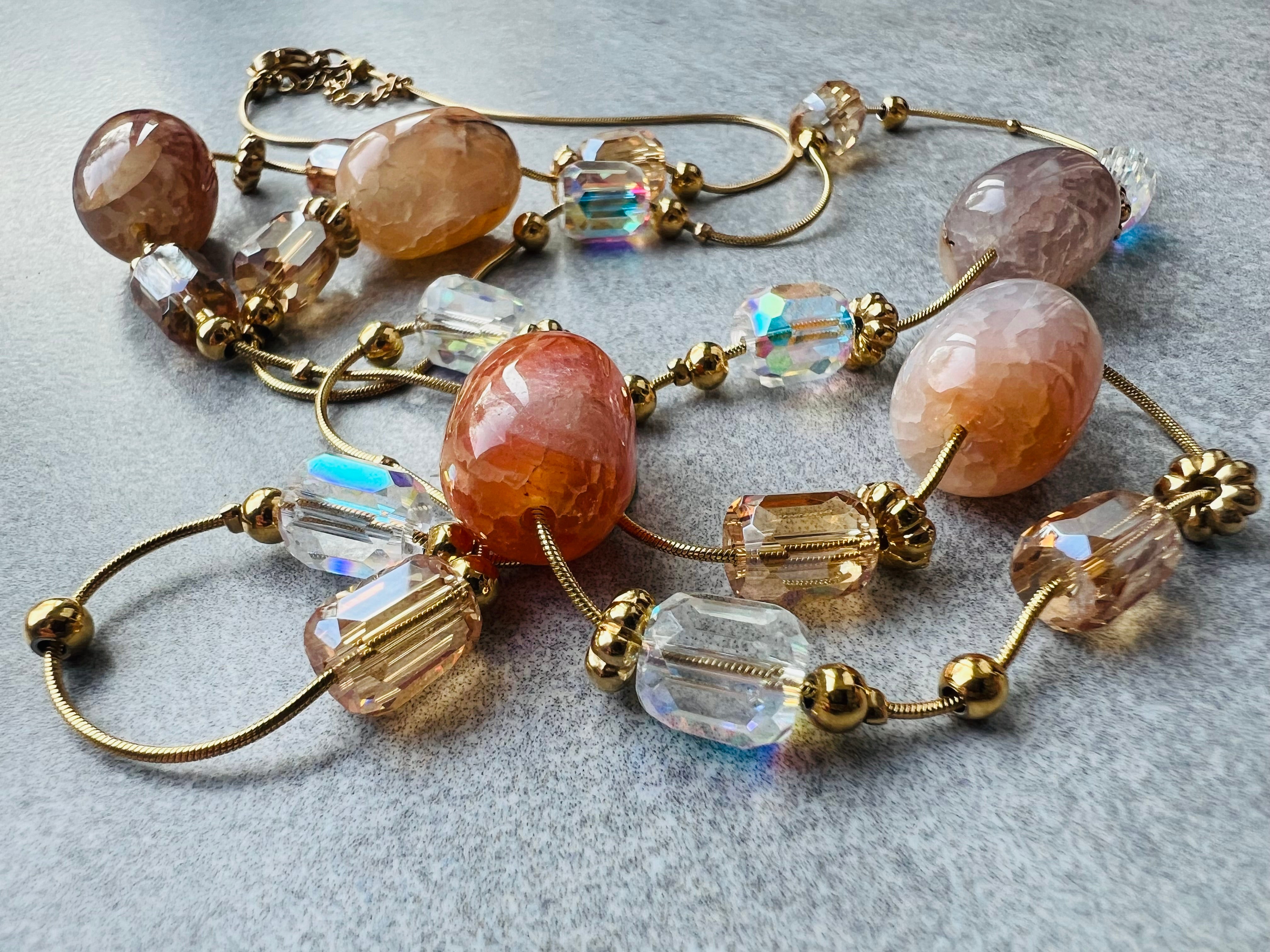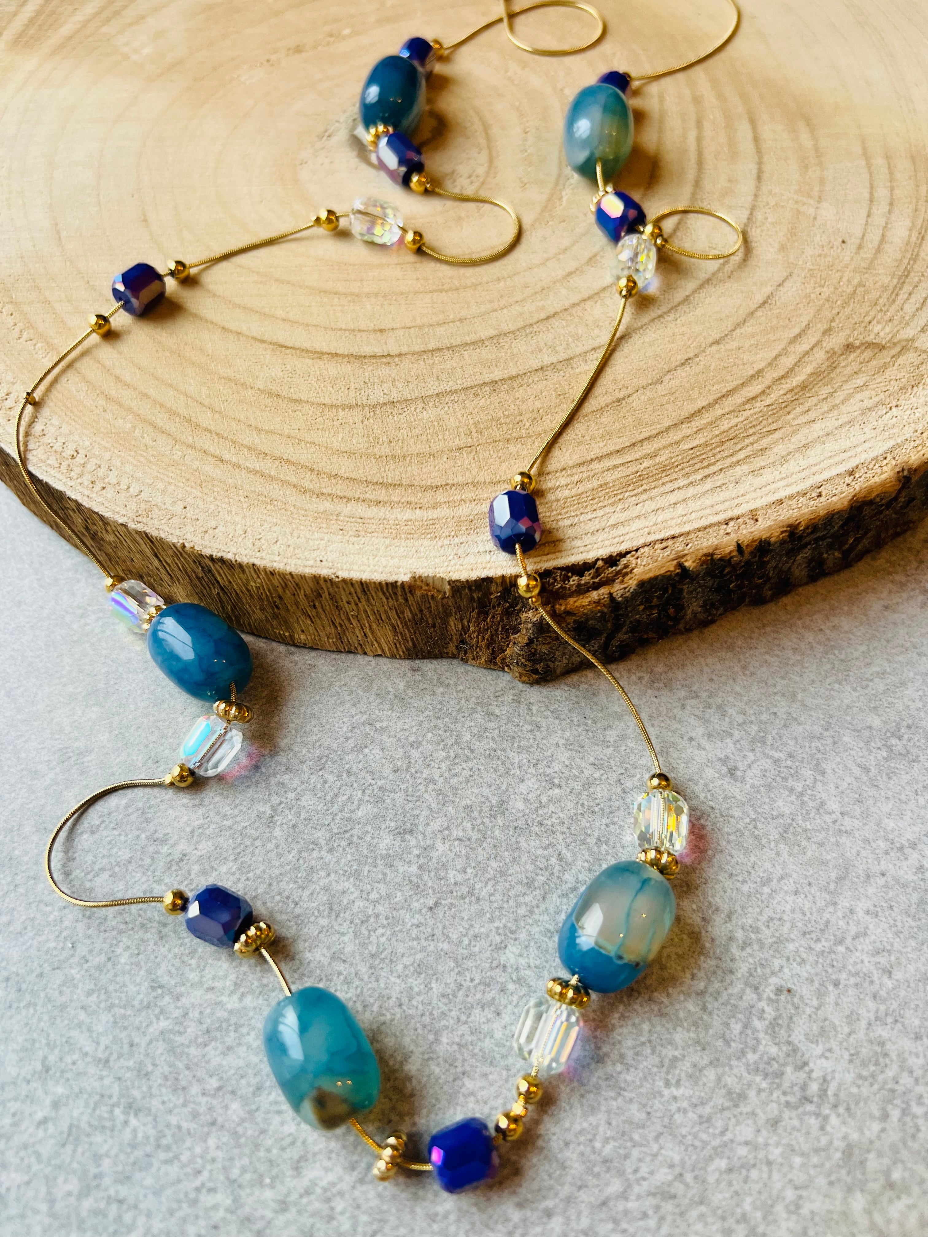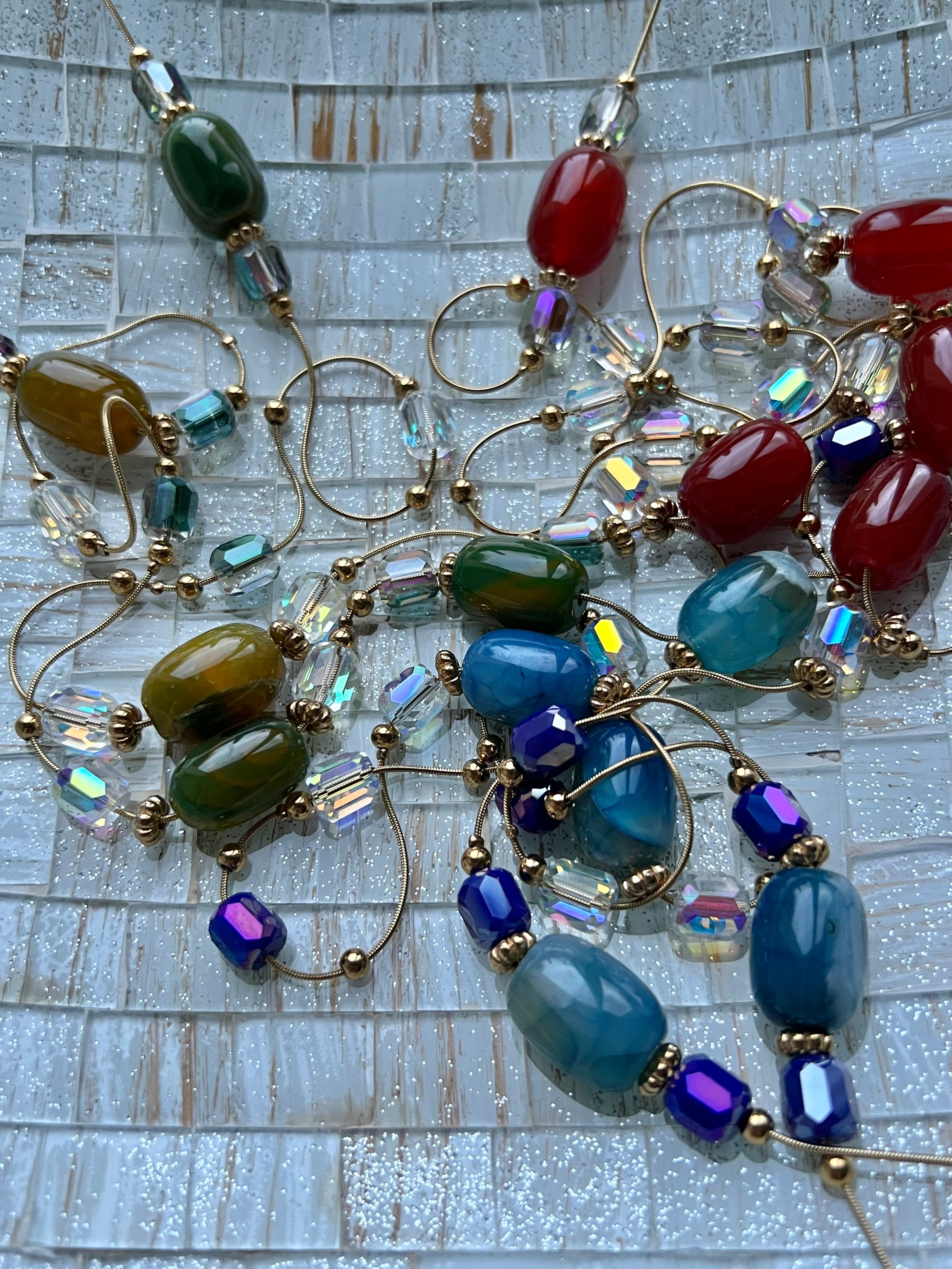 Collier HELENA perles rose Terracotta, Marine, vert olive et bordeaux