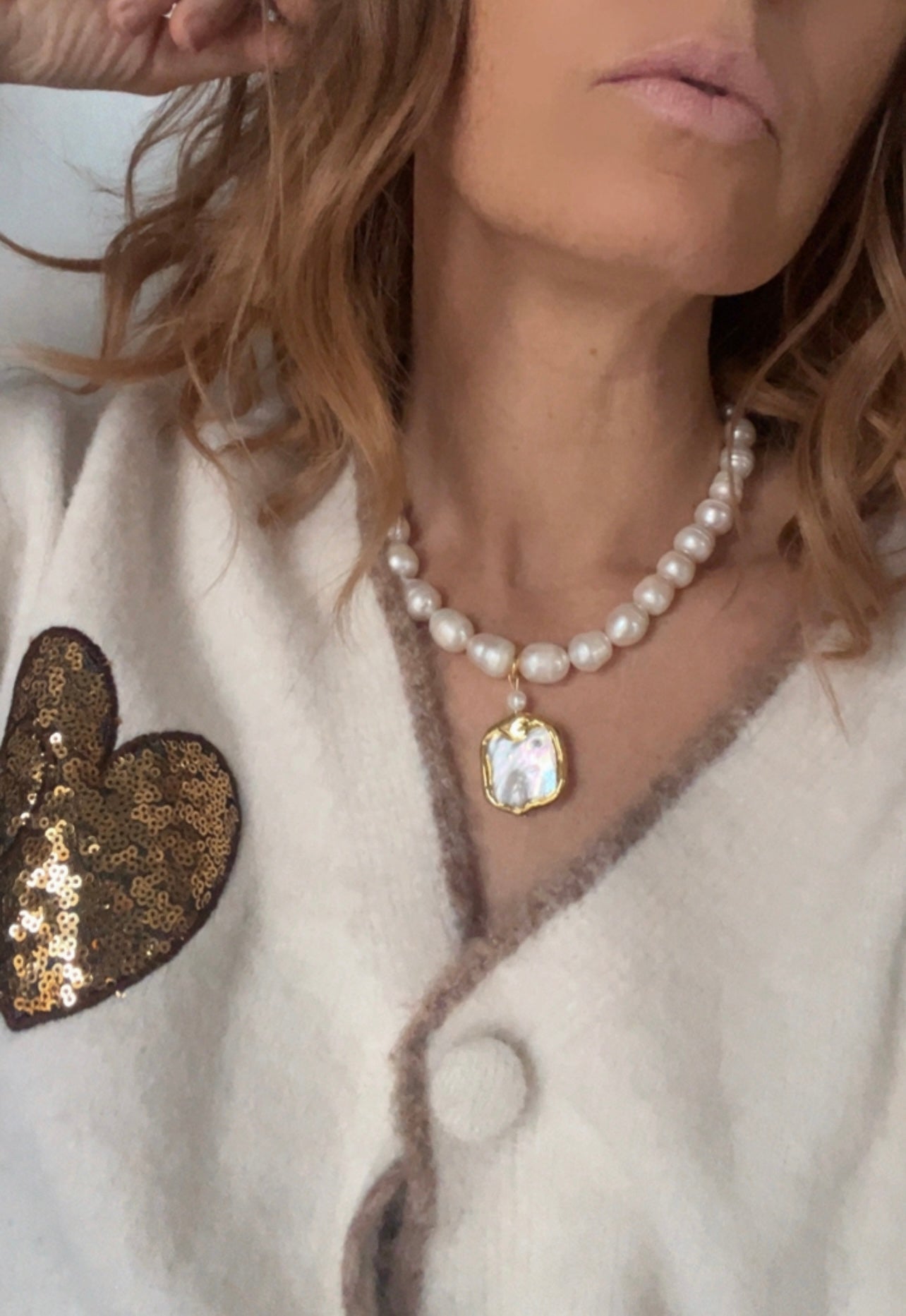 N74611 Collier perles et pendentif cœur - Karine Sultan