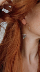Boucles d’oreilles créoles argentées mini pompons et croix, style minimaliste - Créations Uniques