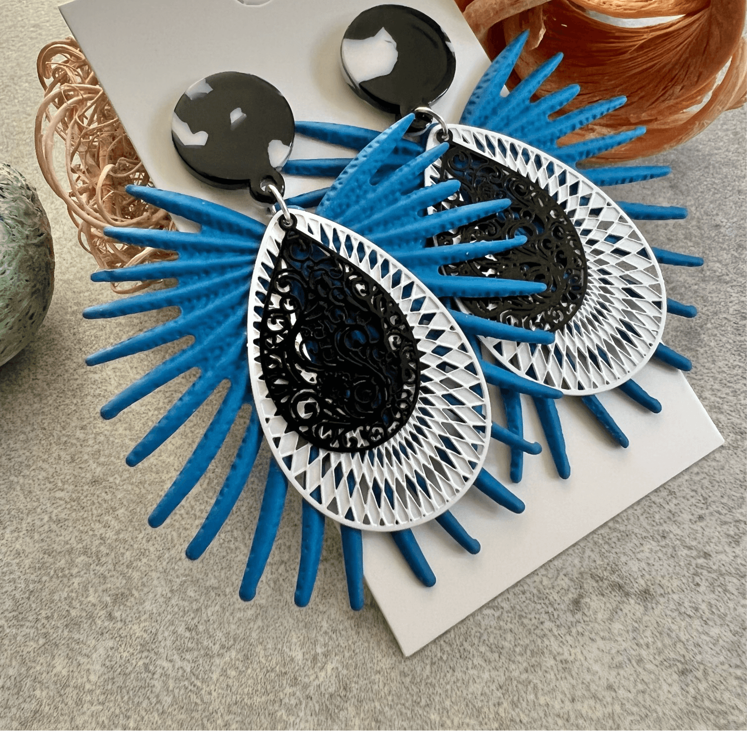 Boucles d’oreilles JASMINE feuillage noir - Créations Uniques