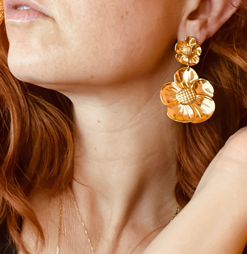 Boucles d’oreilles JOCELYNE fleurs dorées ajourées