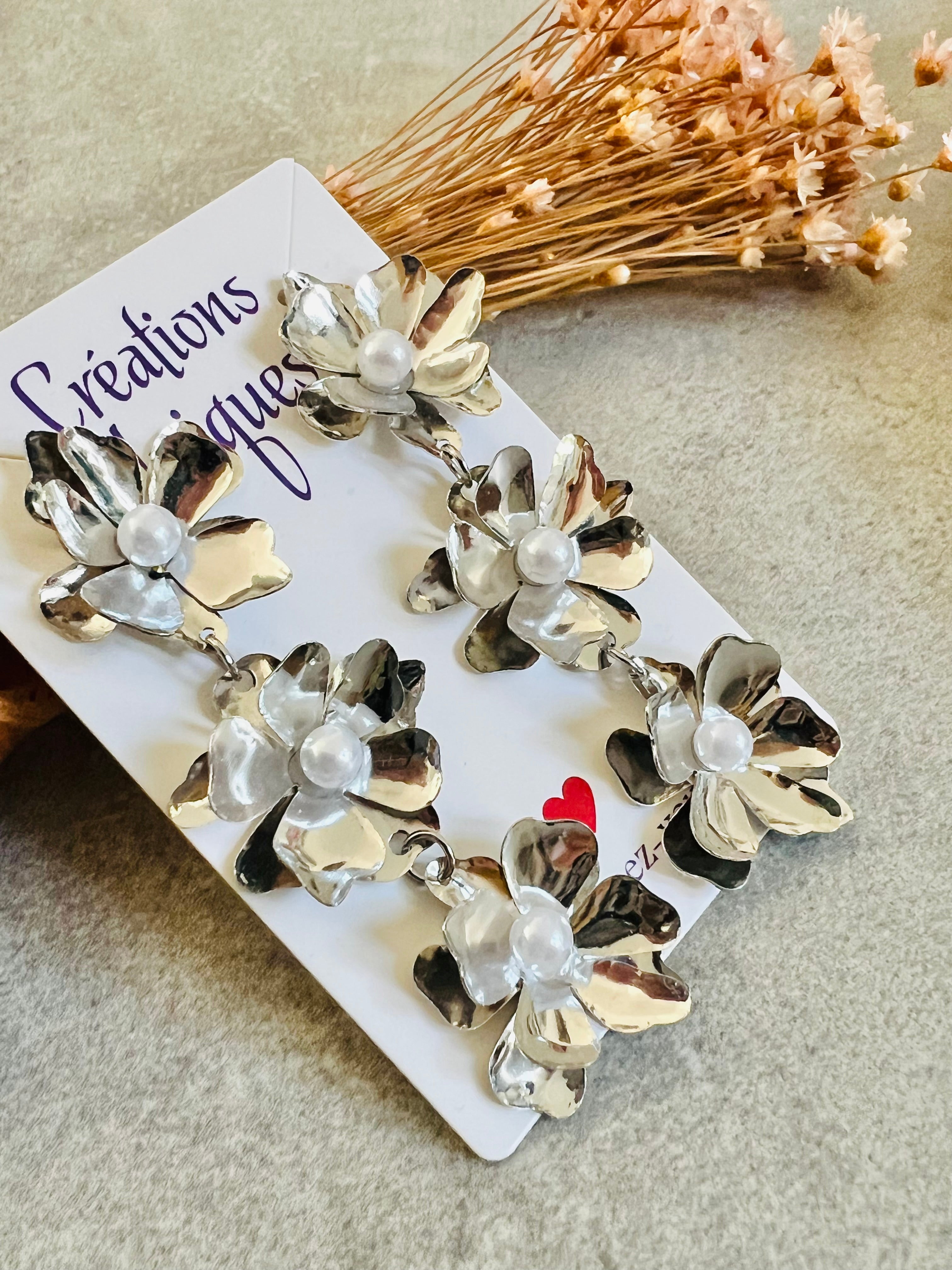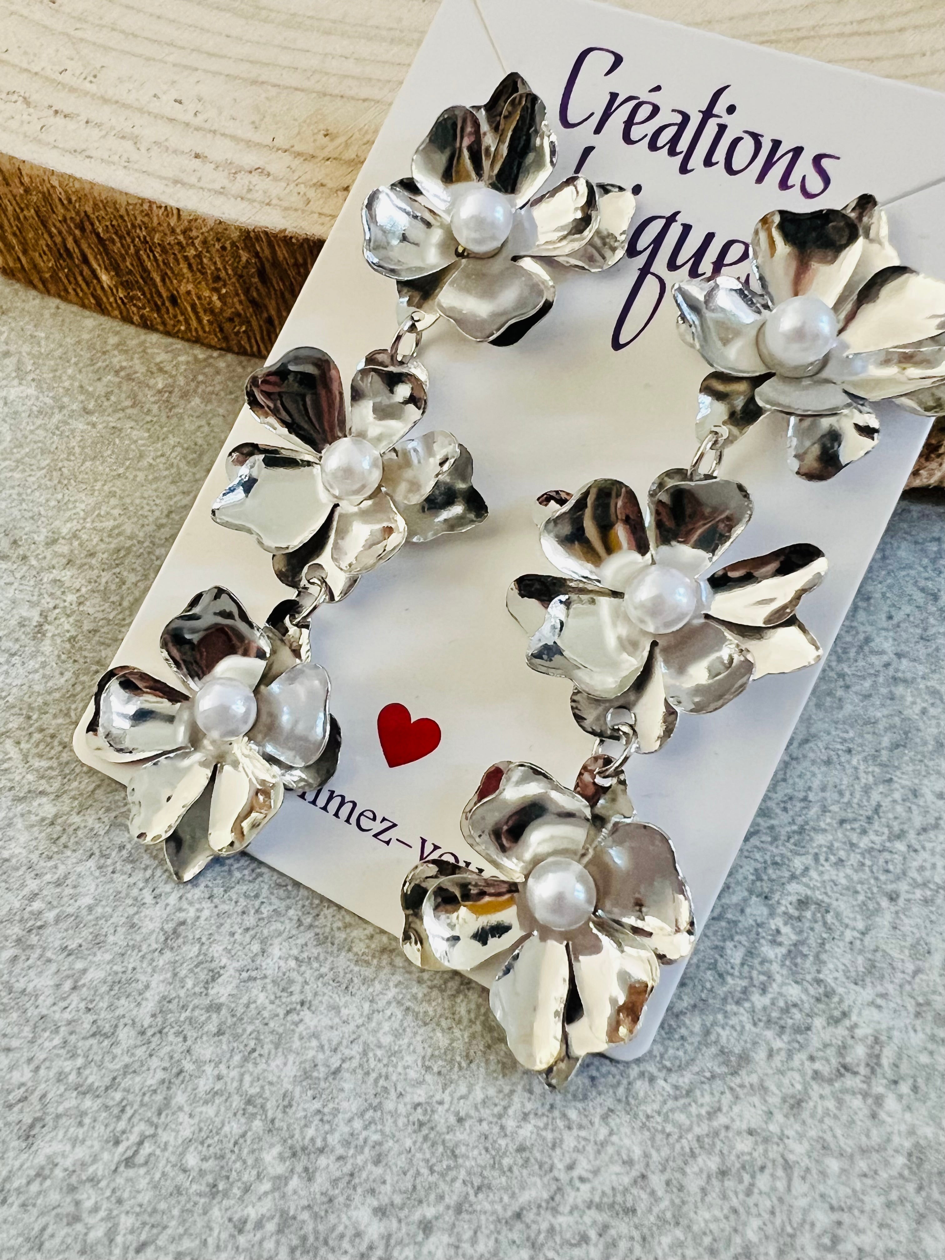 Boucles d’oreilles LINNA fleurs argentées - Créations Uniques