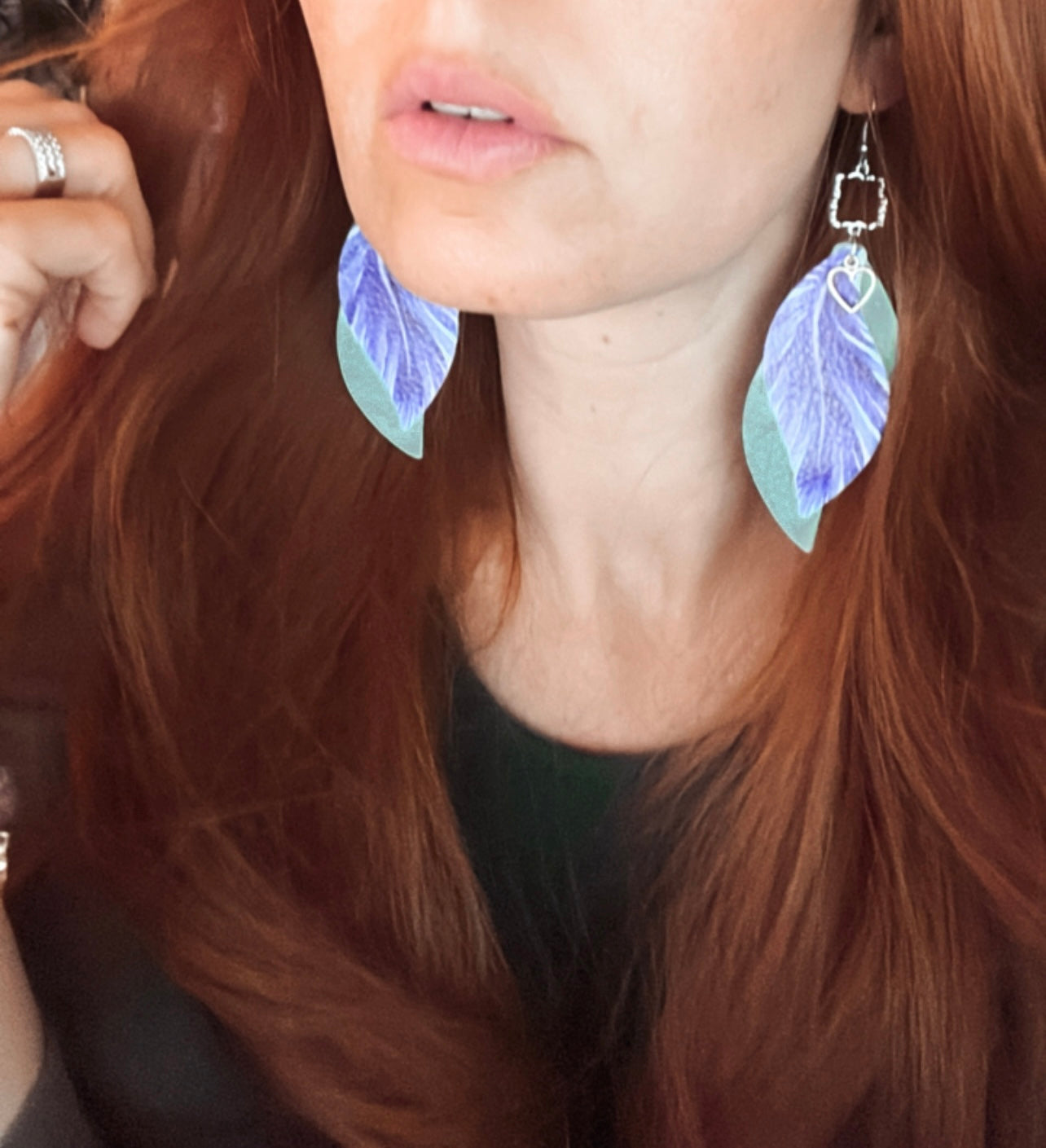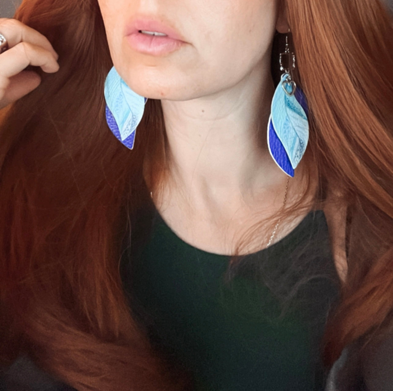 Boucles d’oreilles CHRISTABEL feuilles articulées résine bleues