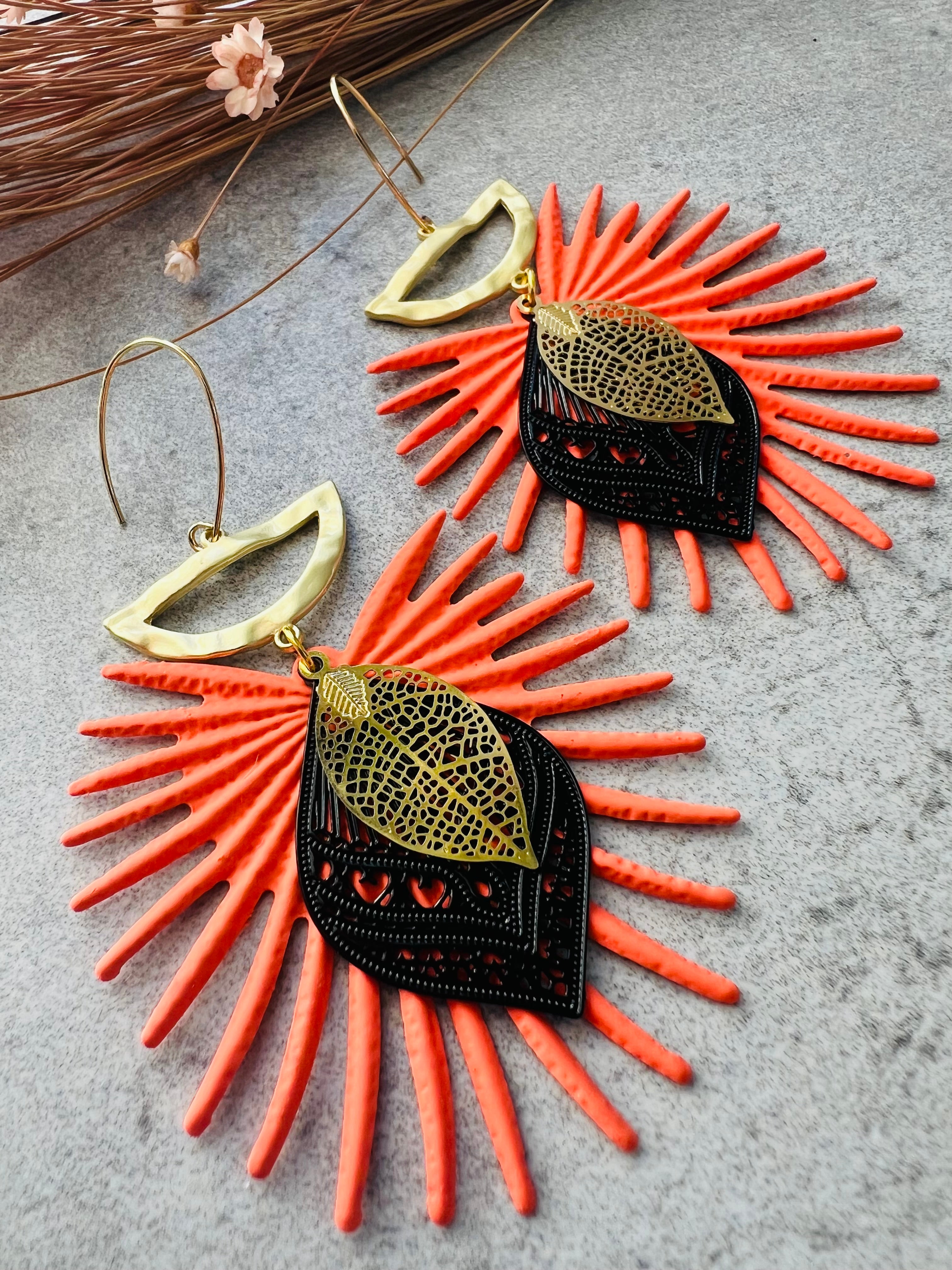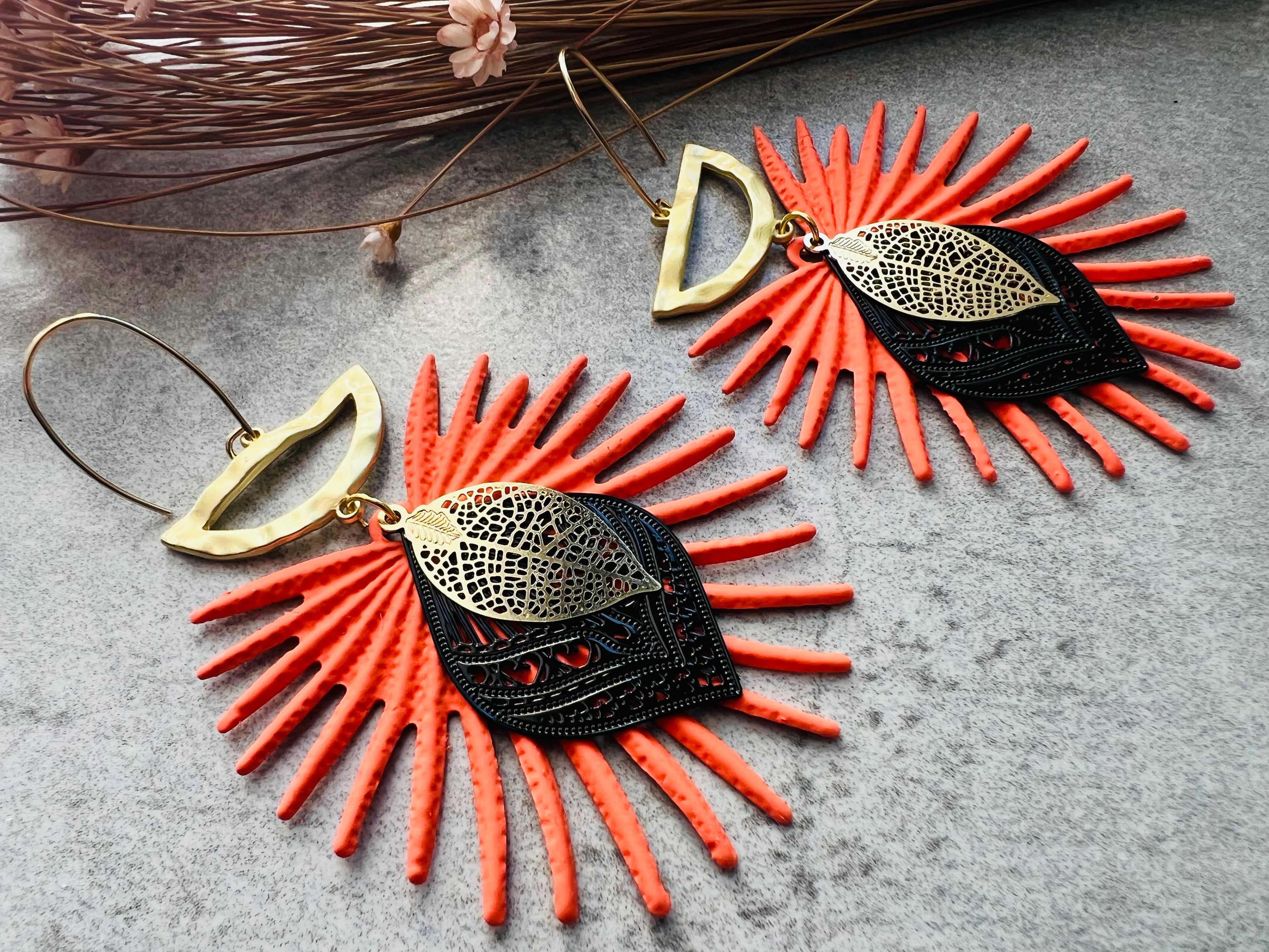 Boucles d’oreilles ANDREIA orange et noir - Créations Uniques