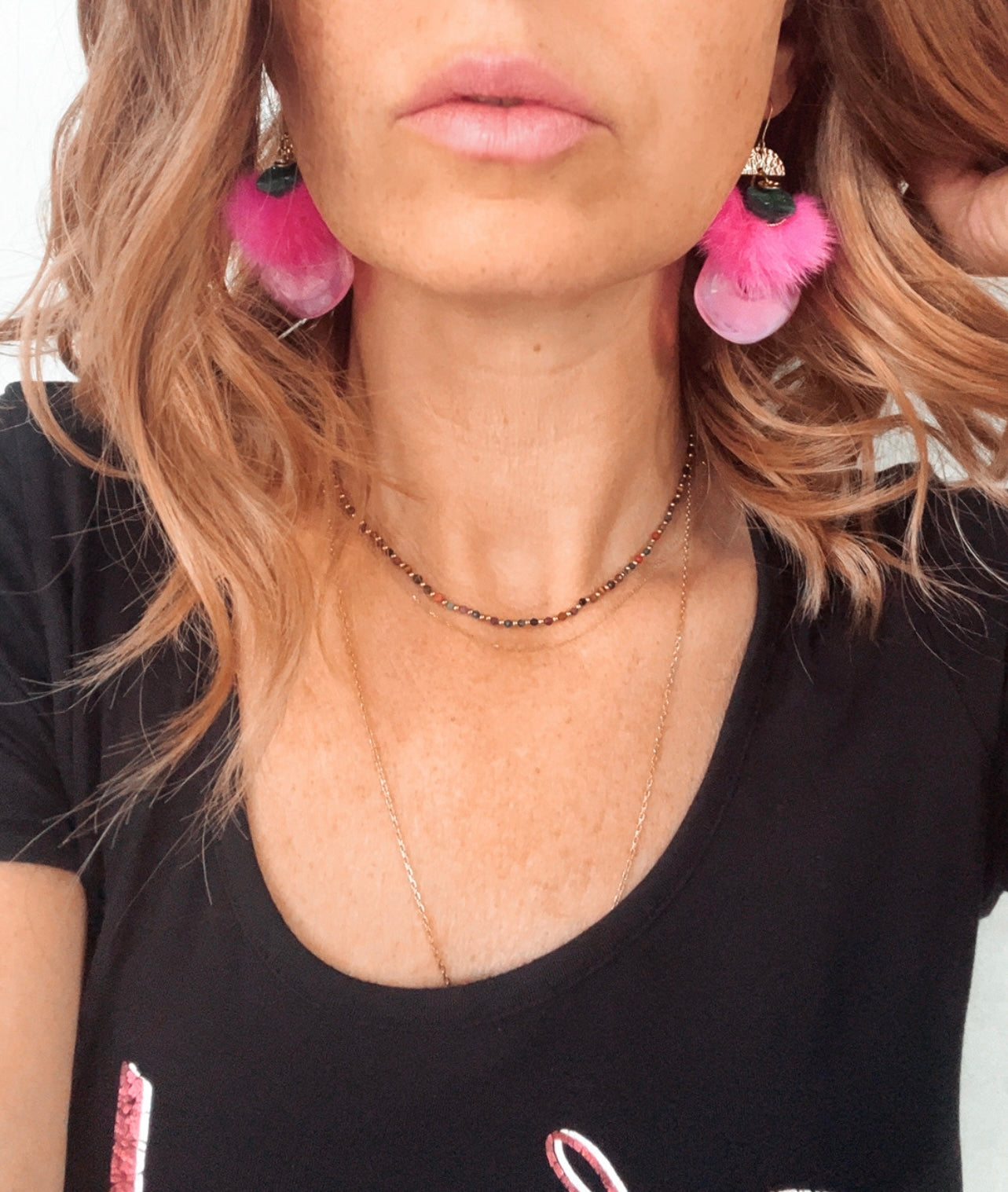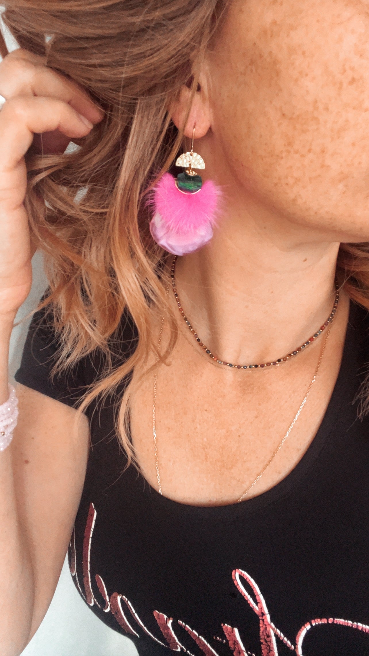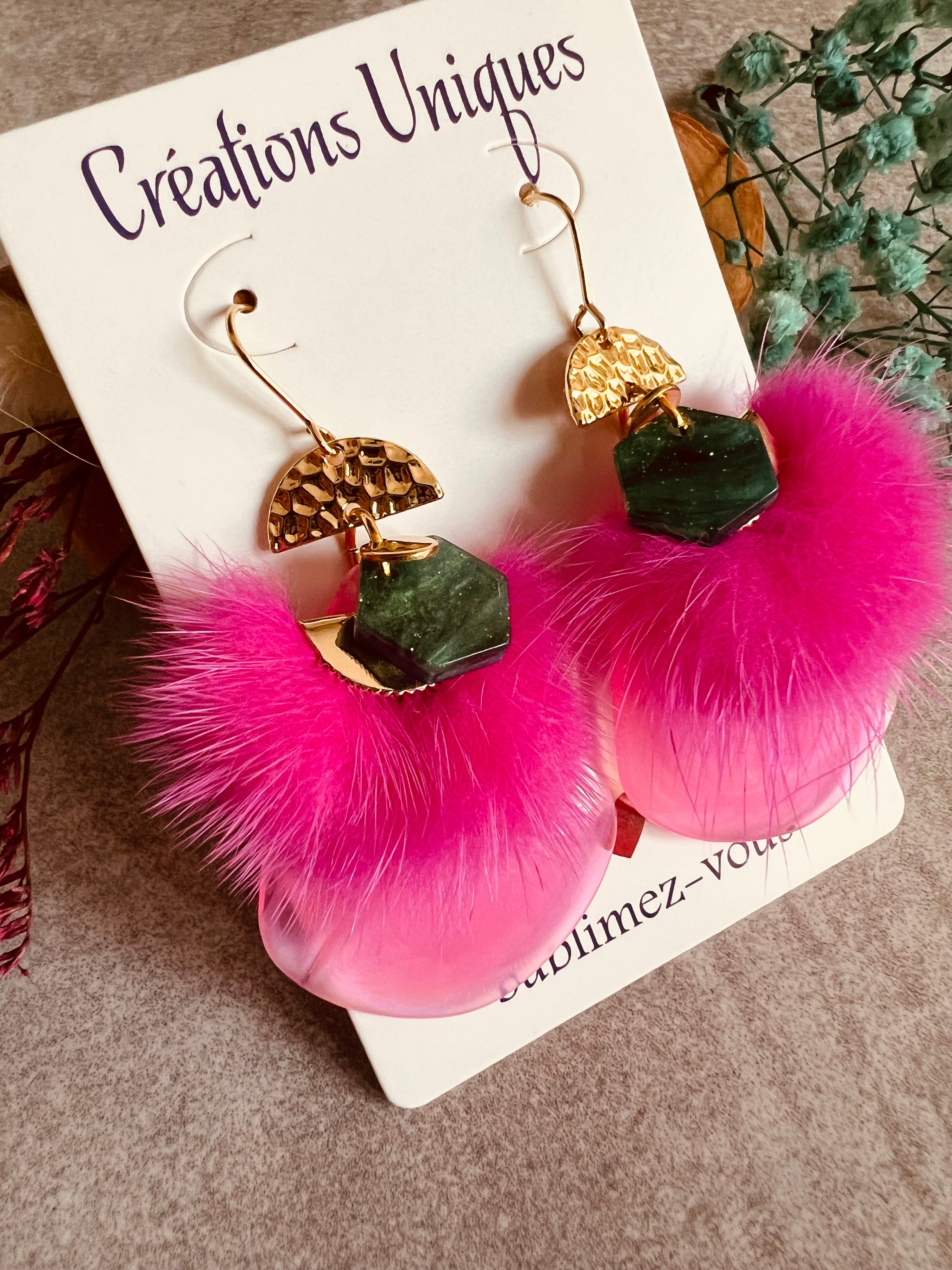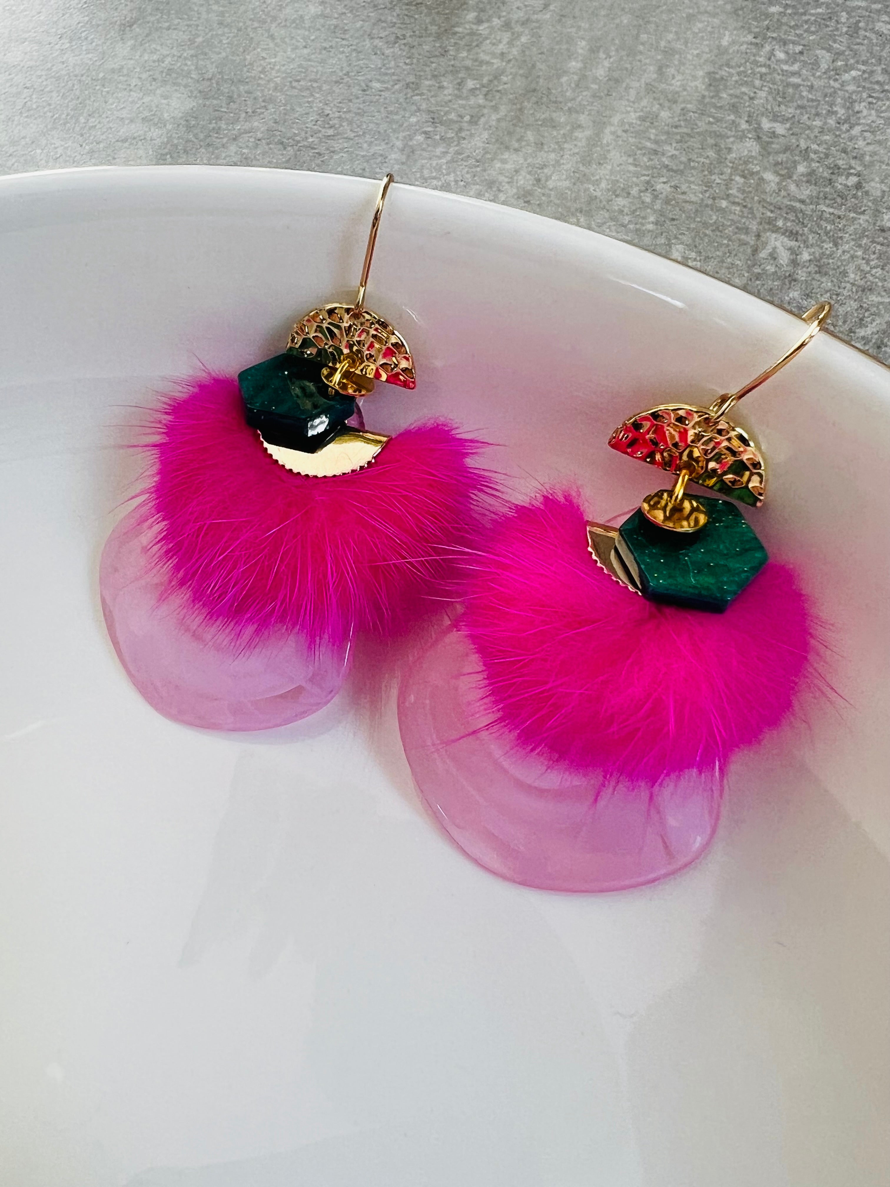 Boucles d’oreilles ROSALIND édition limitée rose/ noir - Créations Uniques