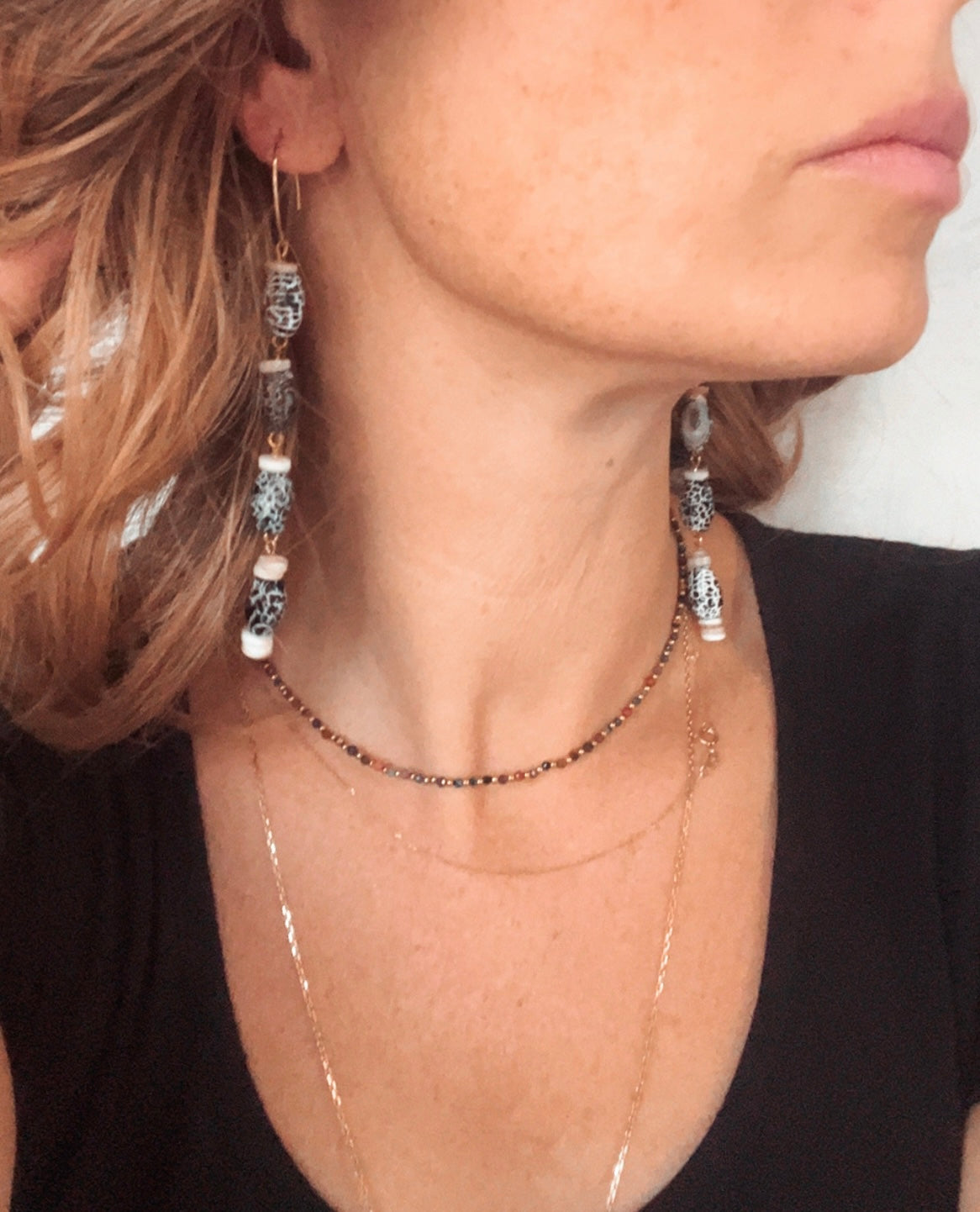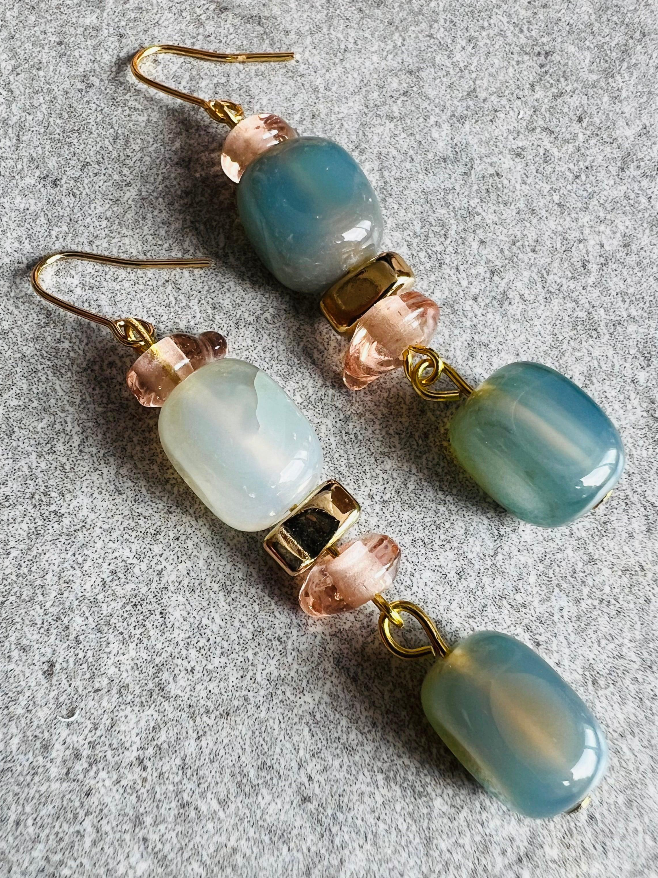 Boucles d’oreilles ANITA perles bleu gris - Créations Uniques