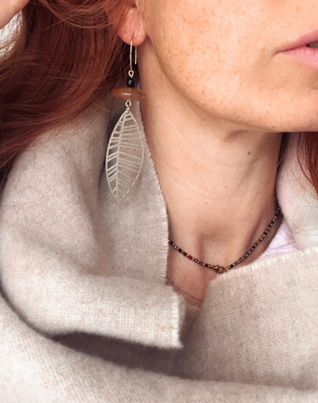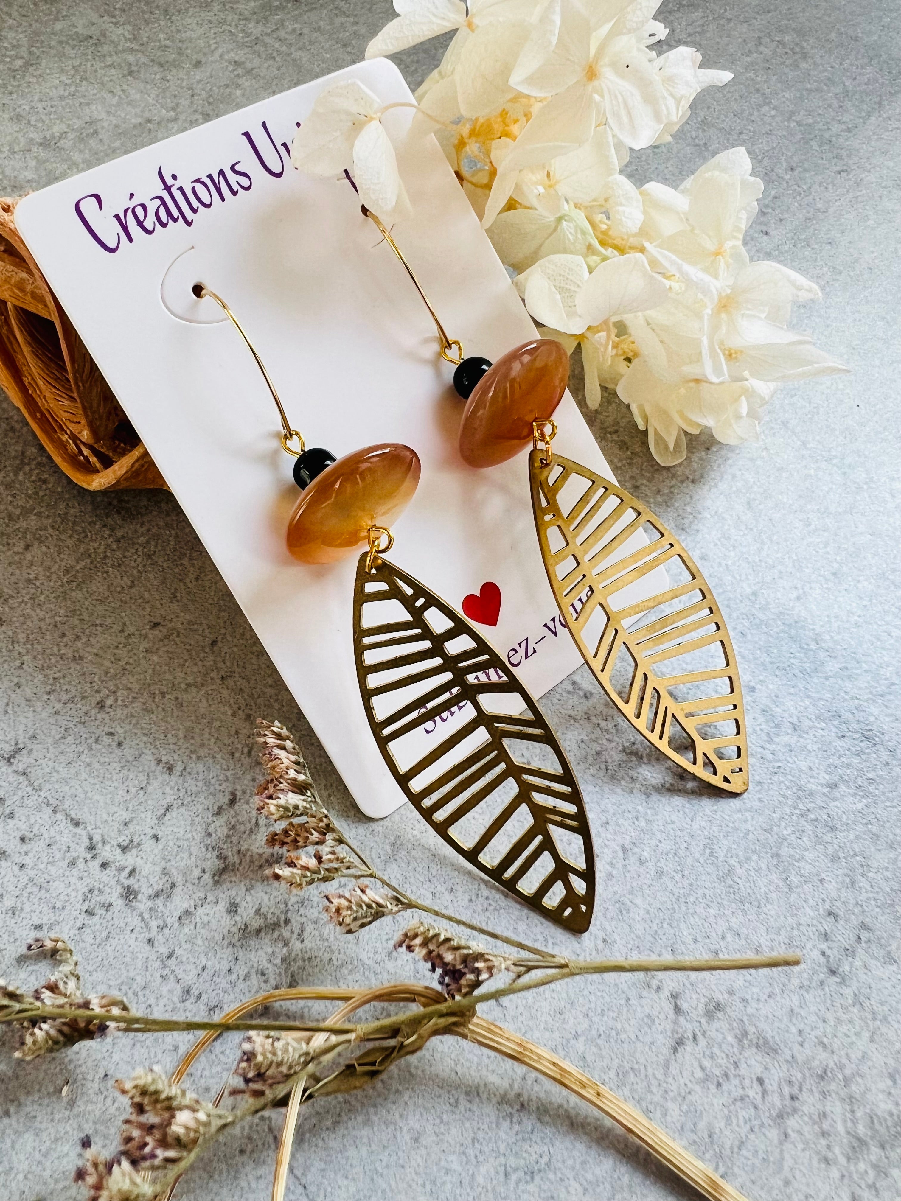 Boucles d’oreilles JORIS feuilles marrons - Créations Uniques