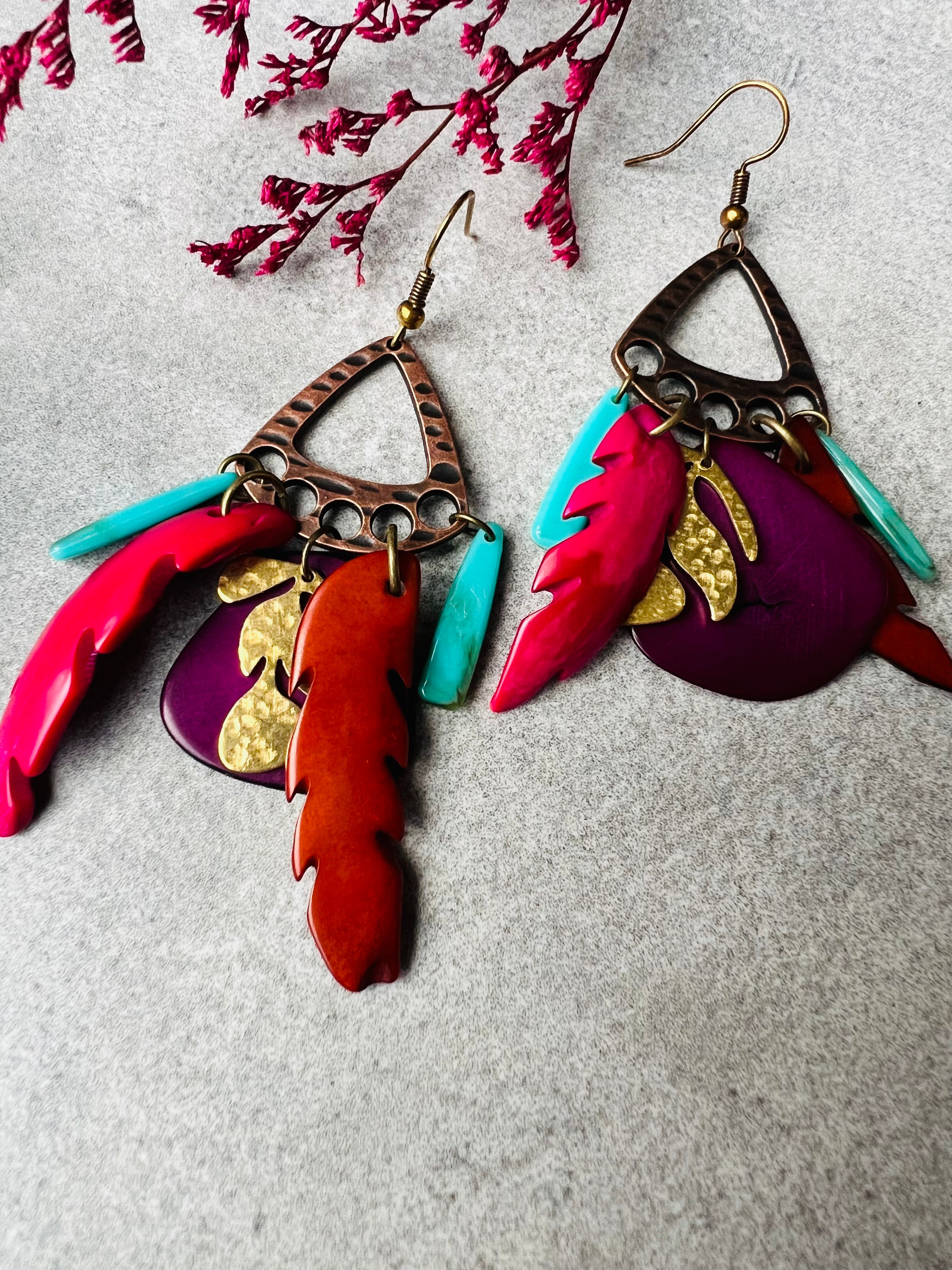 Boucles d’oreilles MARISSA asymétriques rouges - Créations Uniques