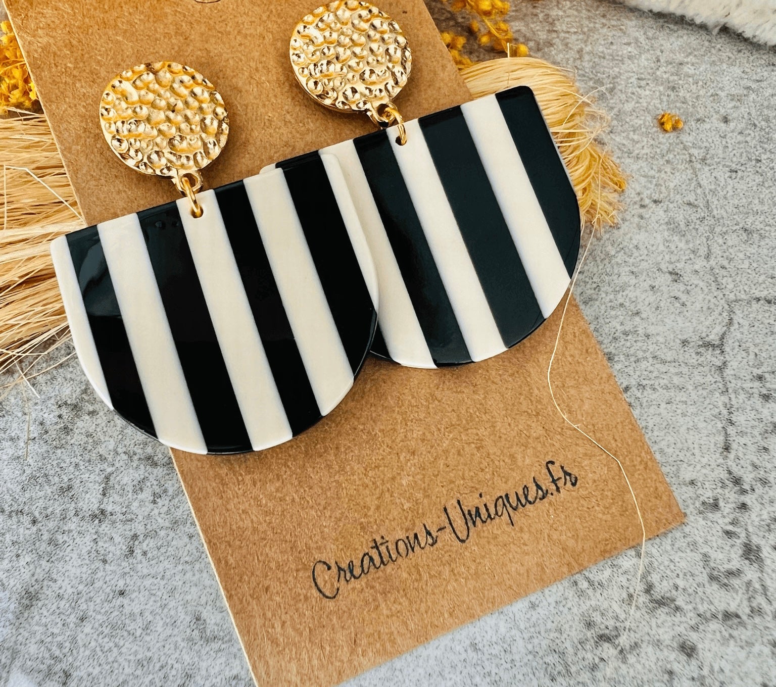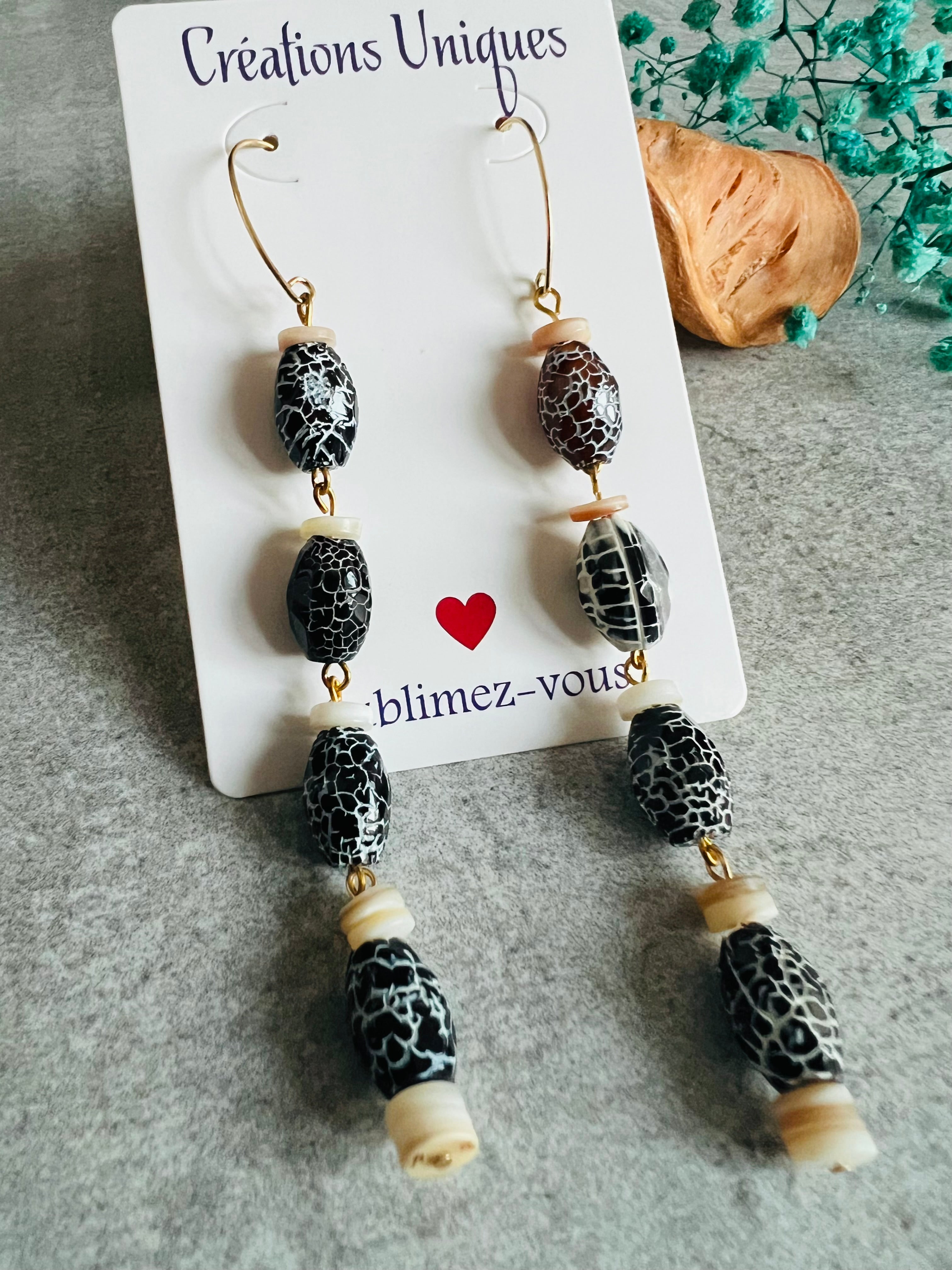 Boucles d’oreilles AMANDINE black and white - Créations Uniques