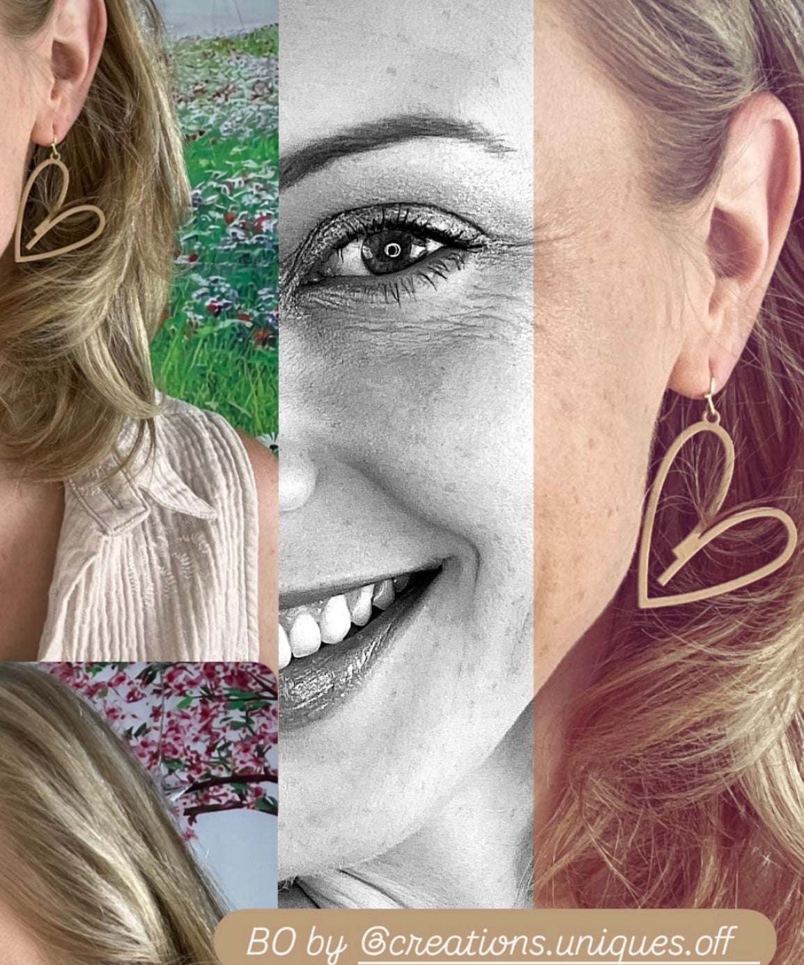 Boucles d’oreilles CHARLENE cœurs marron clair- Créations Uniques