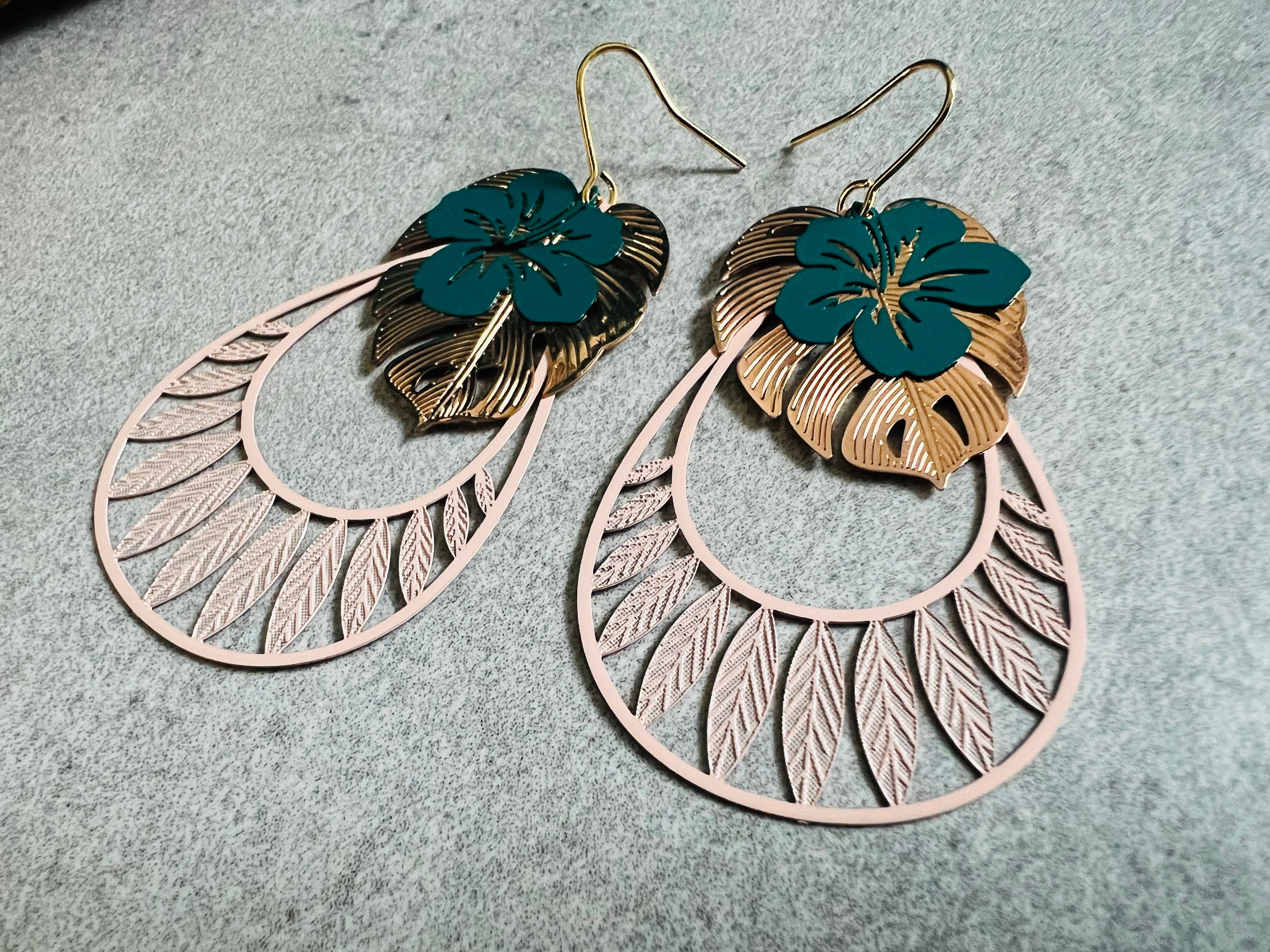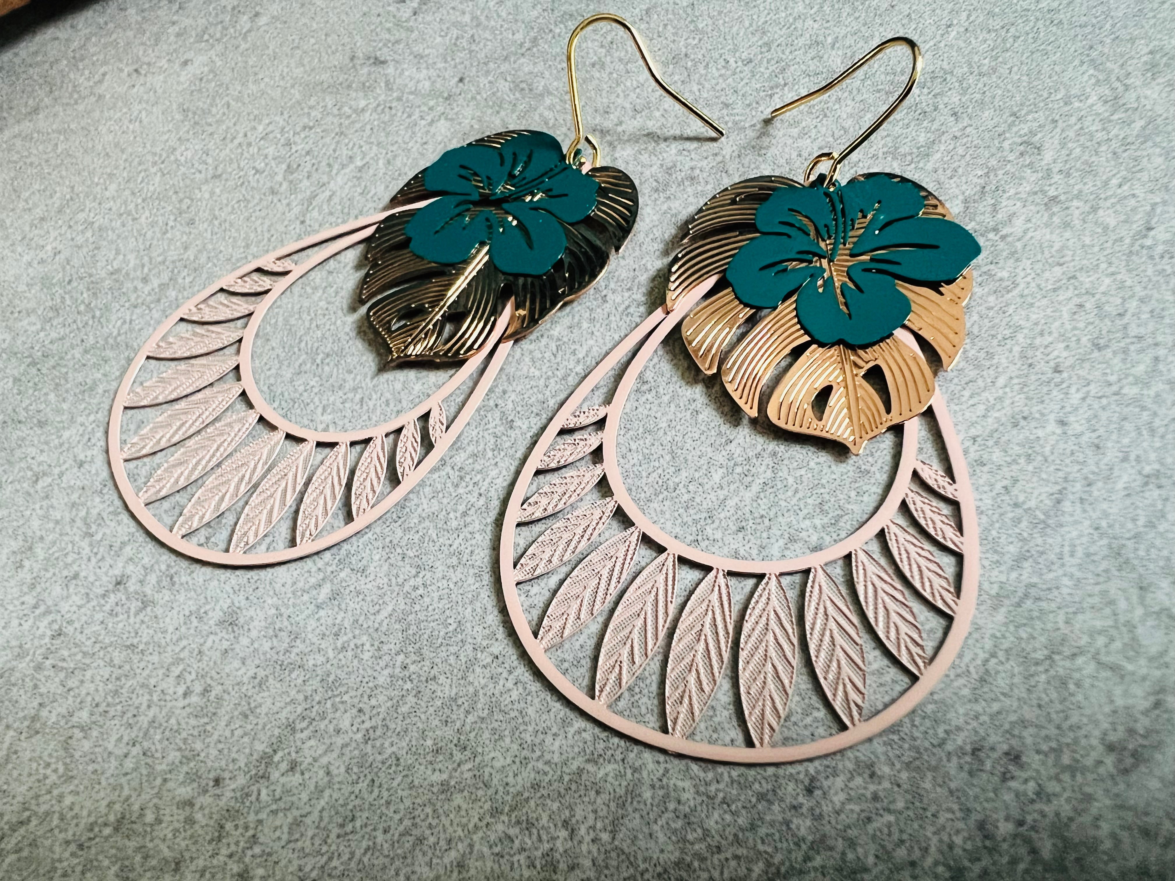 Boucles d’oreilles LUANA feuilles tropiques - Créations Uniques
