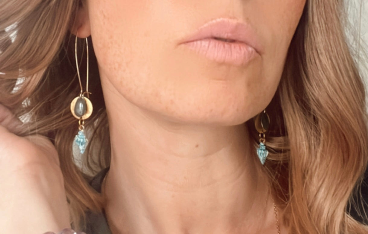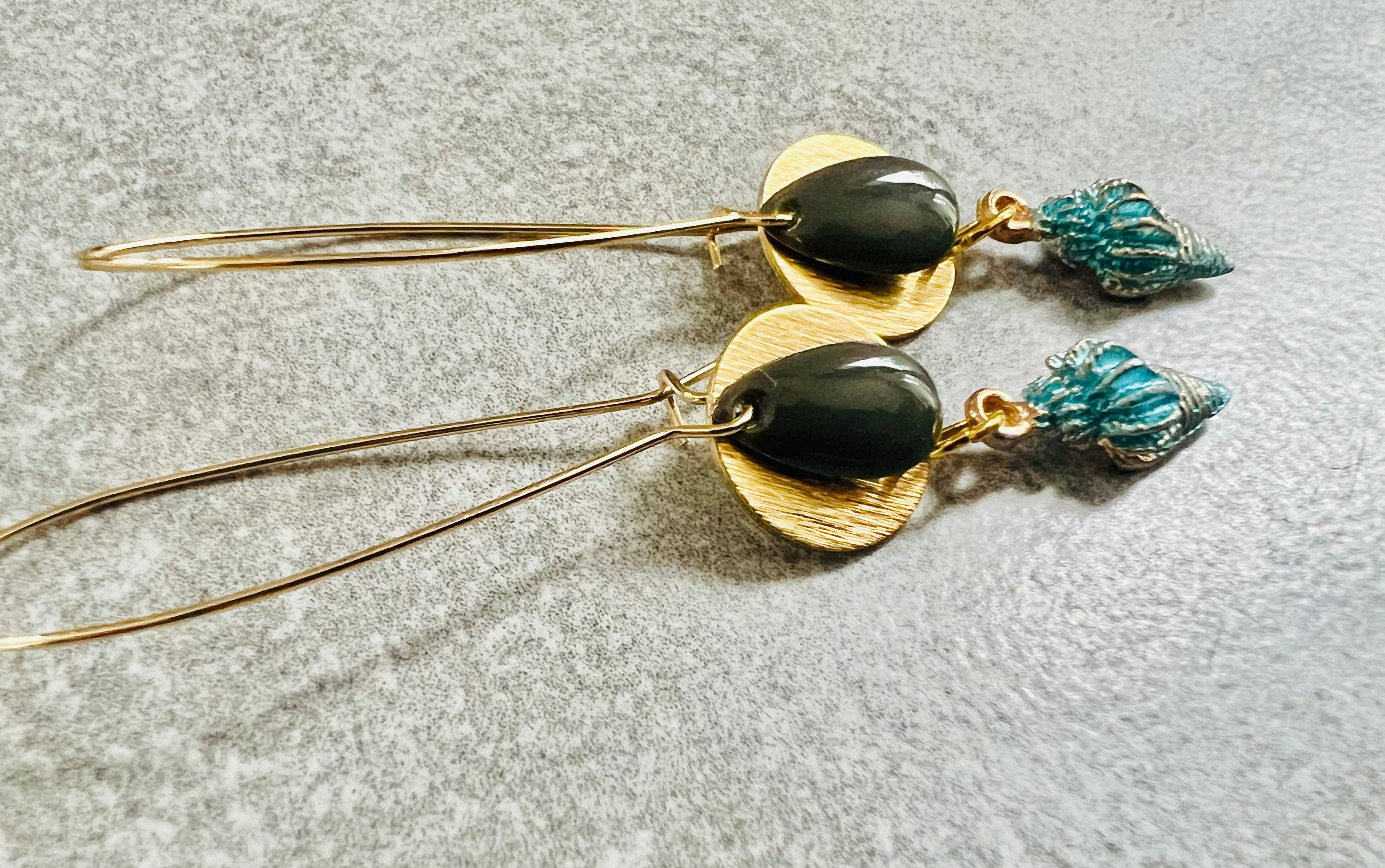 Boucles d’oreilles CARÈNE perles nuances de marron et touche de vert - Créations Uniques