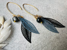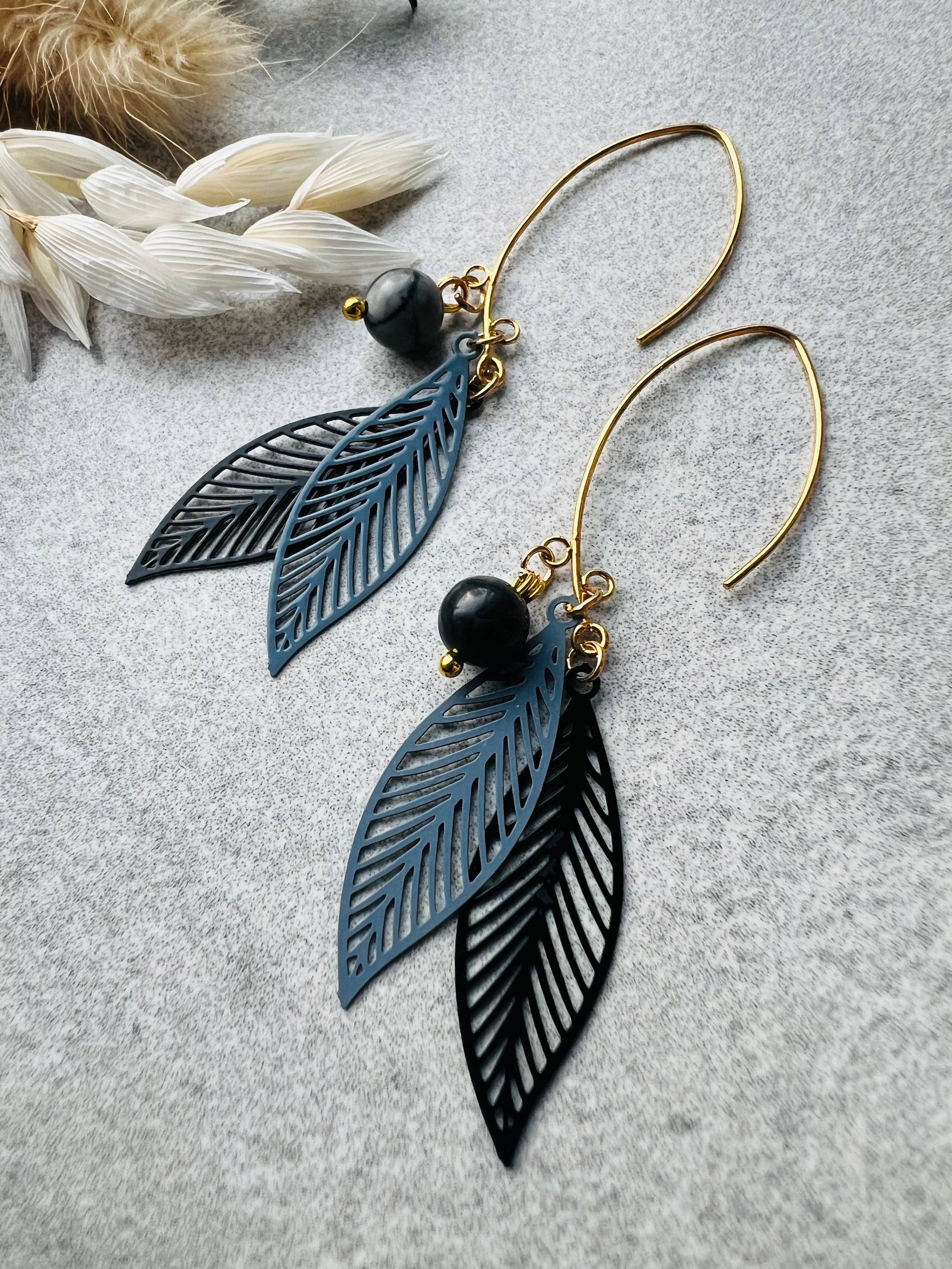 - bijoux fait main. - feuilles gris noir et perles.