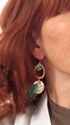 - plumes vertes , laiton doré et love. - Assemblage à la main, style bohème et léger.