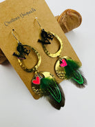 Boucles d’oreilles CLOTHILDE laiton doré, plumes et love - Créations Uniques