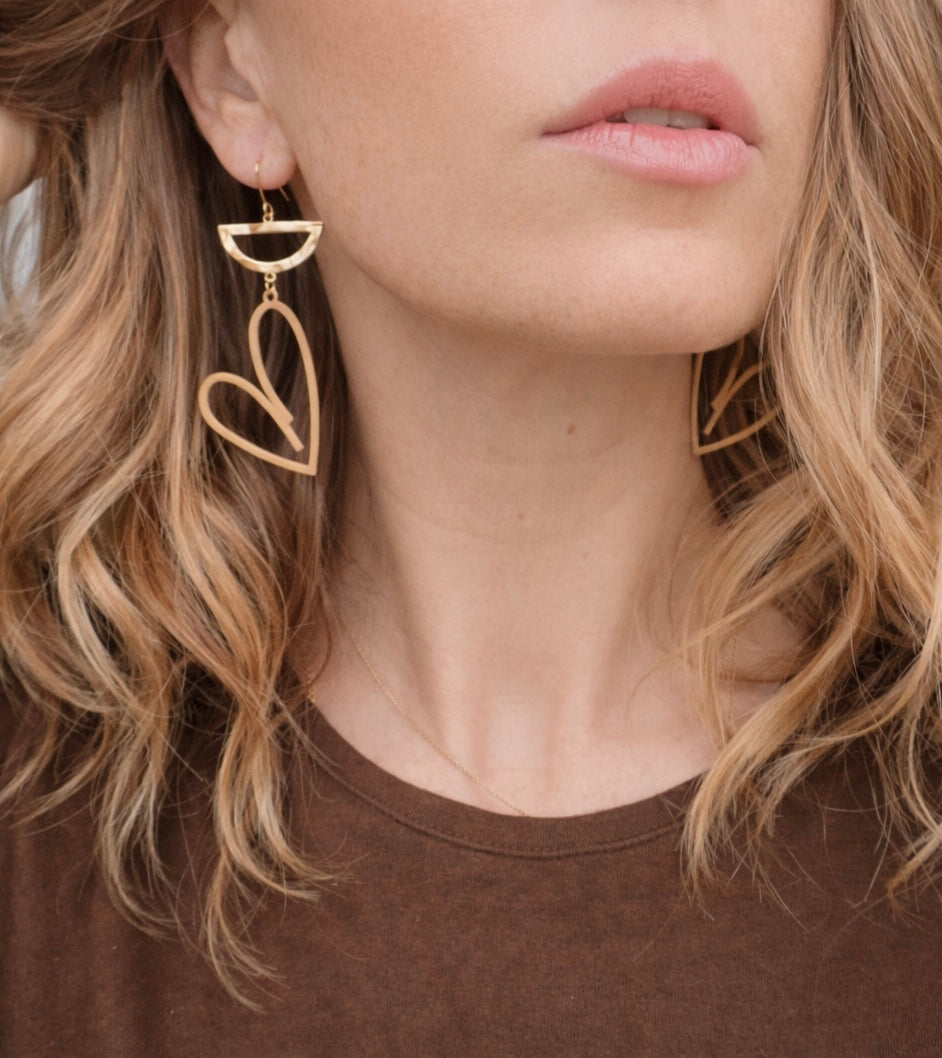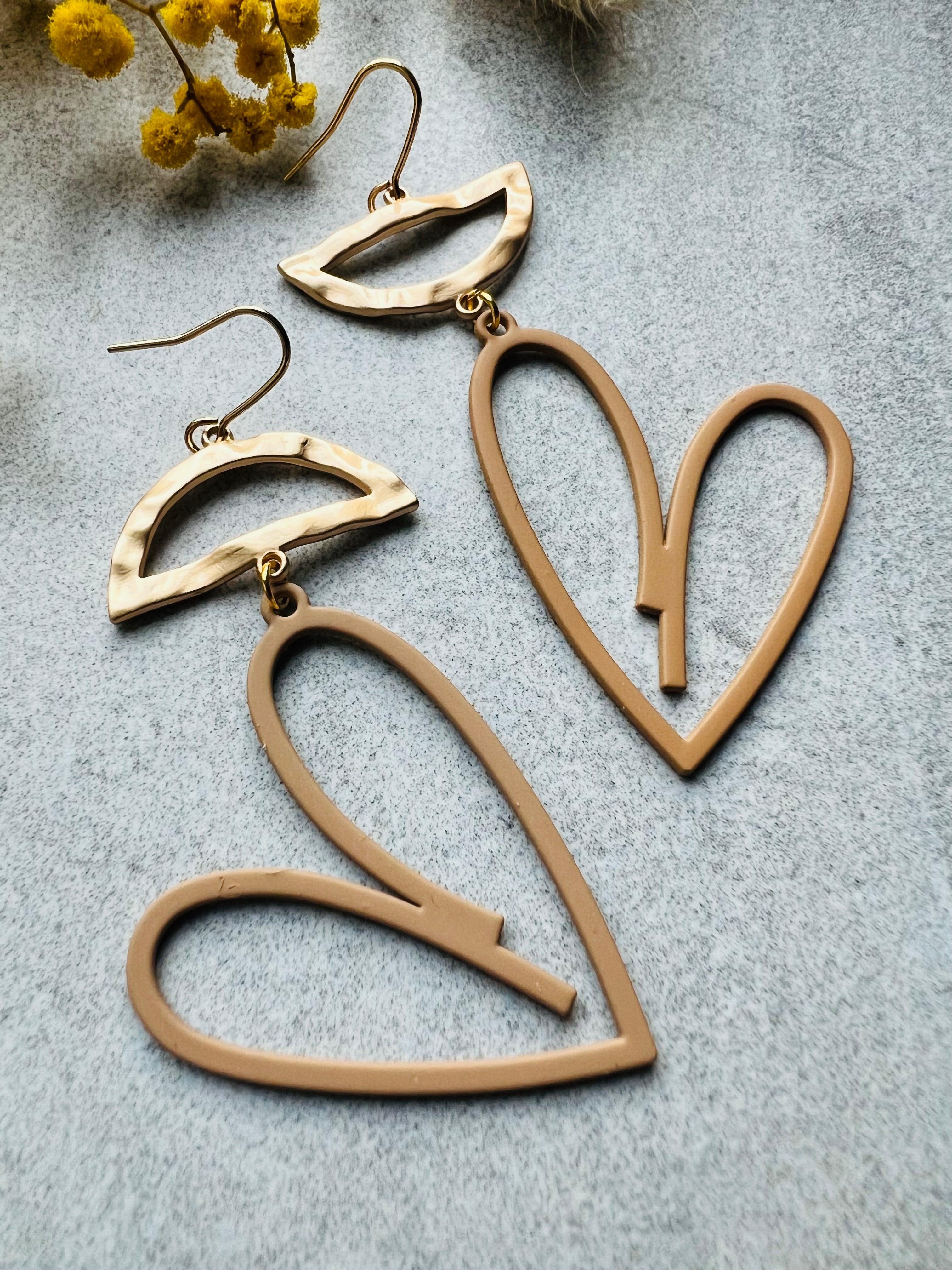 Boucles d’oreilles cœurs marron clair style asymétrique femme CHARLENE - Créations Uniques