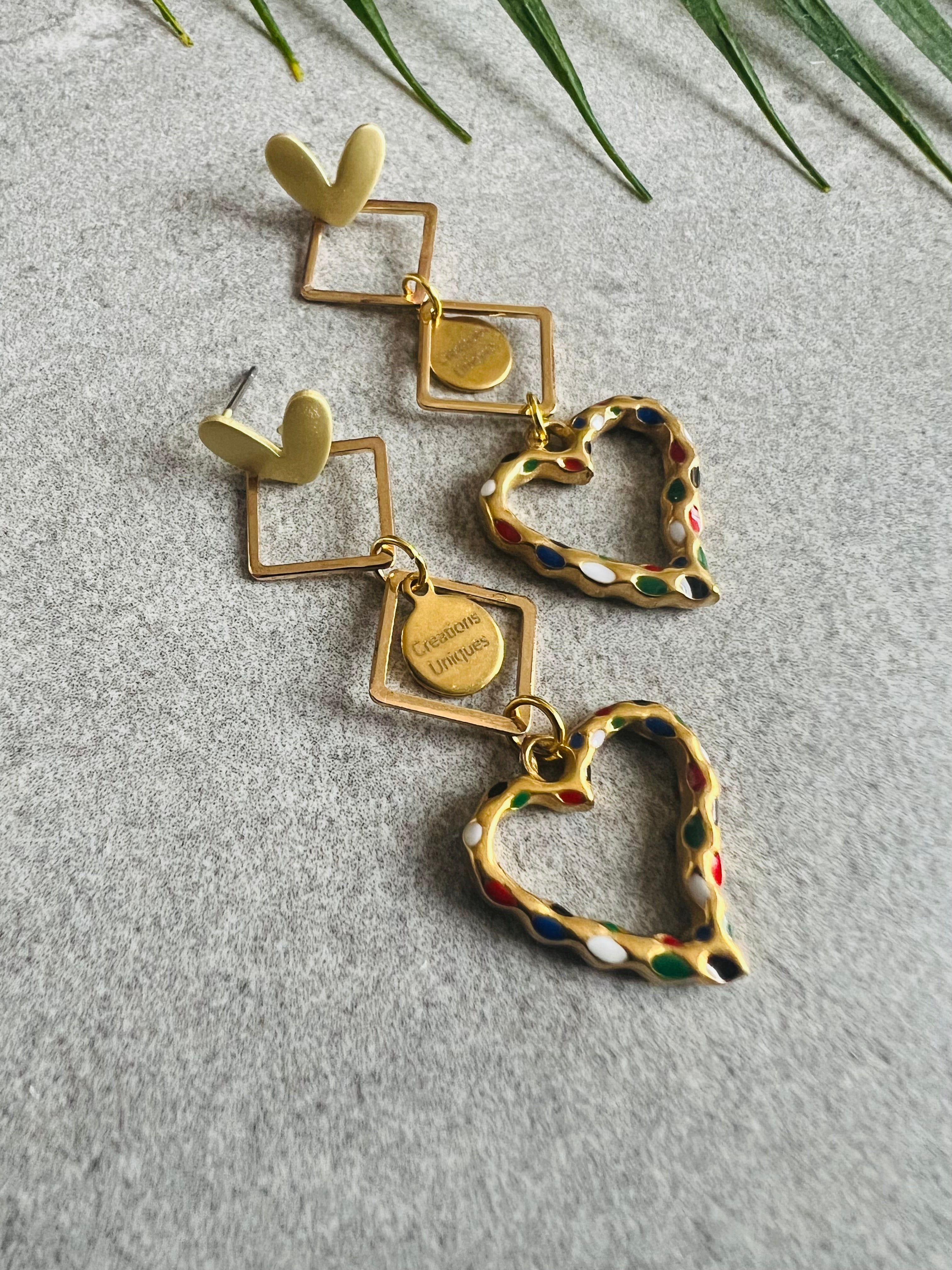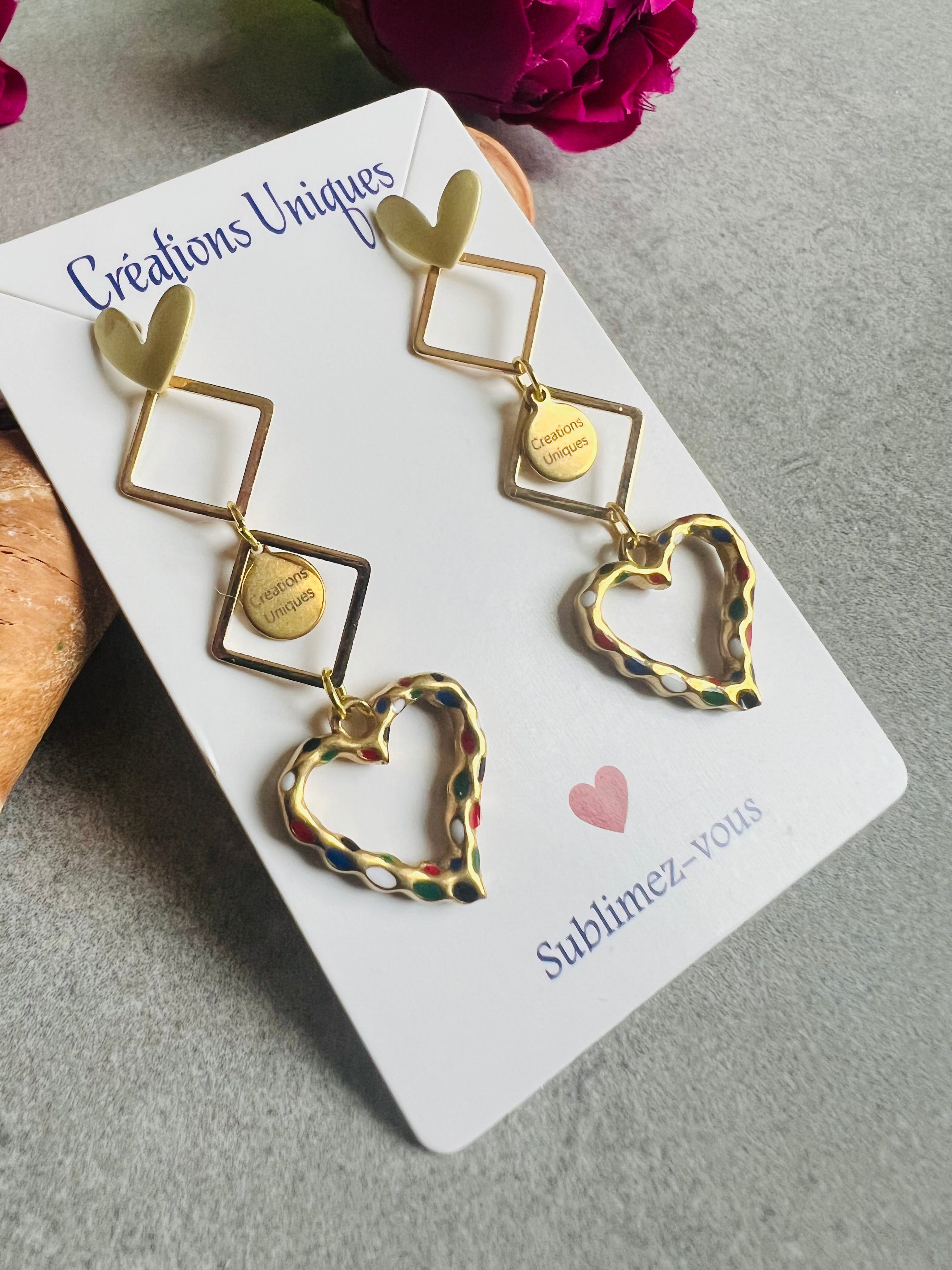 Boucles d’oreilles MAELYNE cœurs dorés - Créations Uniques