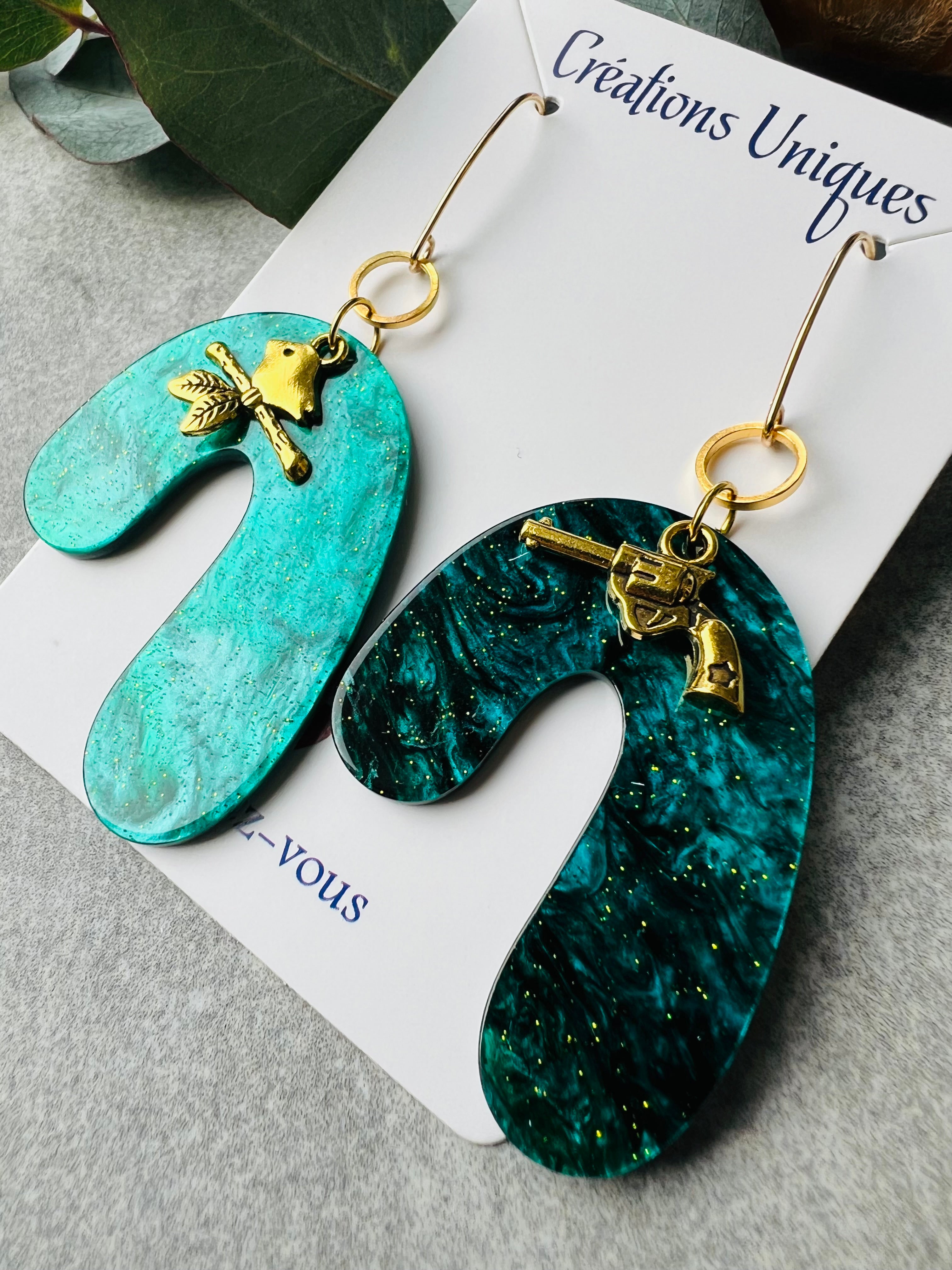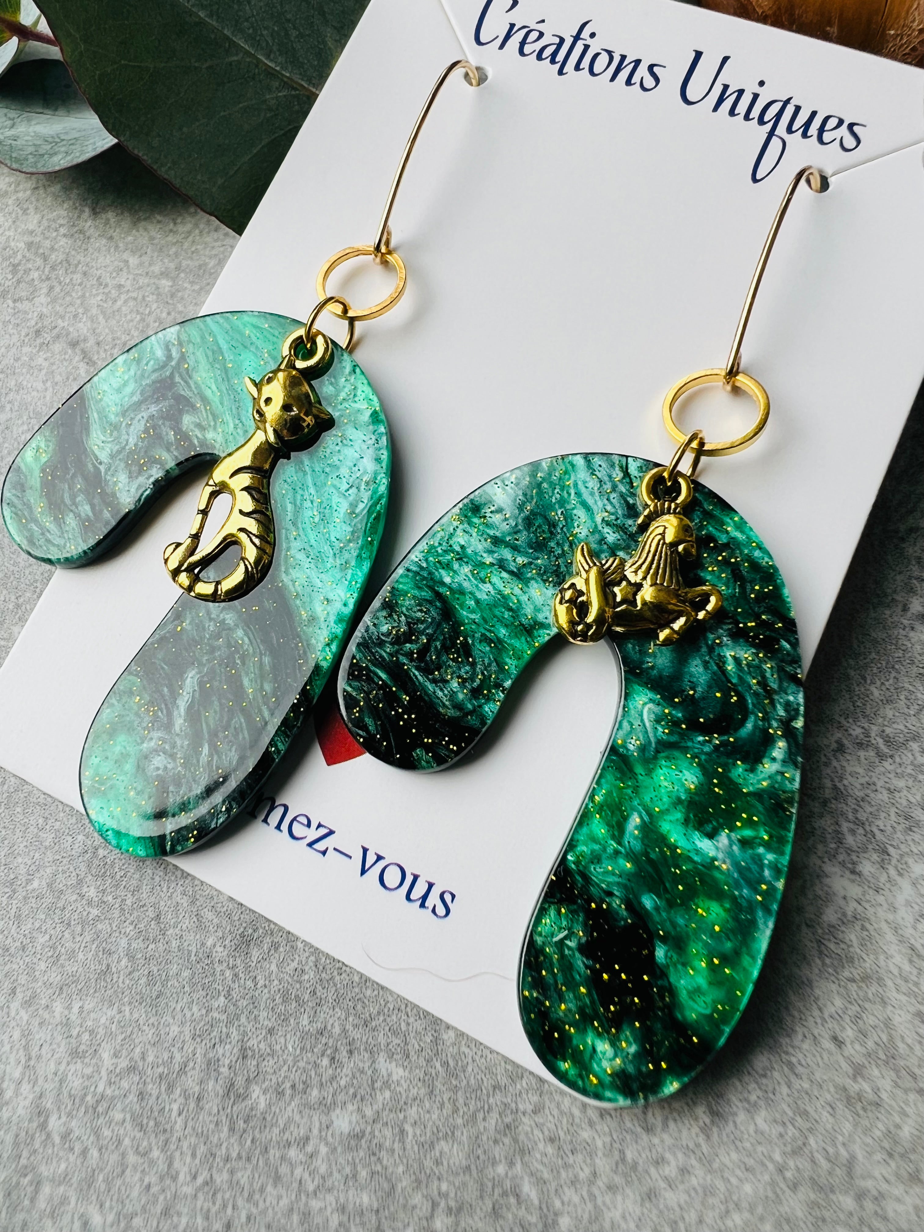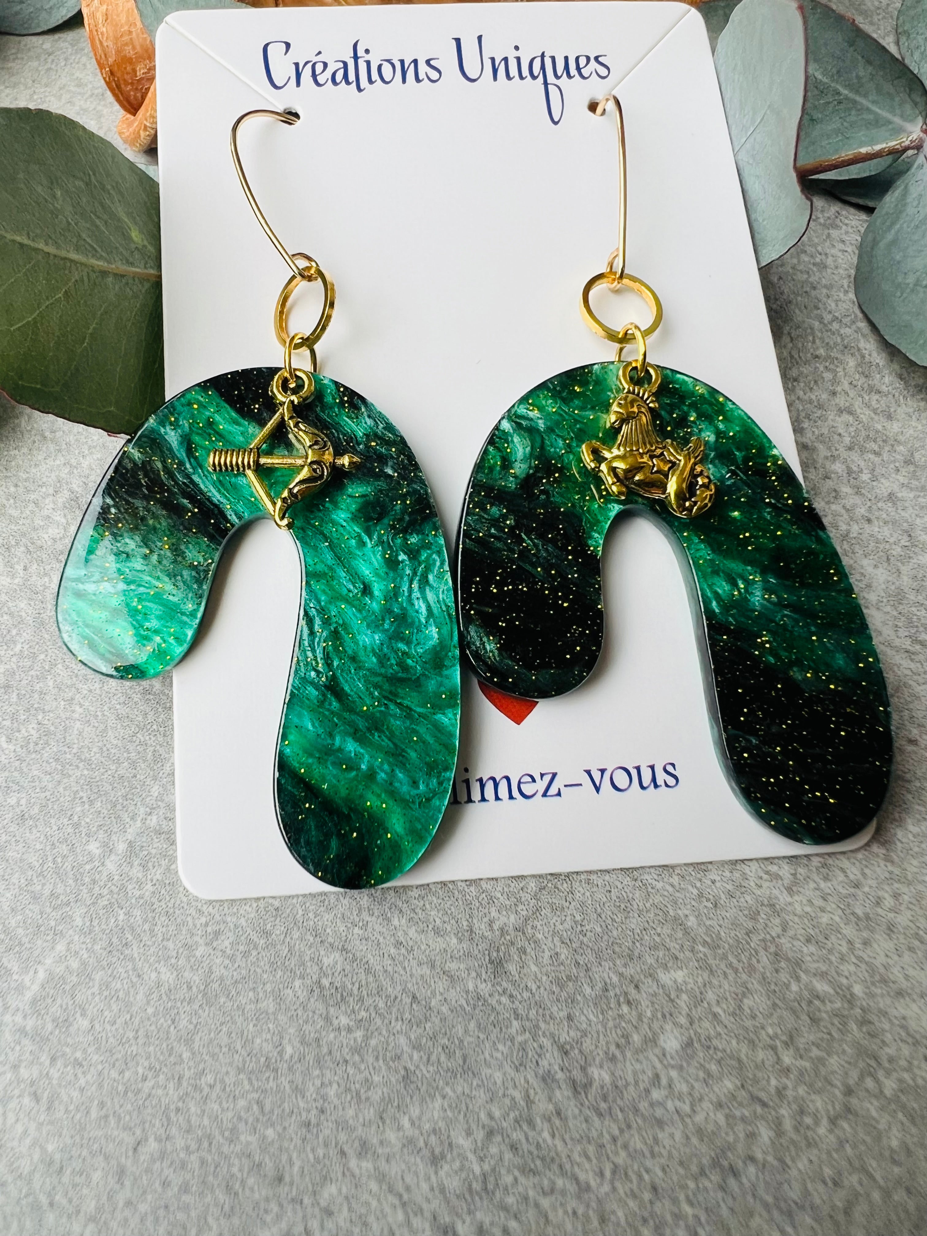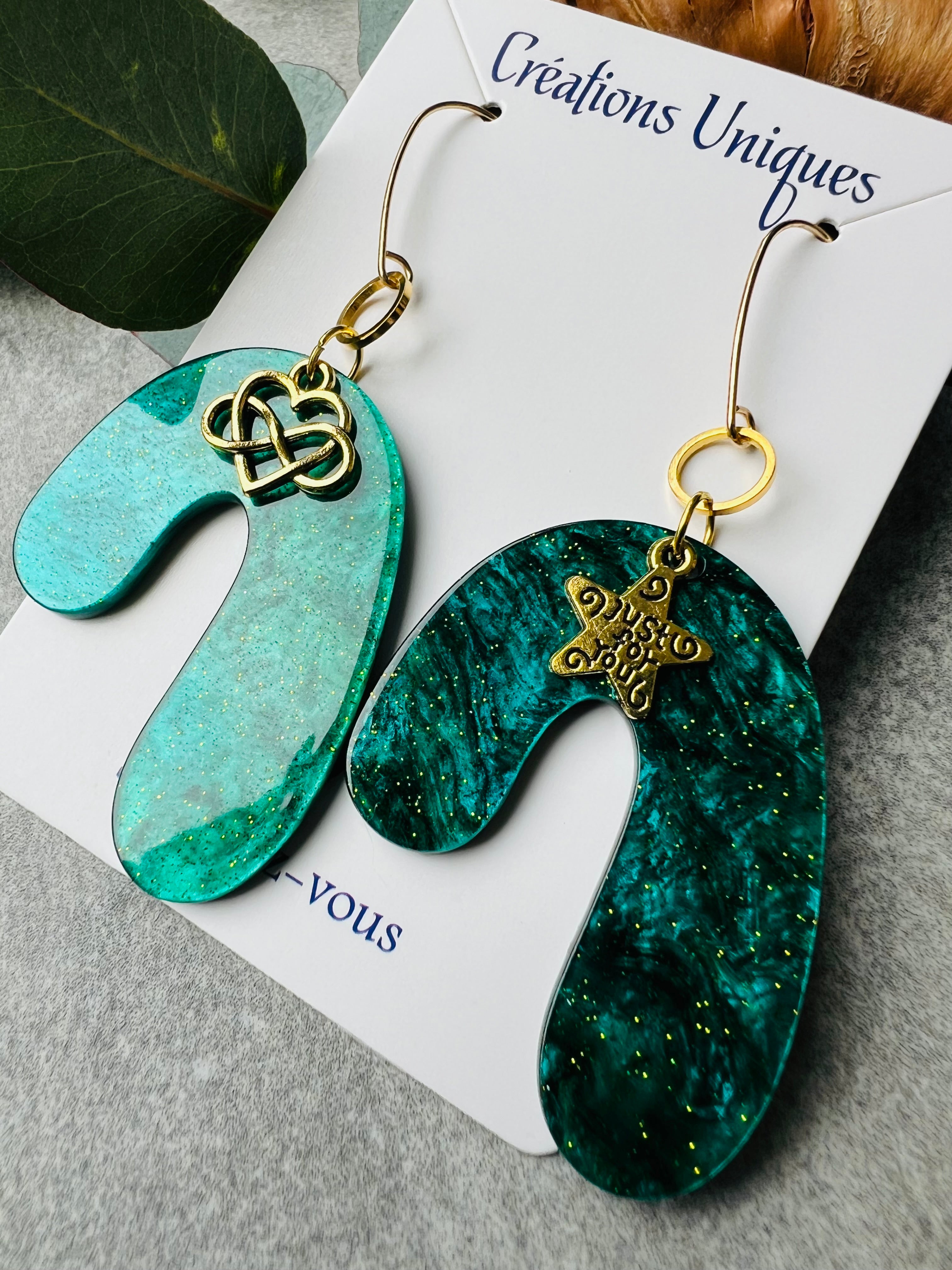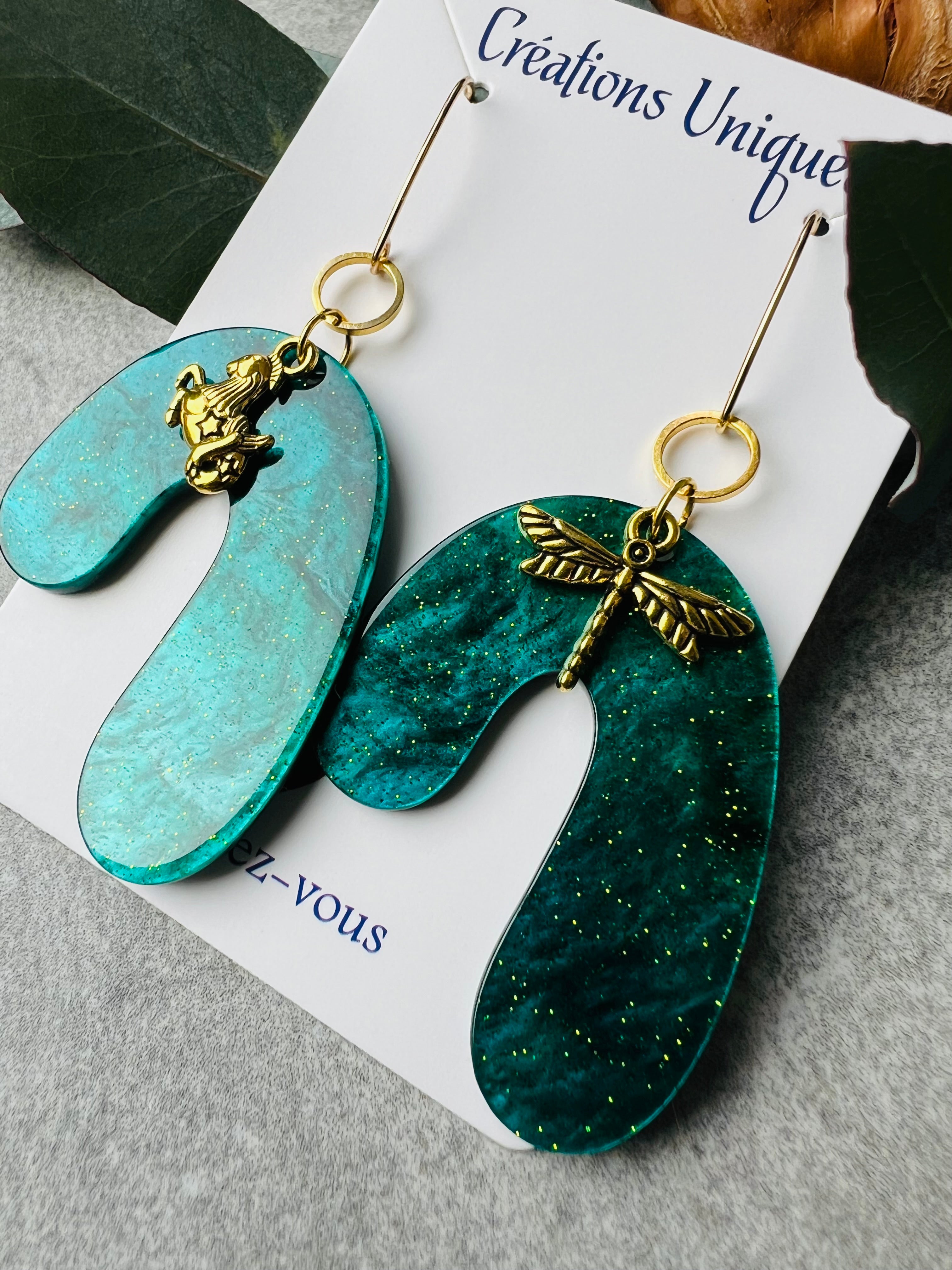 Boucles d’oreilles ÉMERAUDE résine pailletée - Créations Uniques