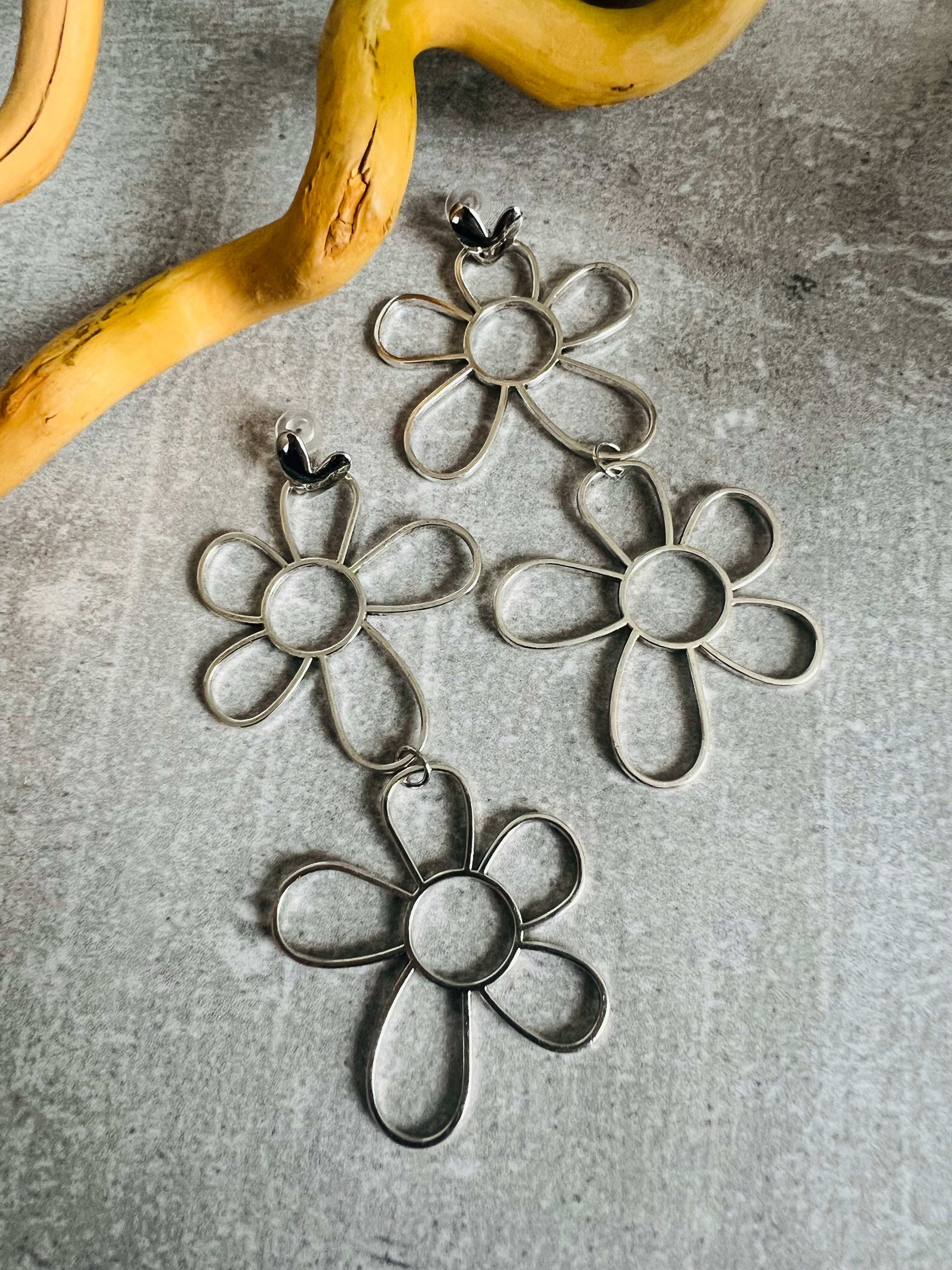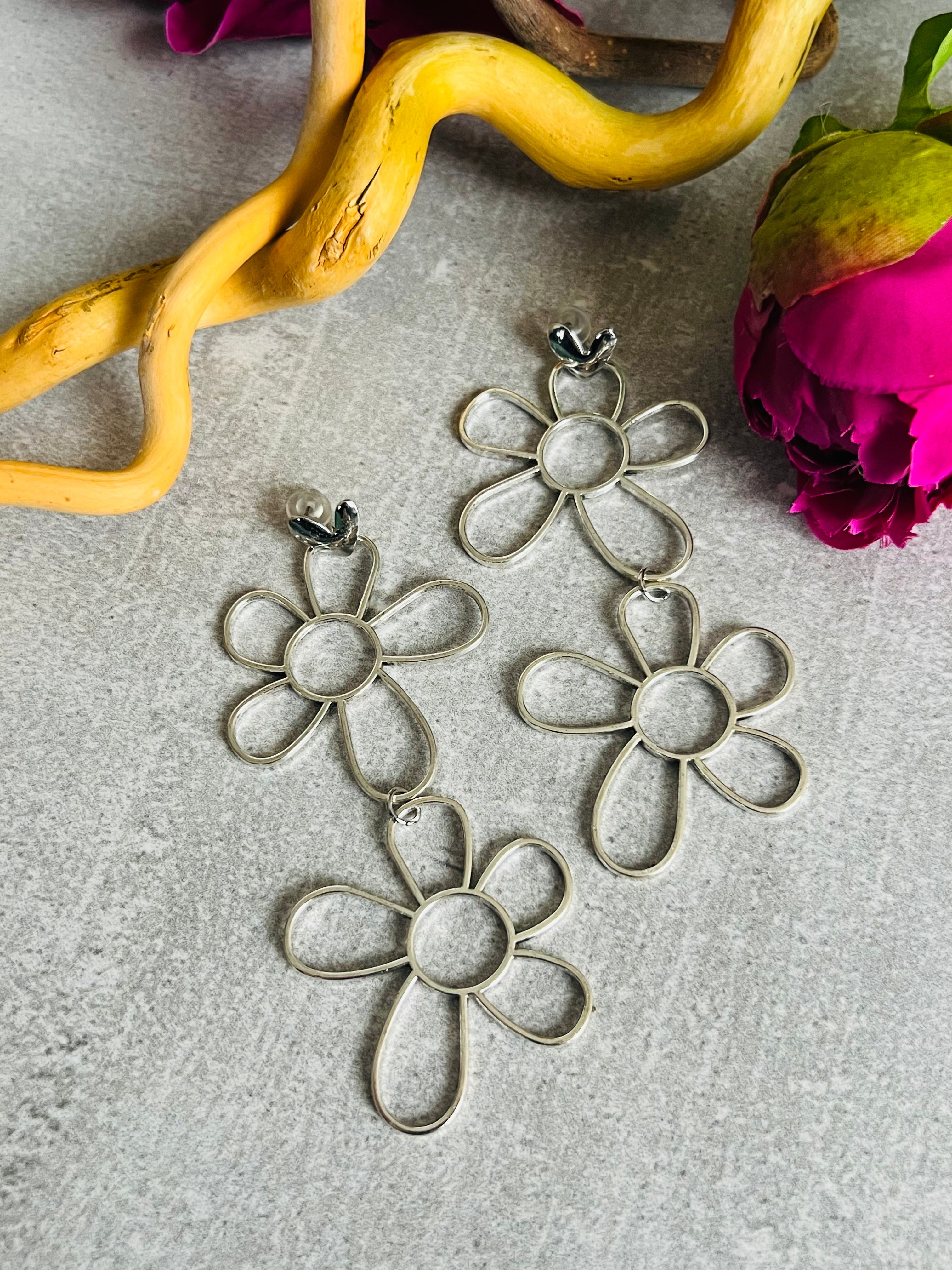 Boucles d’oreilles ENOLA fleurs argentées - Créations Uniques